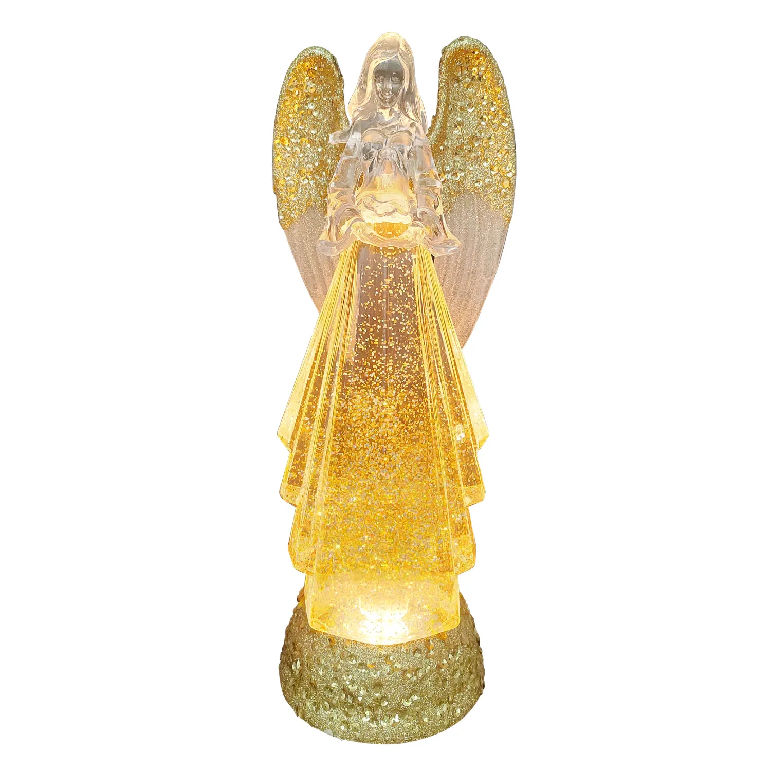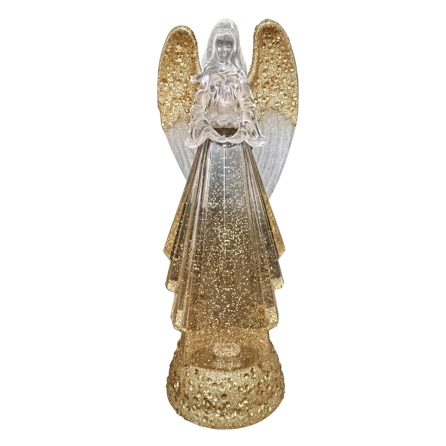 Illuminate your holiday décor with the celestial beauty of this 13.125” Gold Glitter Angel. Crafted with exquisite detail and adorned in shimmering gold glitter, this angel figurine brings an ethereal glow to any room. With delicate wings spread wide and a serene expression, she exudes grace and elegance, making her a stunning addition to mantels, tabletops, or Christmas displays. Whether as a centerpiece or a decorative accent, this radiant angel adds a touch of celestial charm to your holiday celebrations.