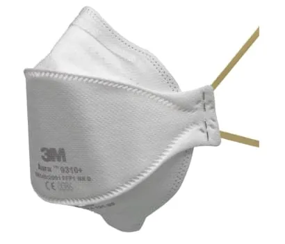The advanced three-panel design and low breathing resistance filter technology applied to the 3M Aura 9300 Series provides optimum comfort and easy communication, thus ensuring improved wearer acceptance even during long working hours. Being foldable they offer you more convenience than traditional cup shaped respirators. Its features include an embossed and sculpted top panel for improved compatibility with reduced fogging of eyewear and an innovative chin tab to improve the ease of fitting. Provides respiratory protection against low levels of fine dusts and mists