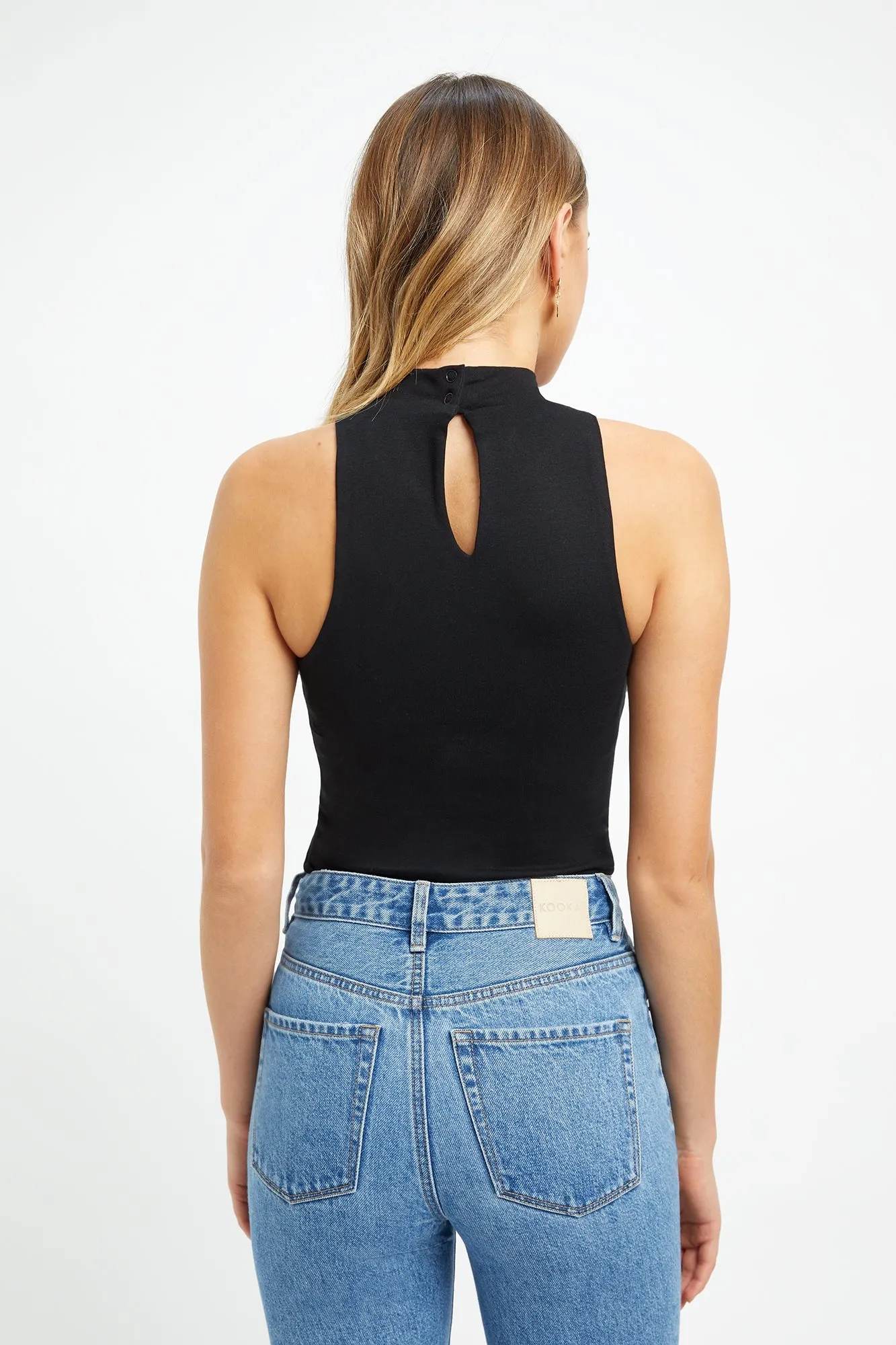 Sharpen up your basics with the Adriana Tank. Made from our Pima 200 cotton fabrication, comprising of 94% cotton and 6% elastane, this basic will provide ultimate comfort and shape retention. The high neck, fastened with a button closure, gives an elongating silhouette with its thick band detailing. Designed for a slim fit, the Adriana Tank will refine your look when paired with a statement bottom.