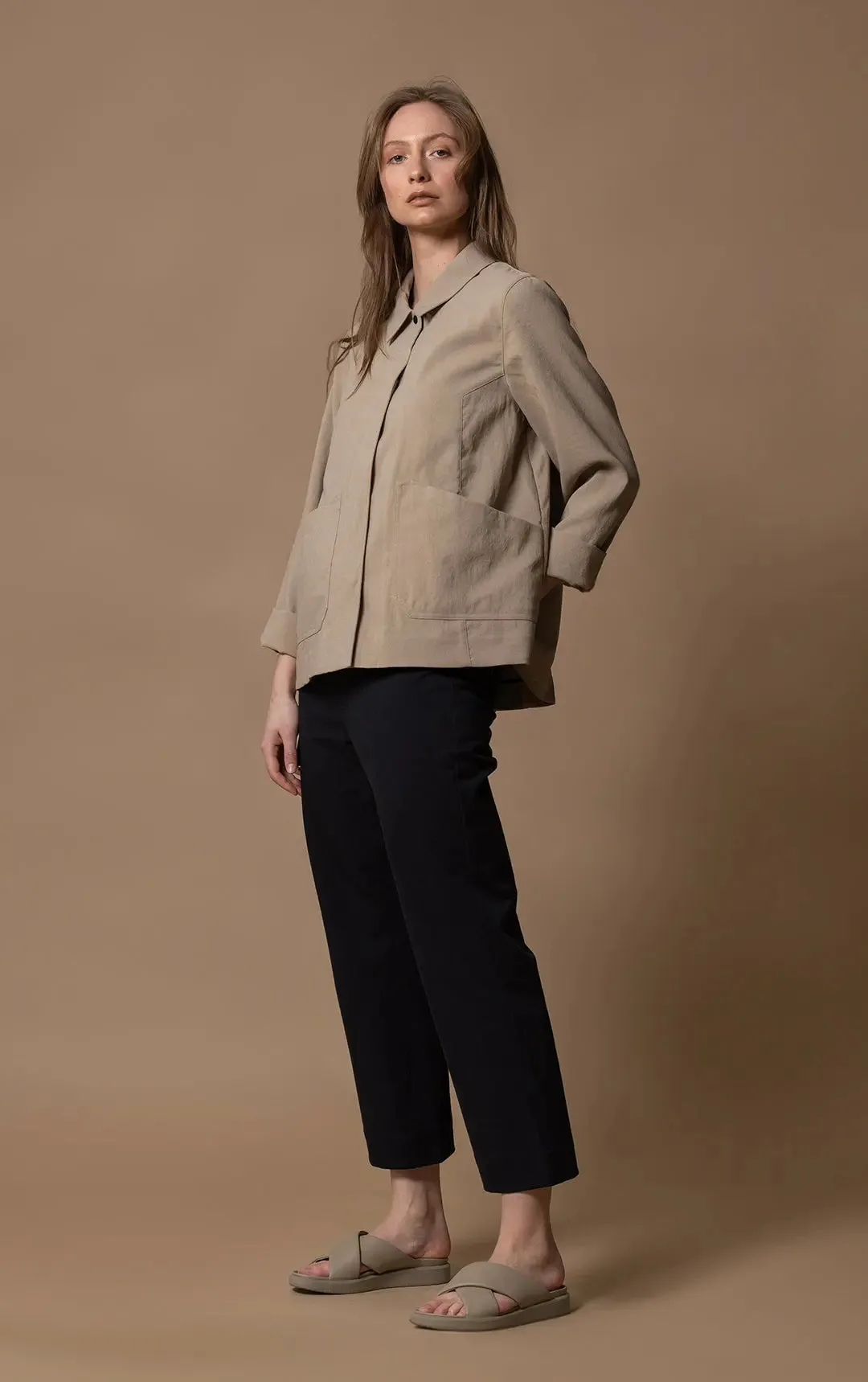 The Aerocapsule Work Jacket was built to take you from your commute, to your desk, then to dinner with ease. Aerocapsule™ Yarn is lightweight and comfortable, and the cropped, relaxed look of this jacket is complimented with a more tailored fit across the shoulders. With key technical features like a zipped internal pocket and DWR (Durable Water-Resistant) Finish, this is a performance piece disguised as your favourite everyday coat.