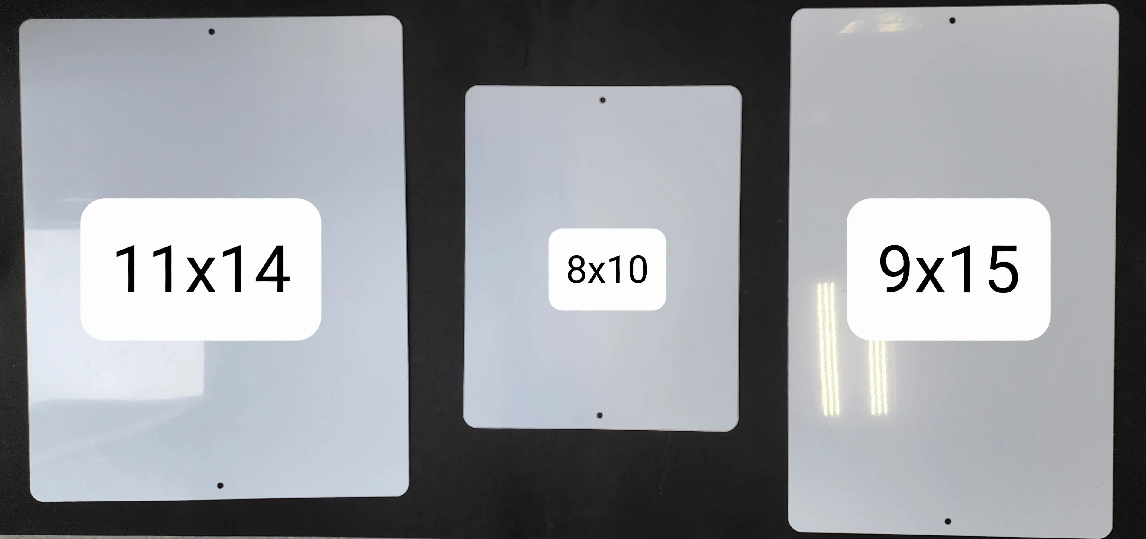 White aluminum sign for sublimation. These are great for a parking sign, road sign, photo print, pool rules, shop rules or anything else! They can make a great gift for any occasion!