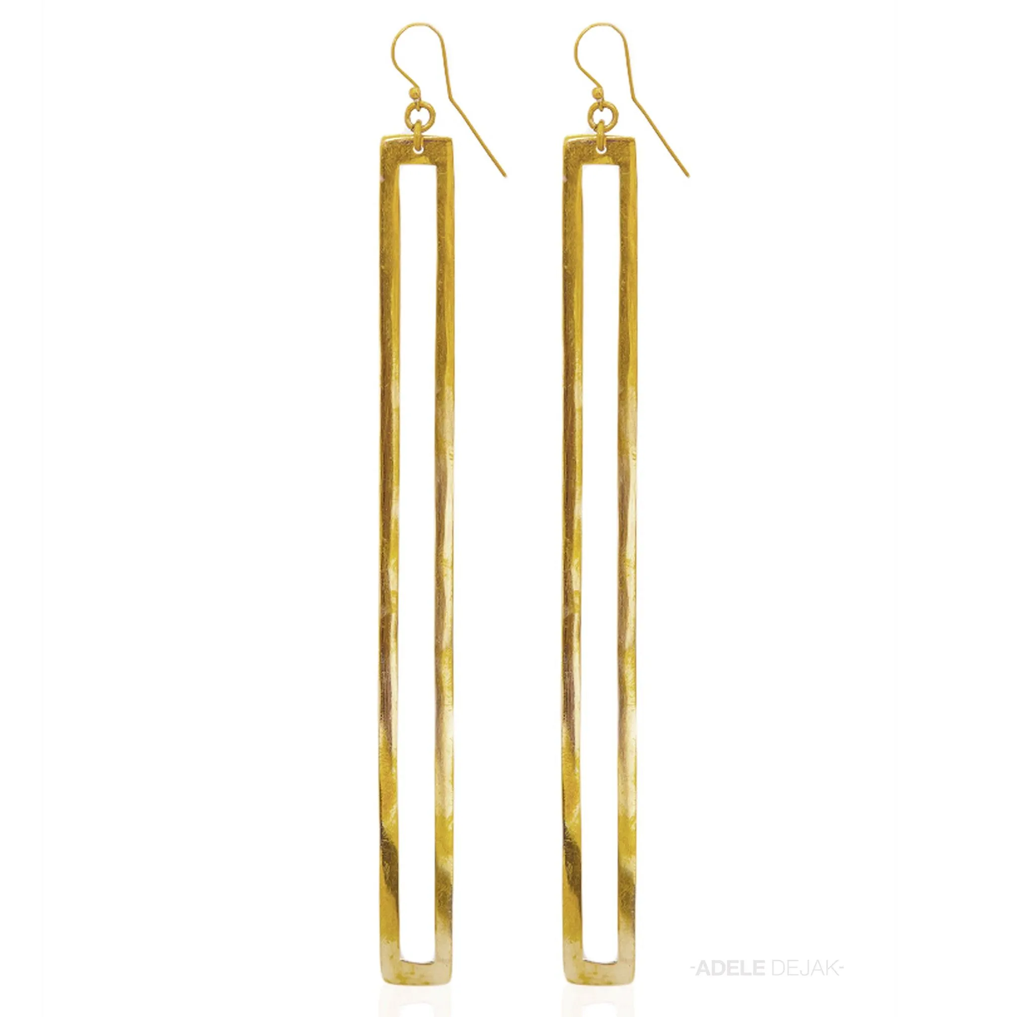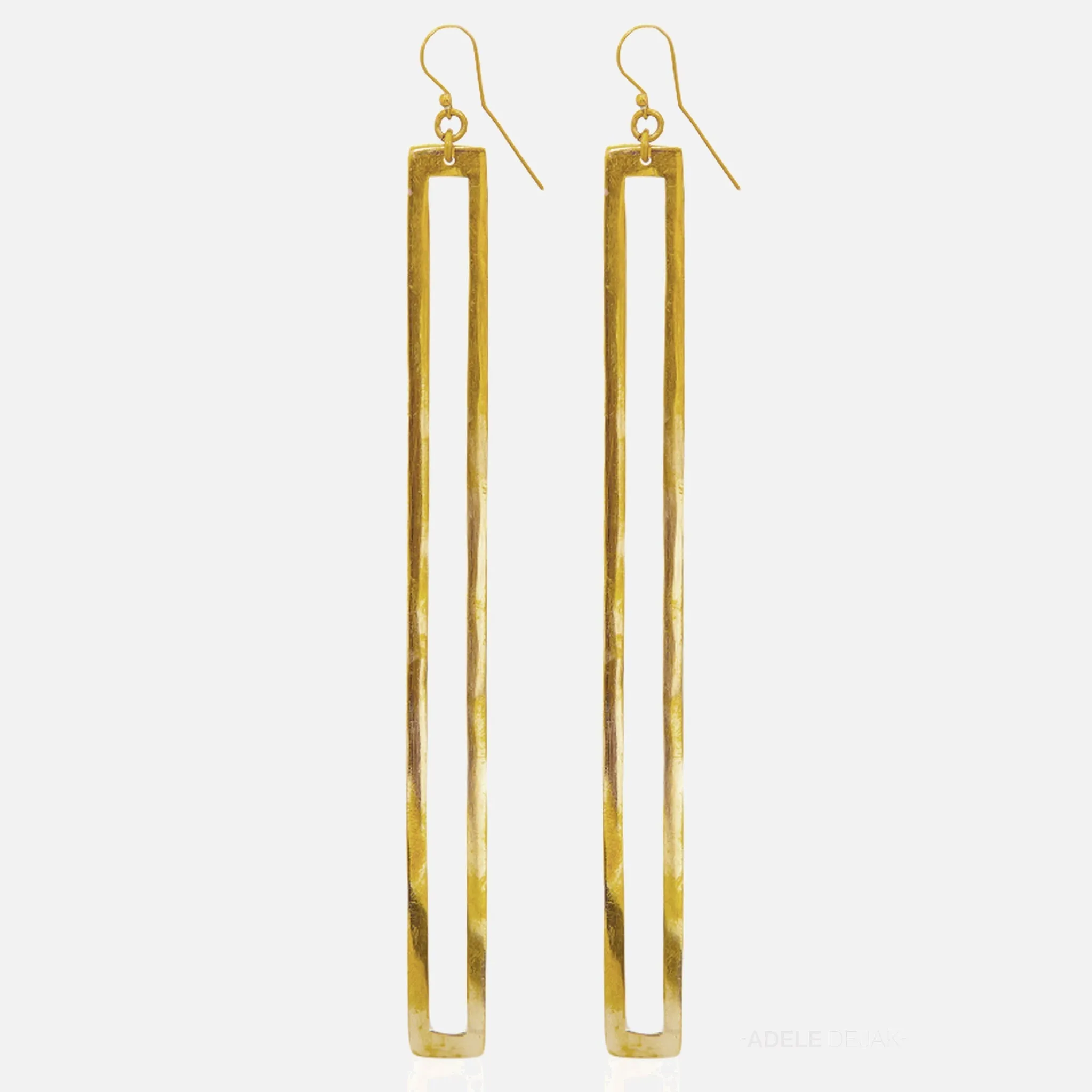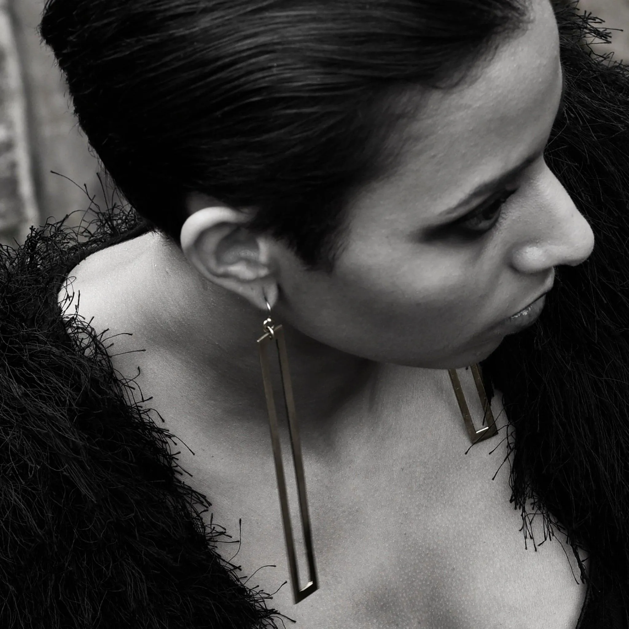 The Aode Brass Funky Earrings, are crafted with ethical practices using recycled brass. These earrings offer a perfect blend of simplicity and boldness to frame the face and complement fashion-forward outfits. Their slender rectangular shape, coupled with a carved-out design, ensures lightweight comfort for both daytime and evening wear. The Aode brass earrings make for a special and sustainability-minded anniversary gift, reflecting your commitment to both style and ethical choices. Designed for pierced ears, these earrings are a versatile accessory, perfect for those with short hair. Elevate your fashion statement with this unique and handcrafted piece.