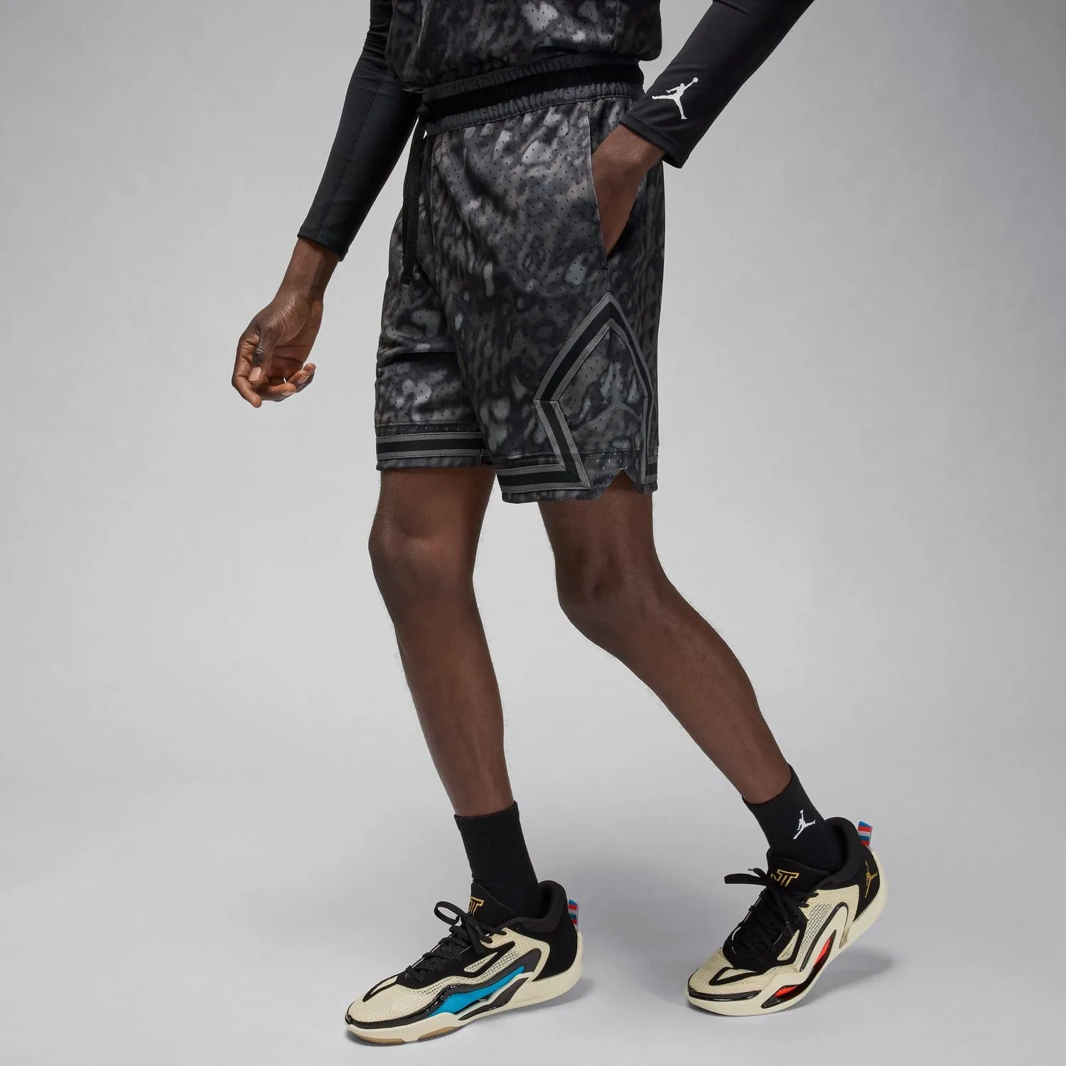 Style and comfort go hand in hand in the Jordan AOP Diamond Men's Shorts. You'll be ready to run errands or strike up a game when the moment arises. Plus, with their all-over pattern, they're not your average pair of shorts.