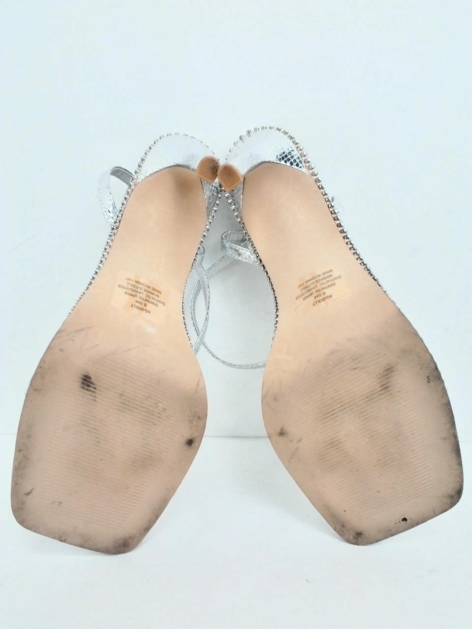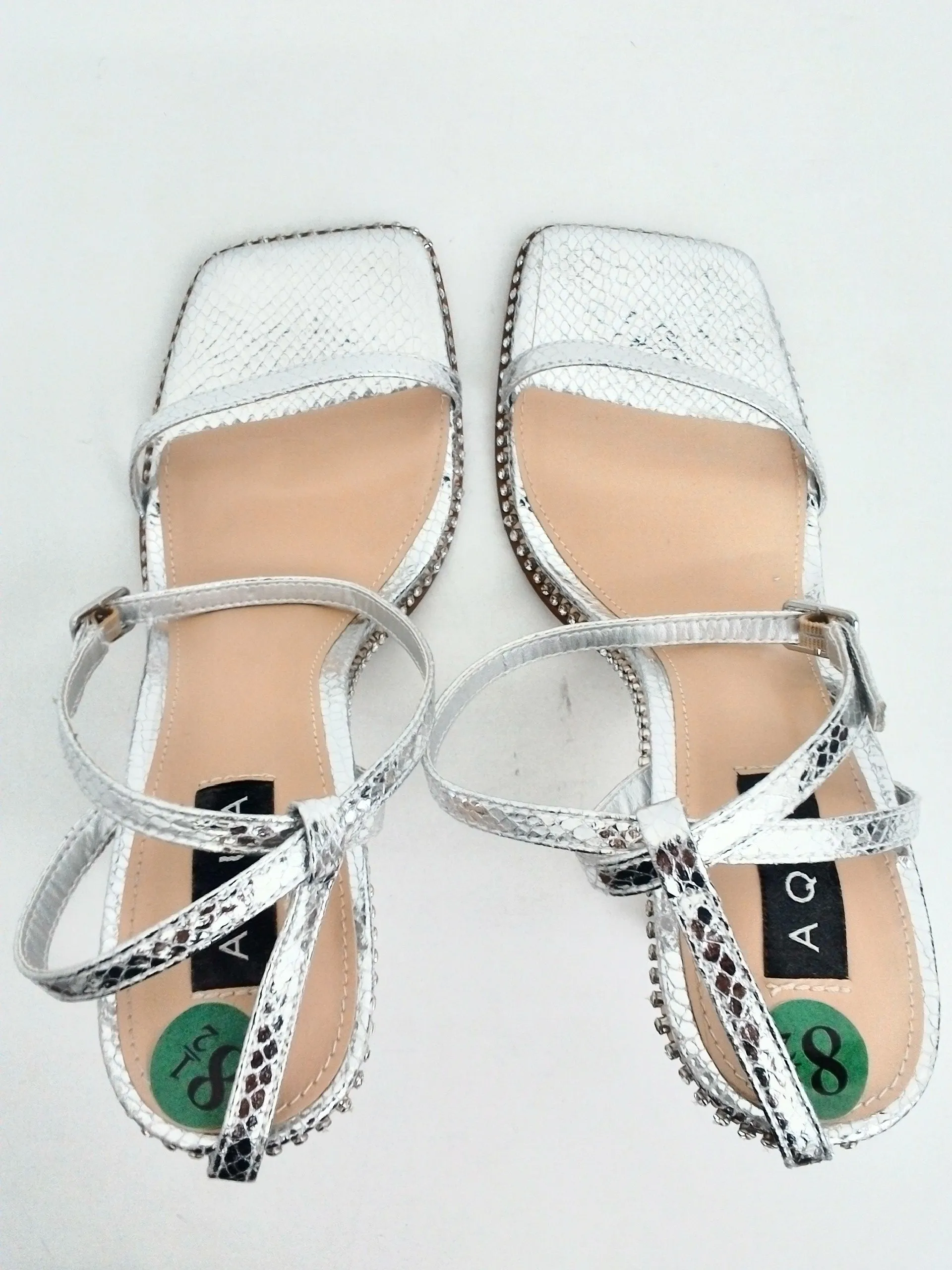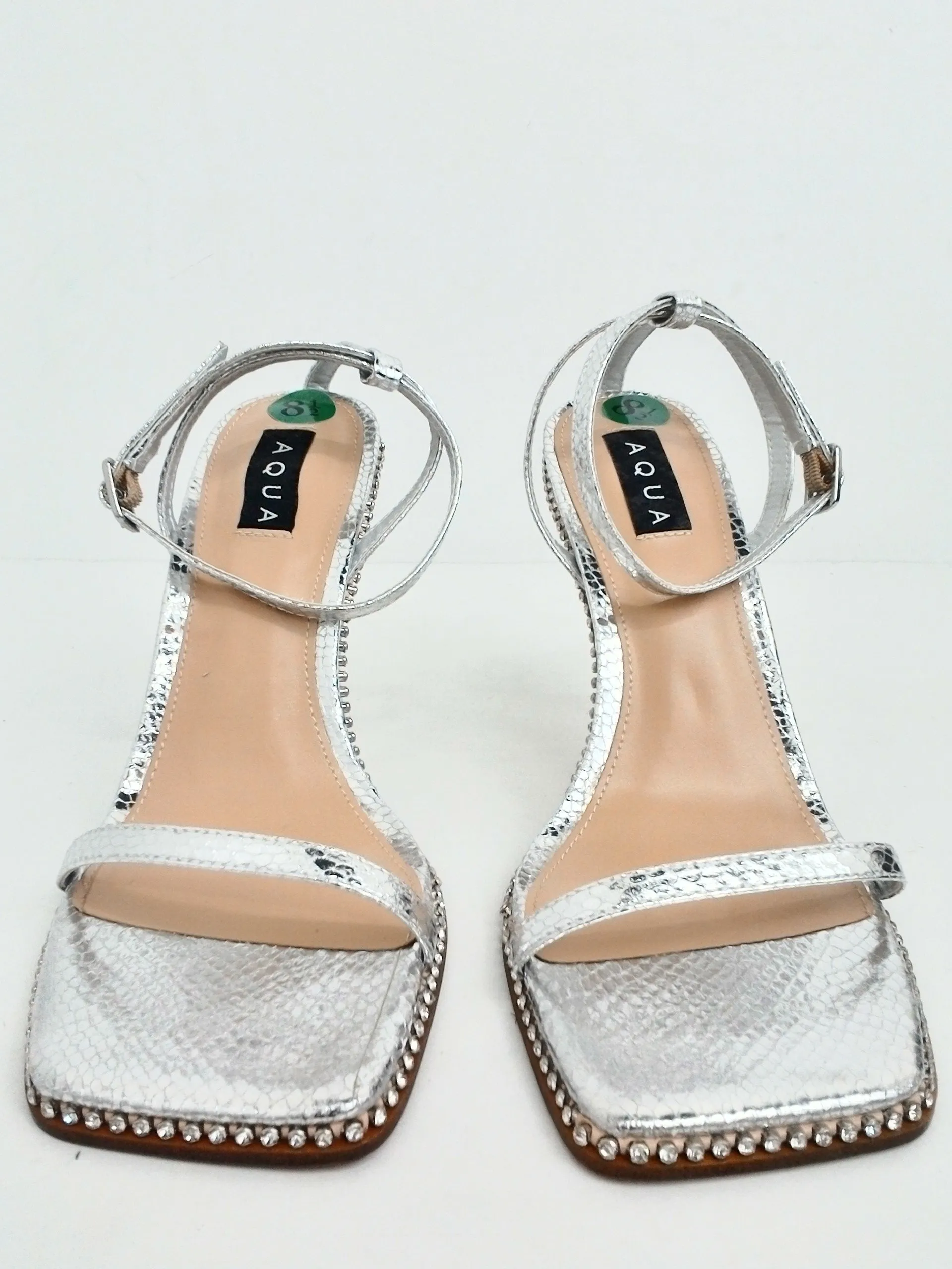Aqua Women's Dolly Silver Heeled Sandals Size 8.5 M. pre-owned without box