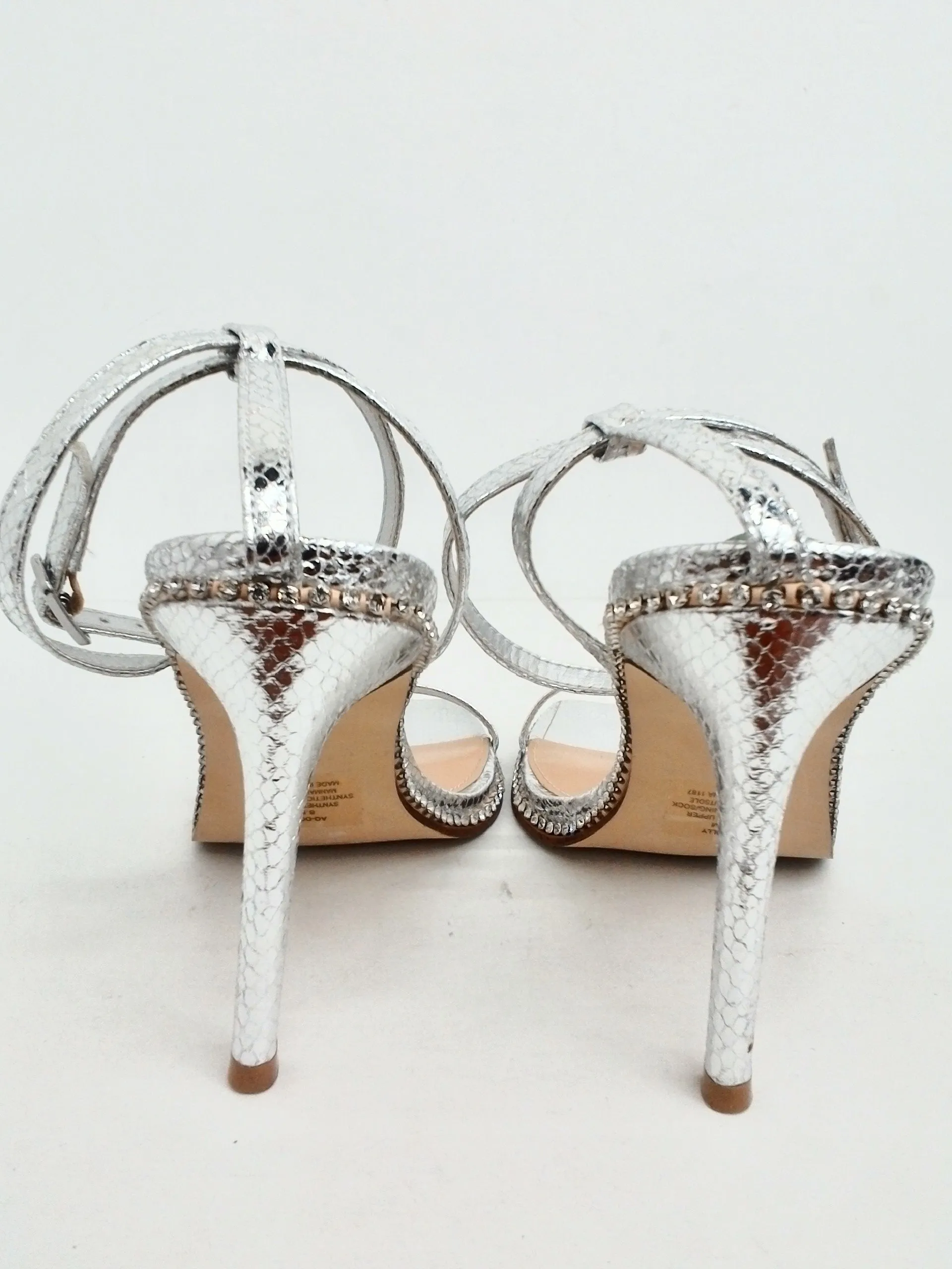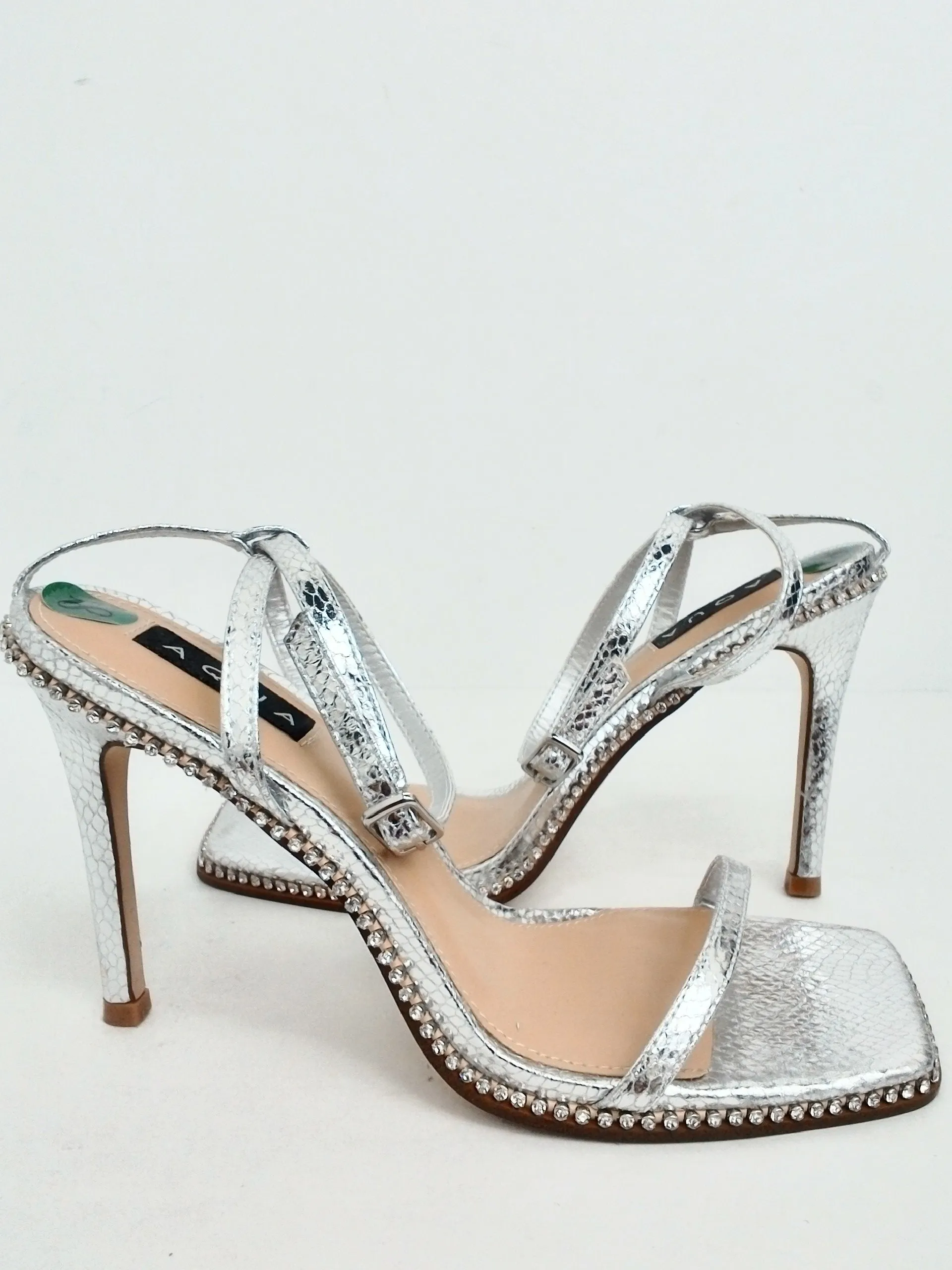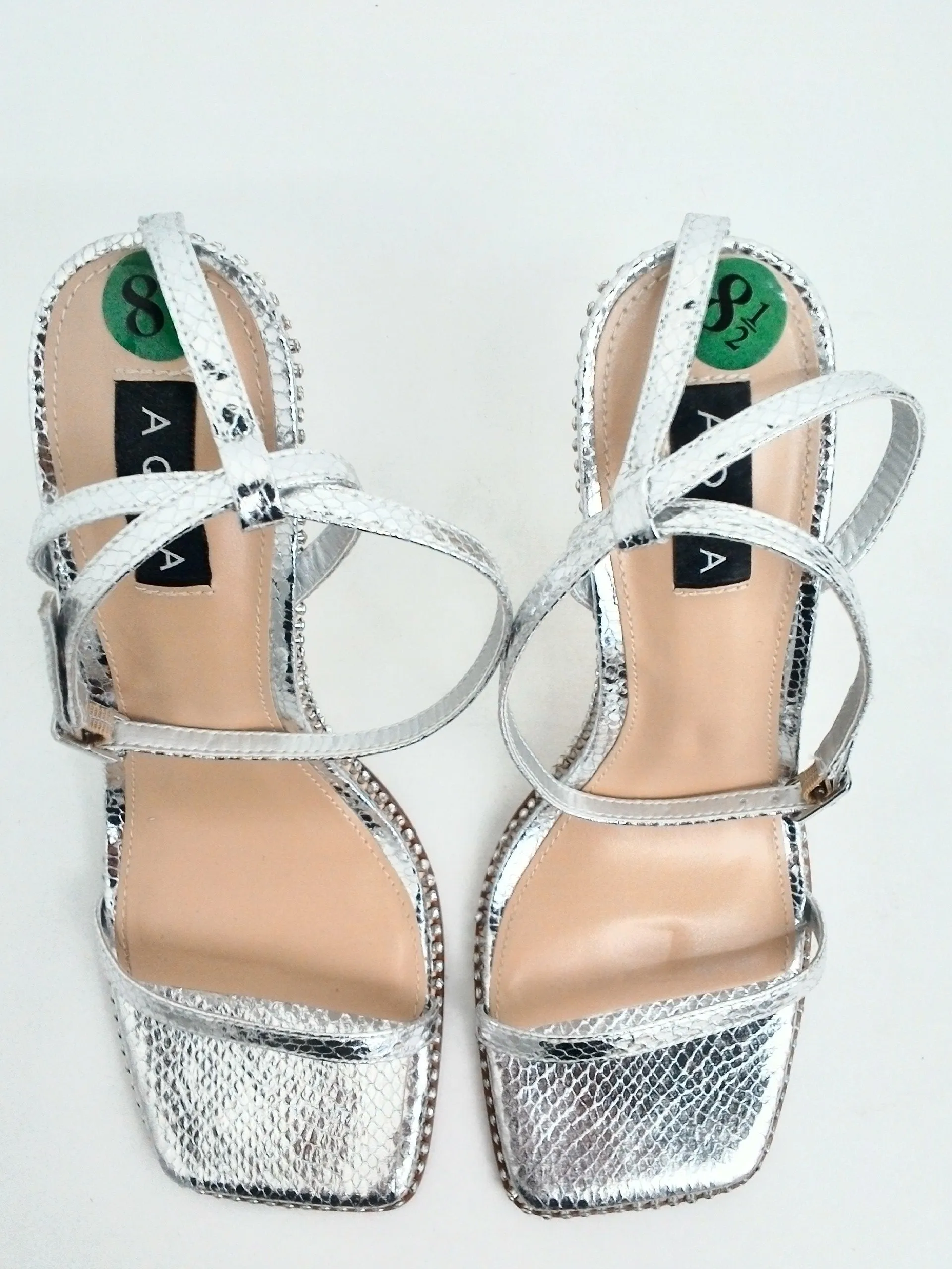 Aqua Women's Dolly Silver Heeled Sandals Size 8.5 M. pre-owned without box