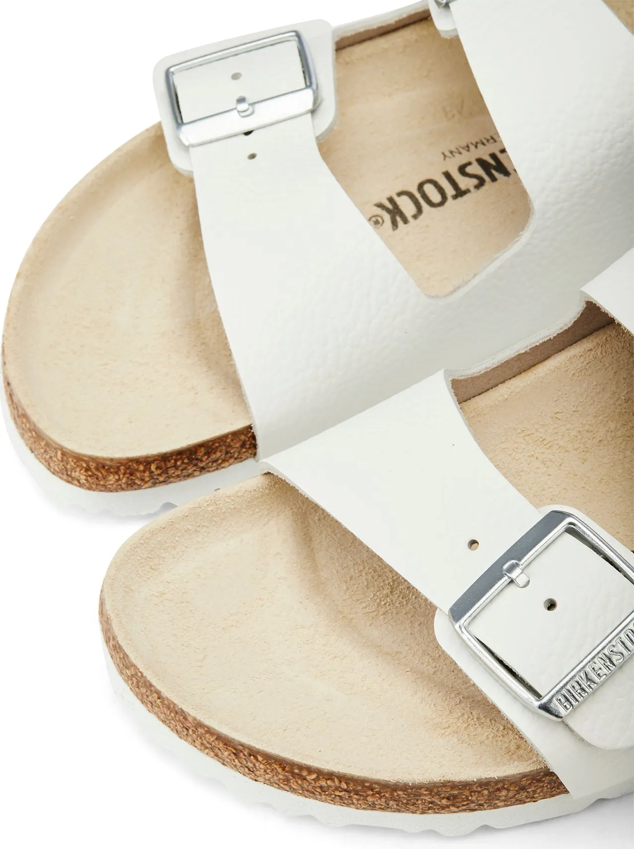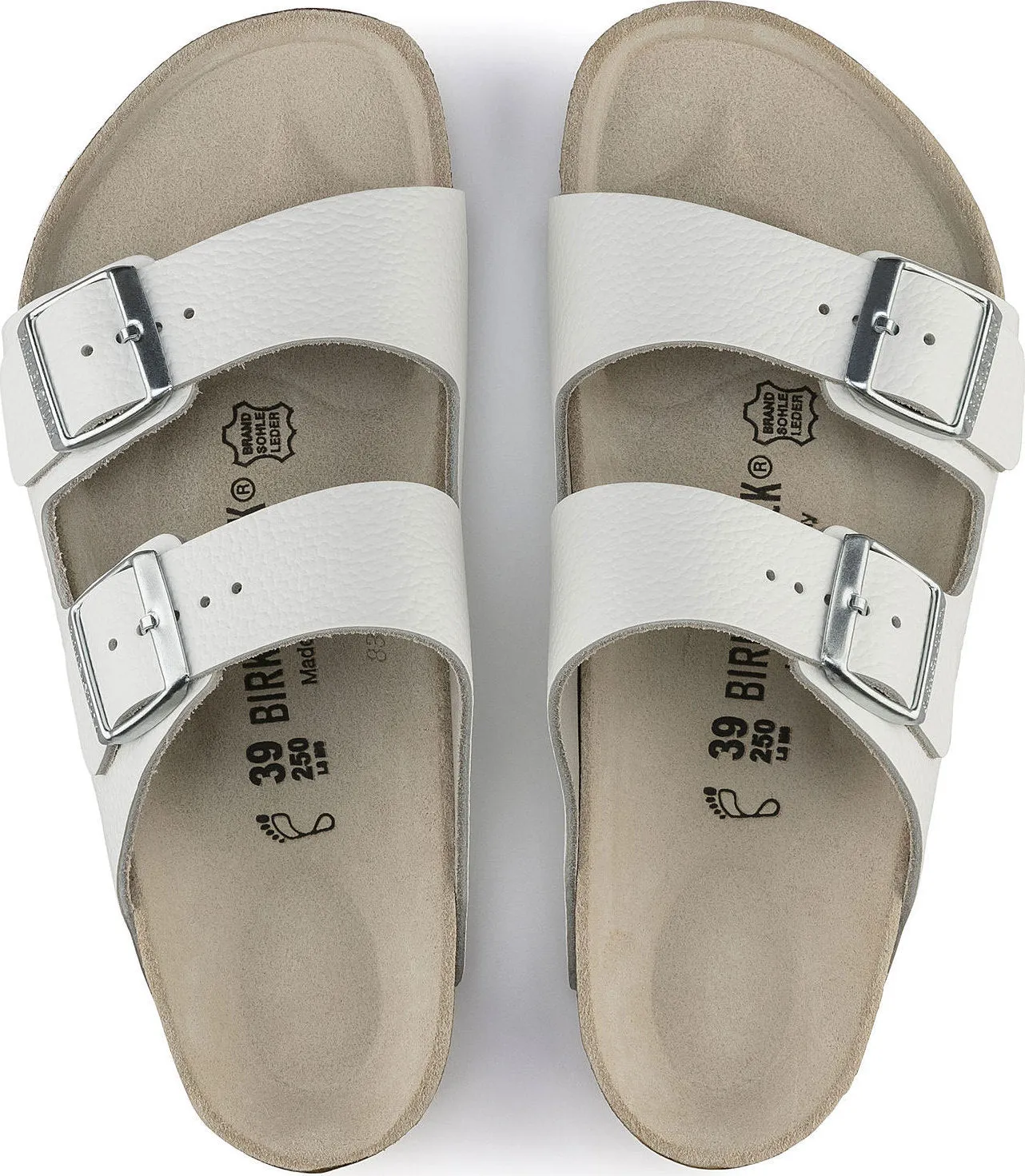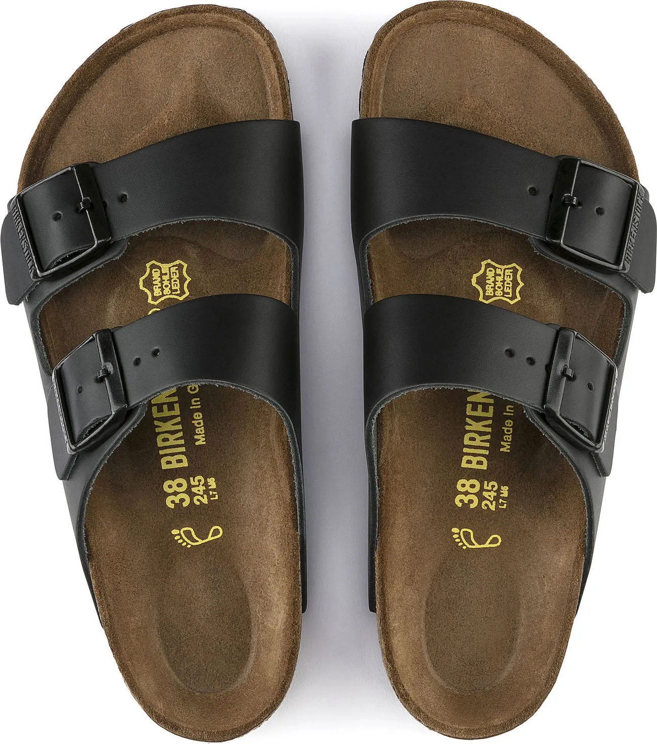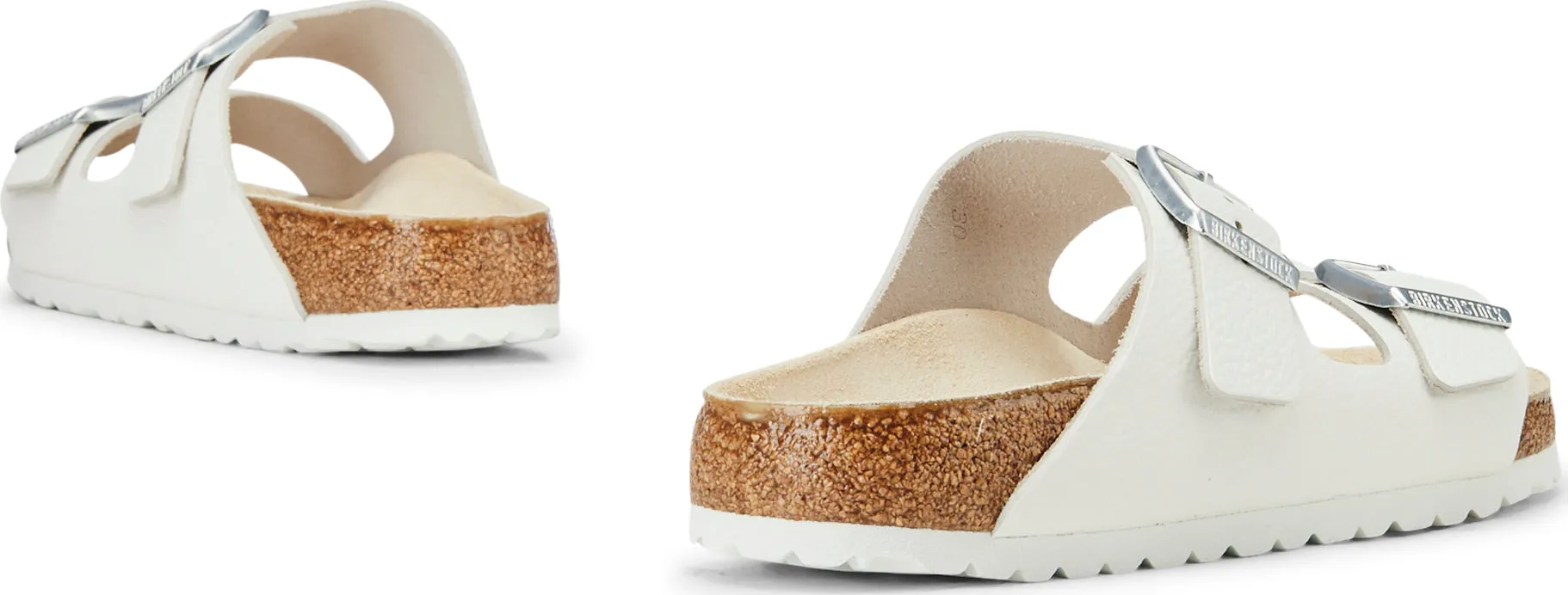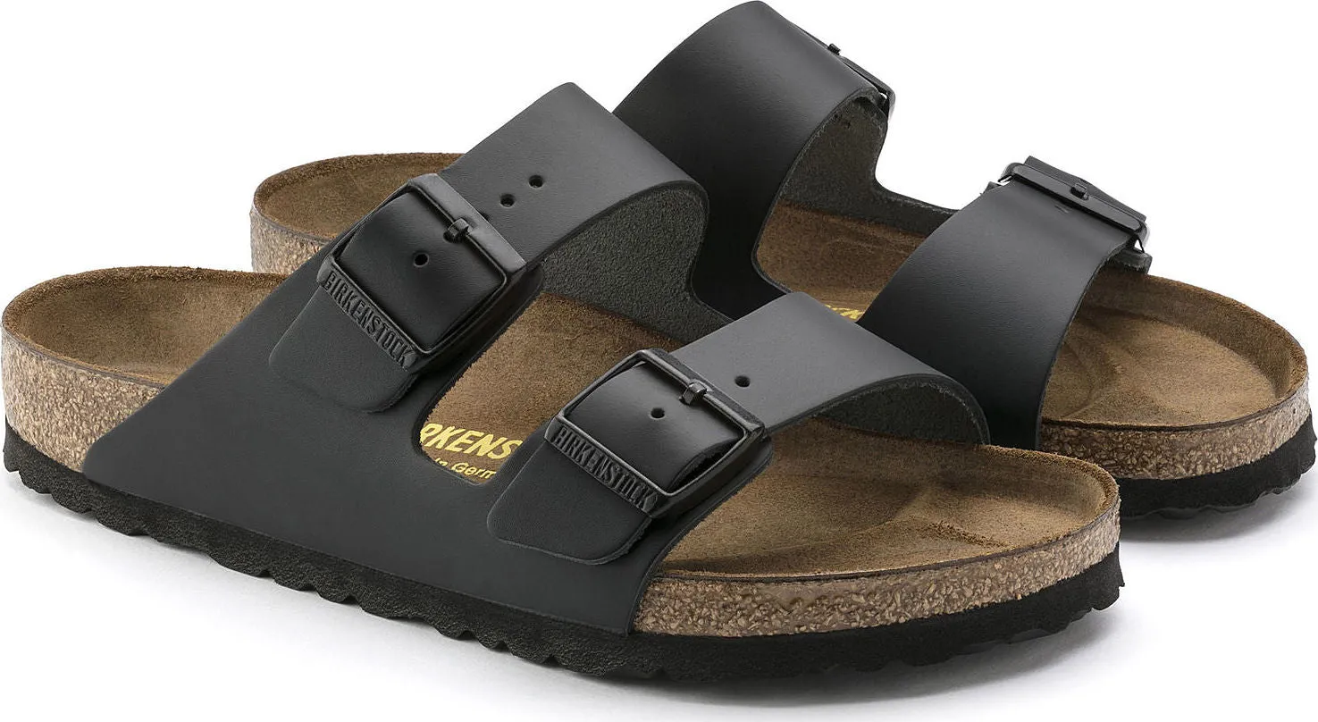 The Unisex ARIZONA Smooth Leather sandal has a narrow fit, with comfort and style in a natural look. Both straps have individual adjustment buckles. The footbed is anatomically-shaped cork-latex and suede-lined. A durable EVA sole sucks up the shock in every step. The fit is for more narrow feet but with the same famed comfort by Birkenstock.
