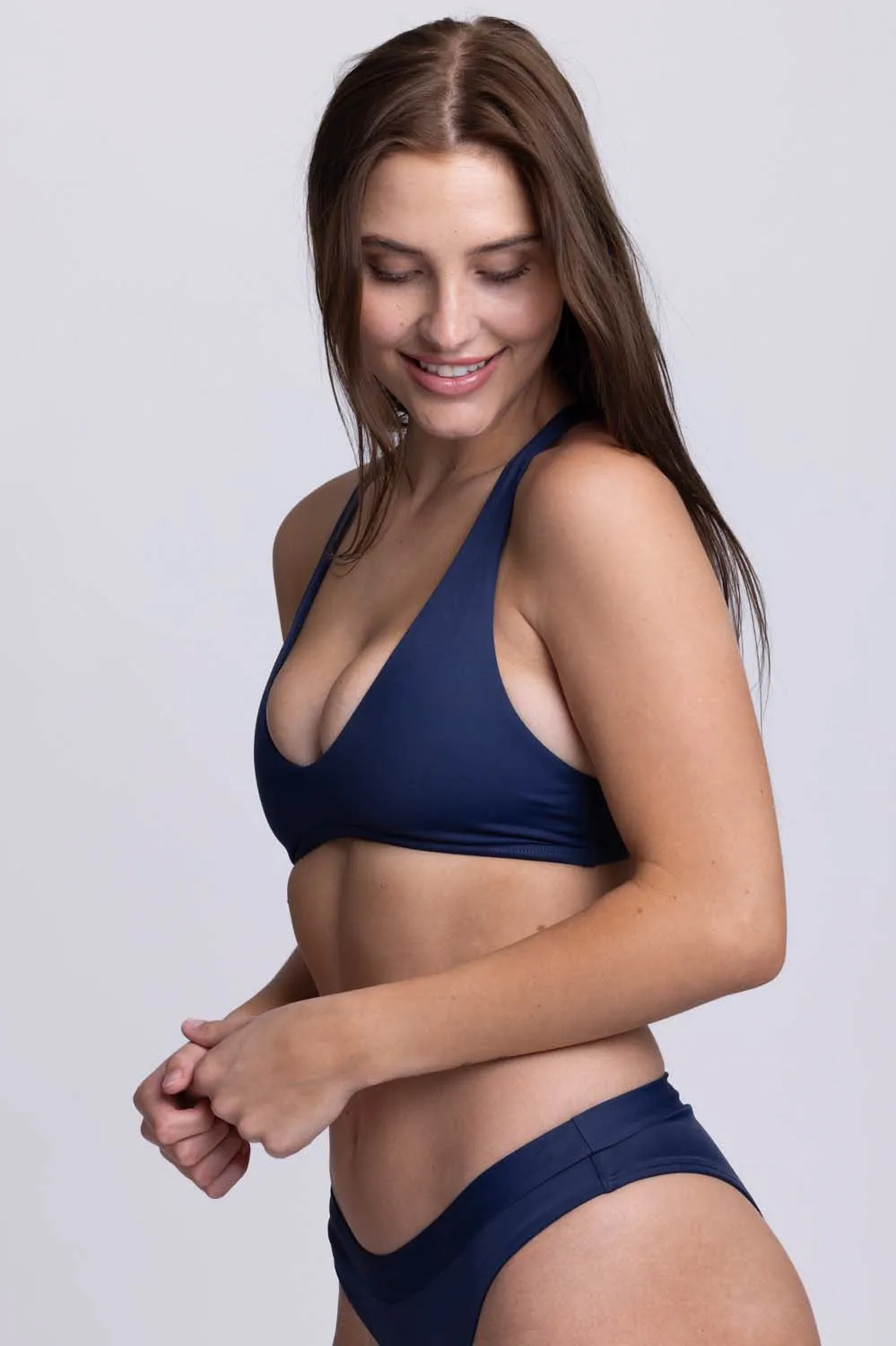 No one likes a funky tan line after an active day at the beach, so we’ve got your back with this slim racerback, deep scooped neck bikini top. For worry-free support, while you move, the Aster has 3/4" straps to keep you active. Driven by performance, the Aster has been updated to have more coverage in the front to keep you covered no matter what! Designed with our buttery soft Recycled Surf-Tec fabric, you’ll want to wear this top all summer.