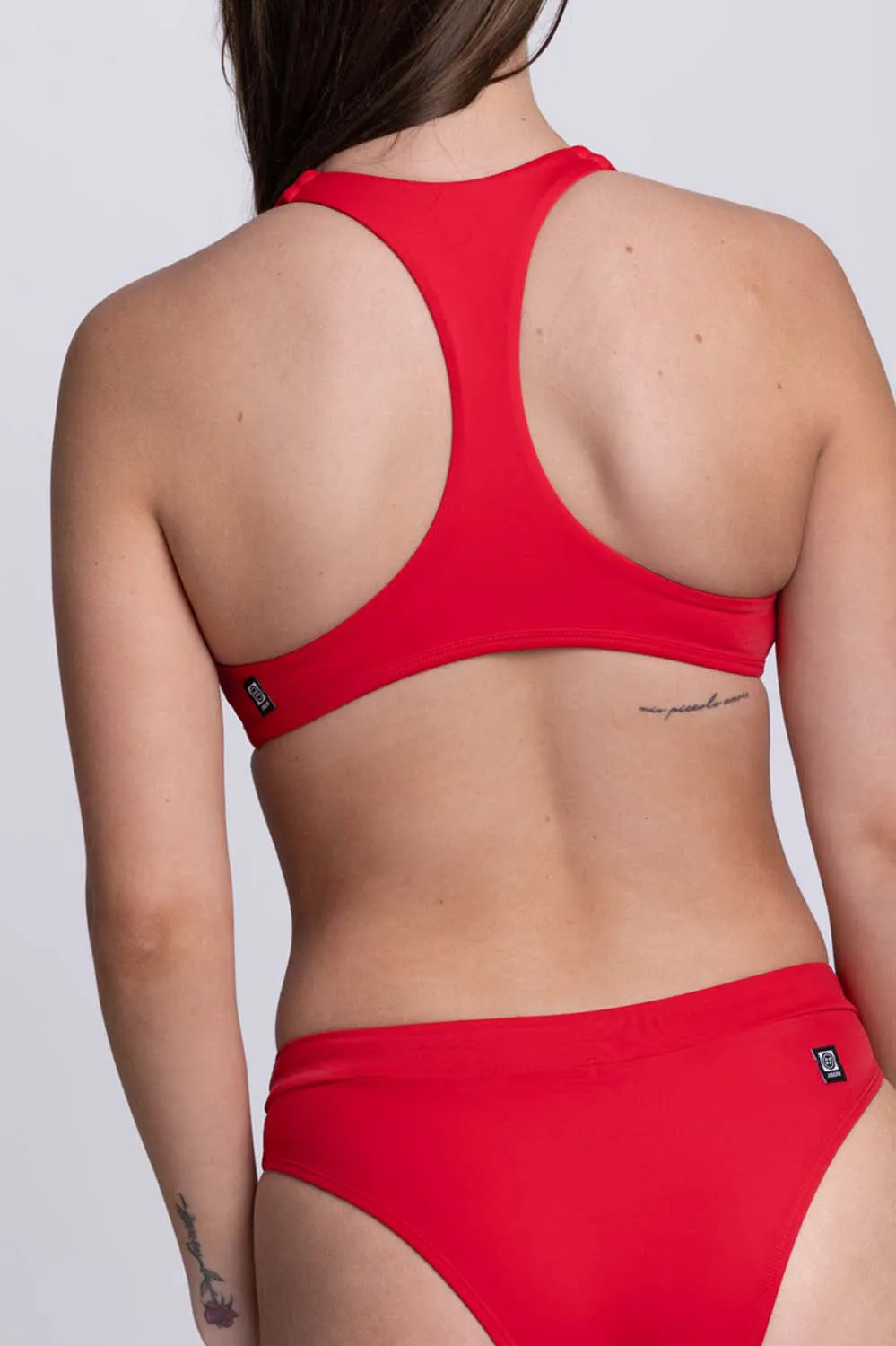 No one likes a funky tan line after an active day at the beach, so we’ve got your back with this slim racerback, deep scooped neck bikini top. For worry-free support, while you move, the Aster has 3/4" straps to keep you active. Driven by performance, the Aster has been updated to have more coverage in the front to keep you covered no matter what! Designed with our buttery soft Recycled Surf-Tec fabric, you’ll want to wear this top all summer.