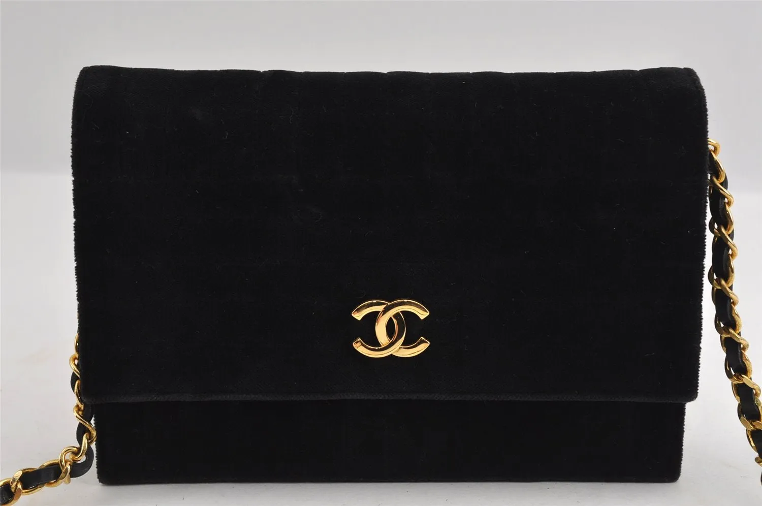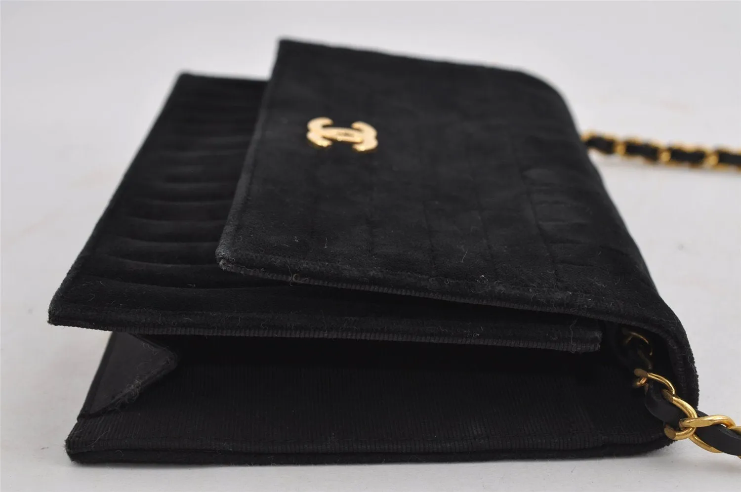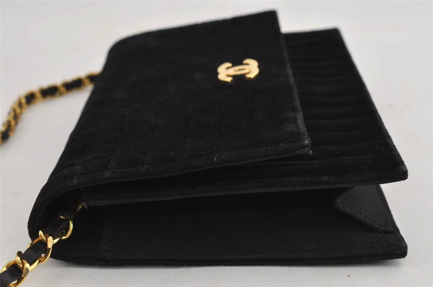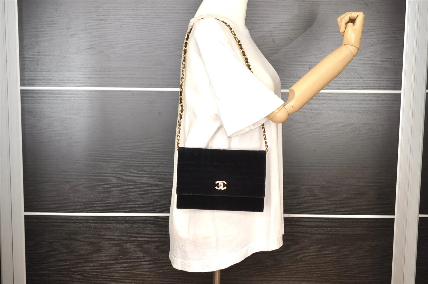 Auth CHANEL Mademoiselle Velour Leather Chain Shoulder Bag Purse Black 5663I