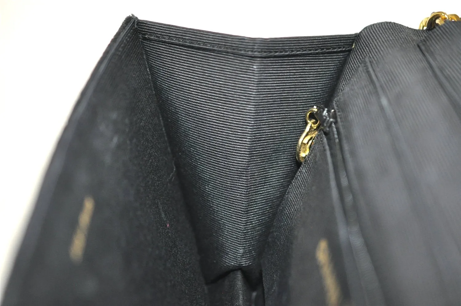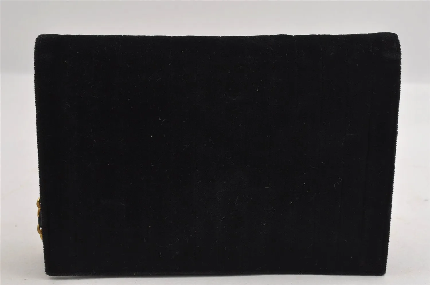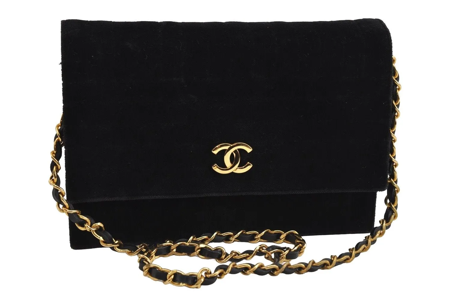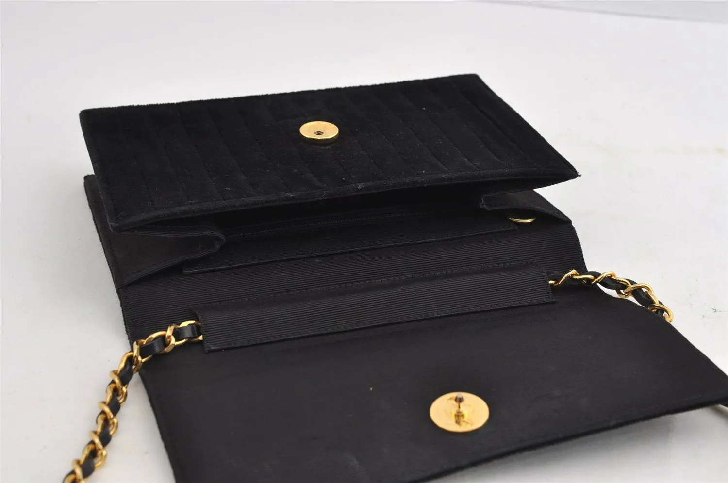 Auth CHANEL Mademoiselle Velour Leather Chain Shoulder Bag Purse Black 5663I