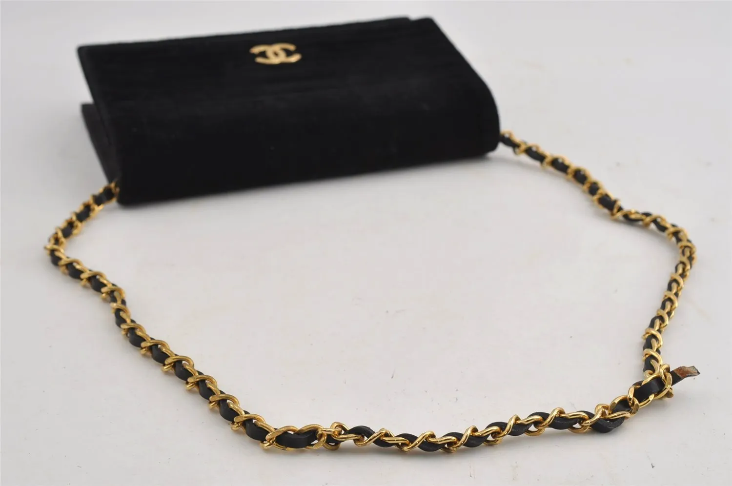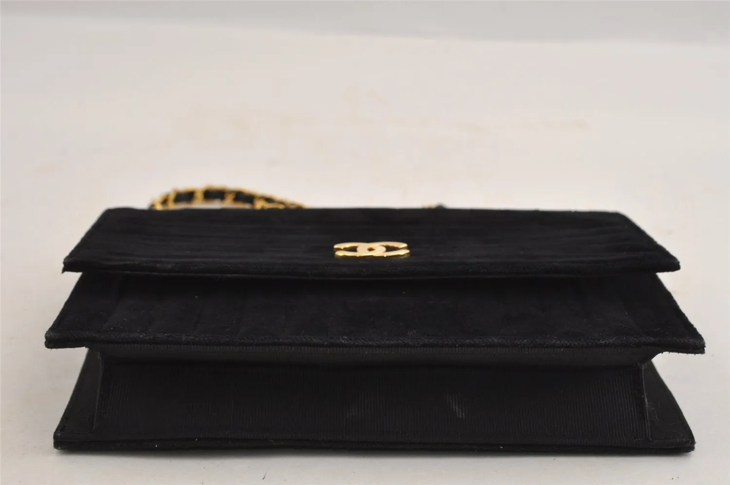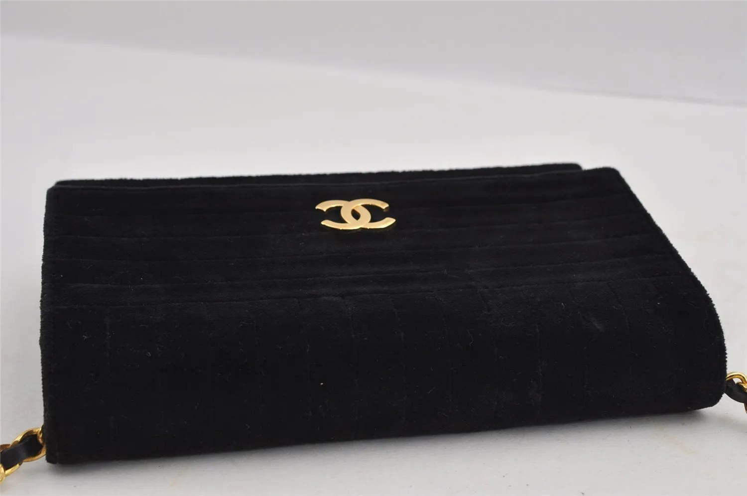 [Title] Auth CHANEL Mademoiselle Velour Leather Chain Shoulder Bag Purse Black 5663I