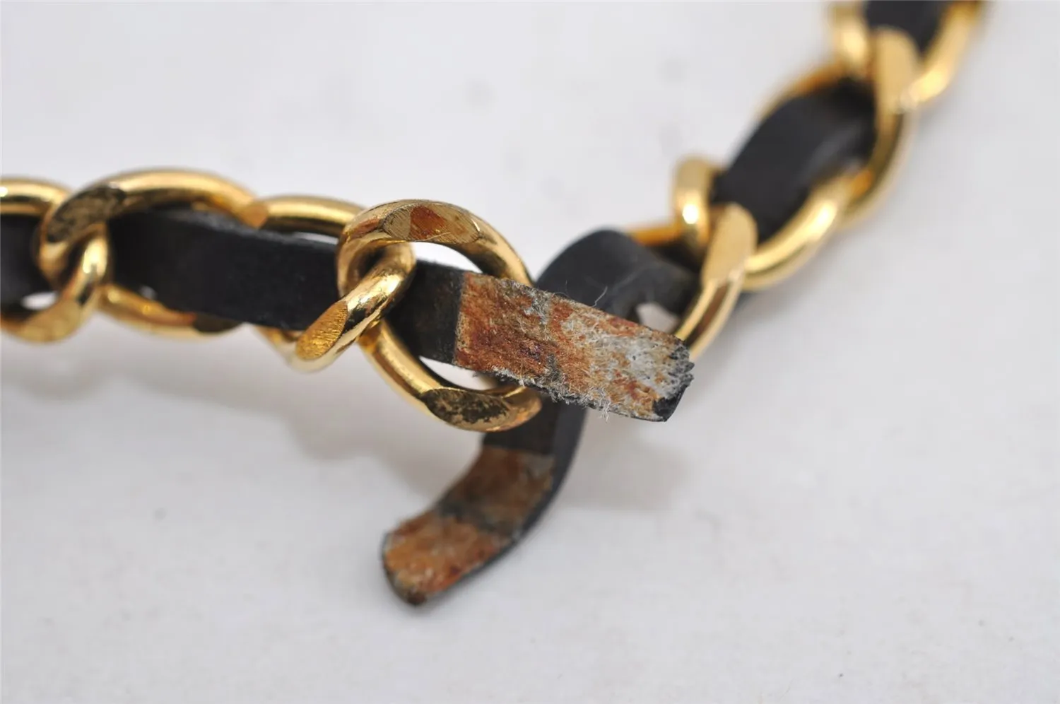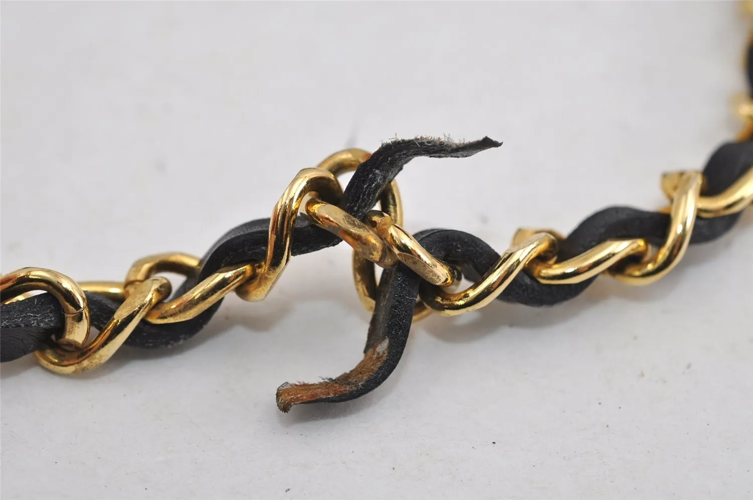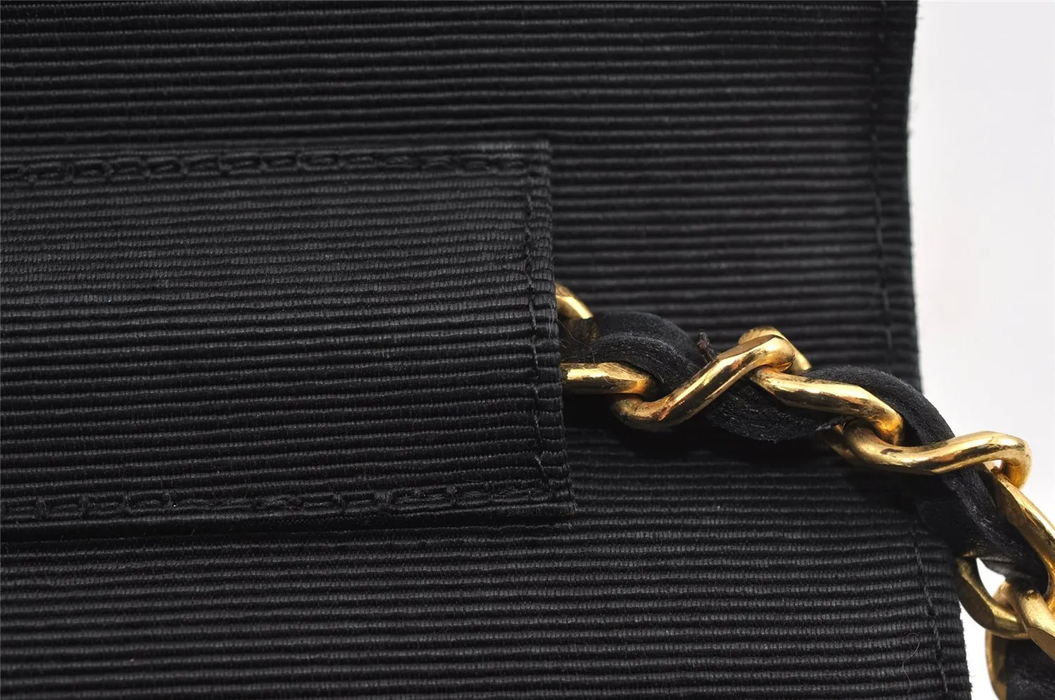 [Title] Auth CHANEL Mademoiselle Velour Leather Chain Shoulder Bag Purse Black 5663I
