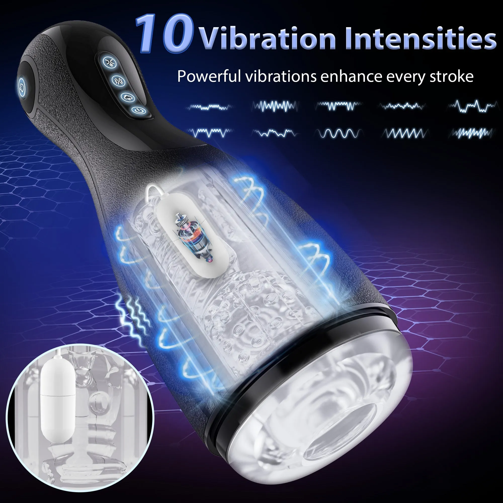 - Versatile Modes Sex Toys for MenThis innovative adult sex toy offers an array of versatile modes to satisfy your desires. With 10 vibration settings, 3 suction and 3 grip modes, allowing you to find the perfect combination that suits your desires. With the ability to go hands-free, you can truly lose yourself in the experience, focusing solely on your pleasure.