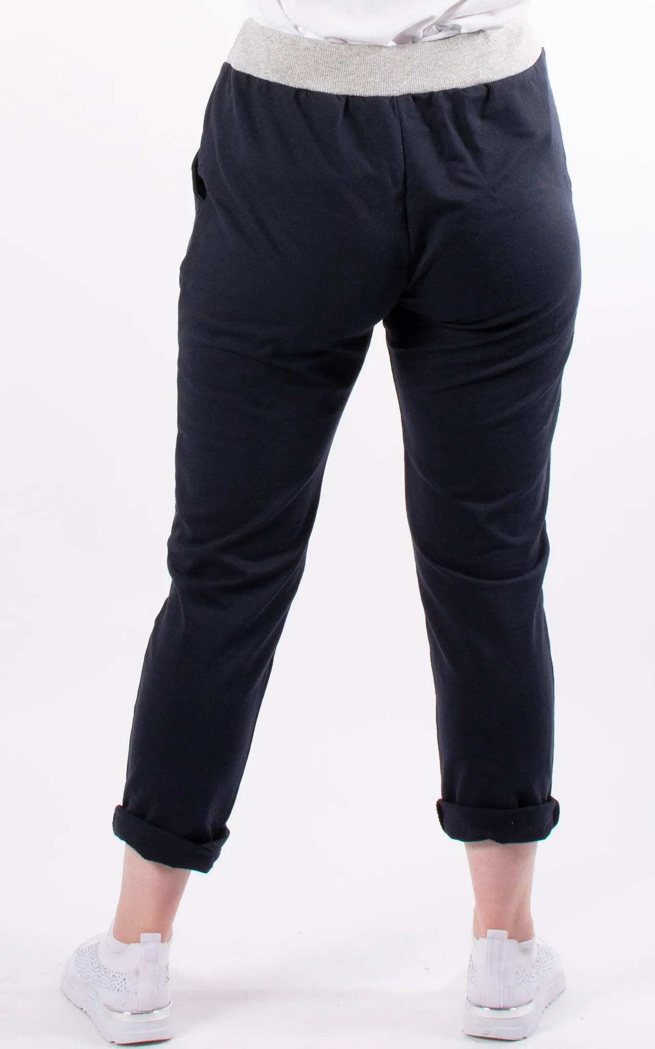 Our fantastic basic joggers are a wardrobe essential. A Room Lytham best seller, these joggers offer comfort and style. Wear rolled up or full length for a great casual look. Complete with two pockets and a drawstring waist.