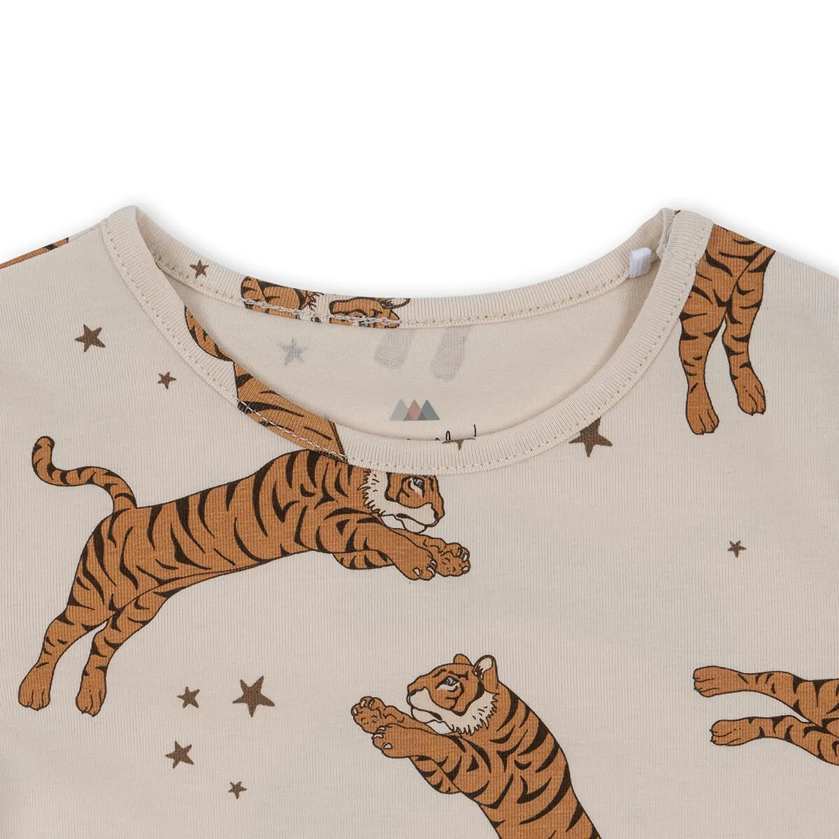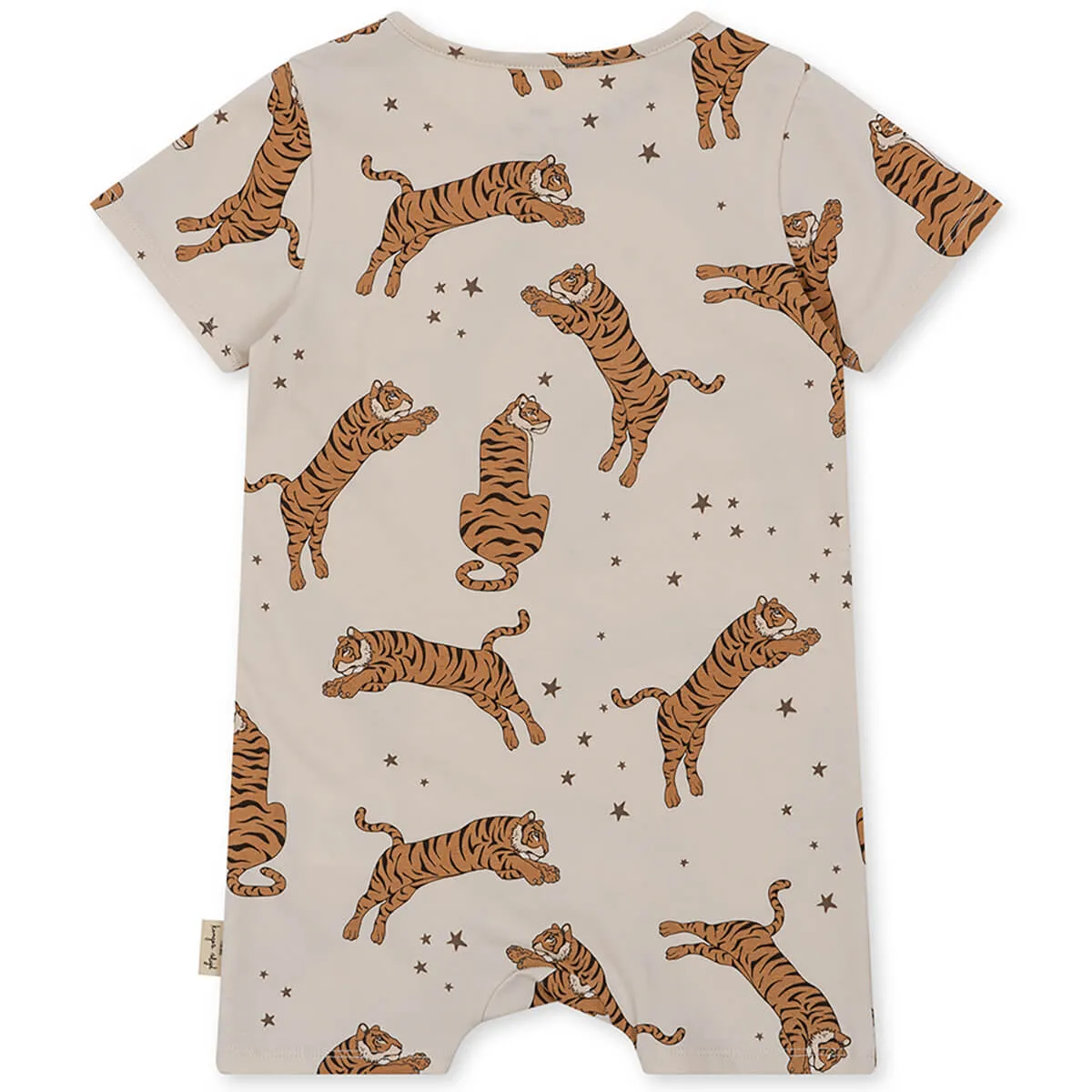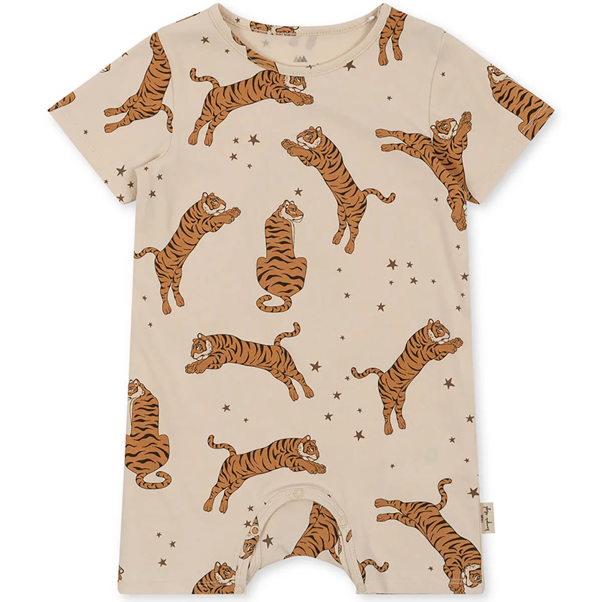 Basic Romper by Konges Sløjd. Short-sleeved onesie features press buttons on shoulders and leg openings for easy dressing.