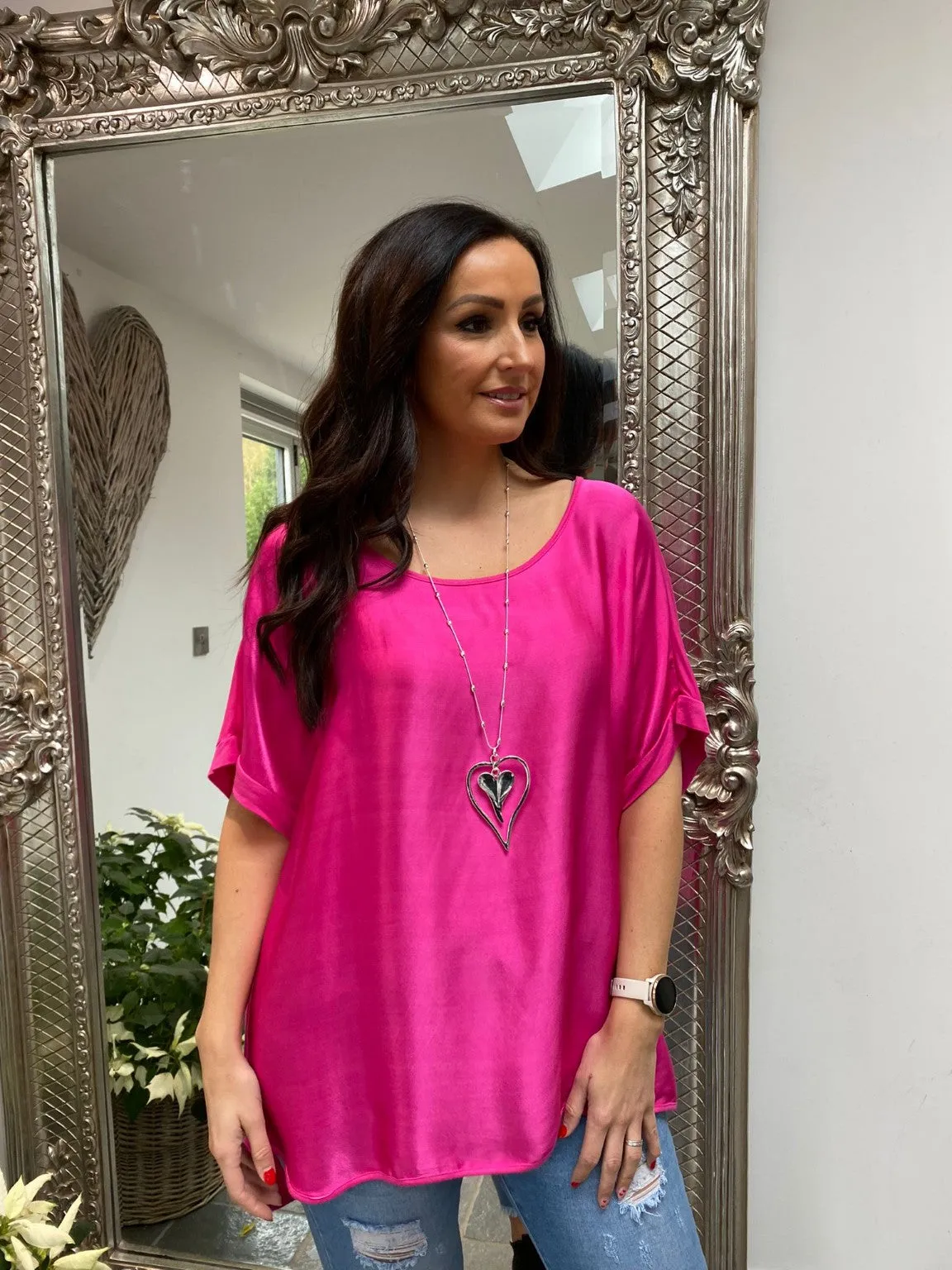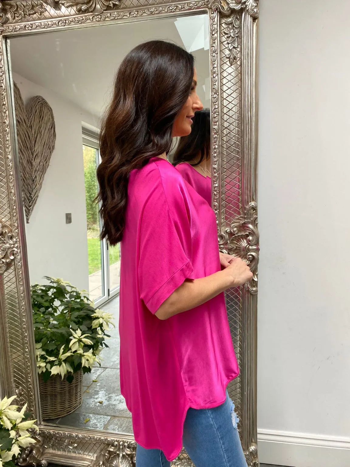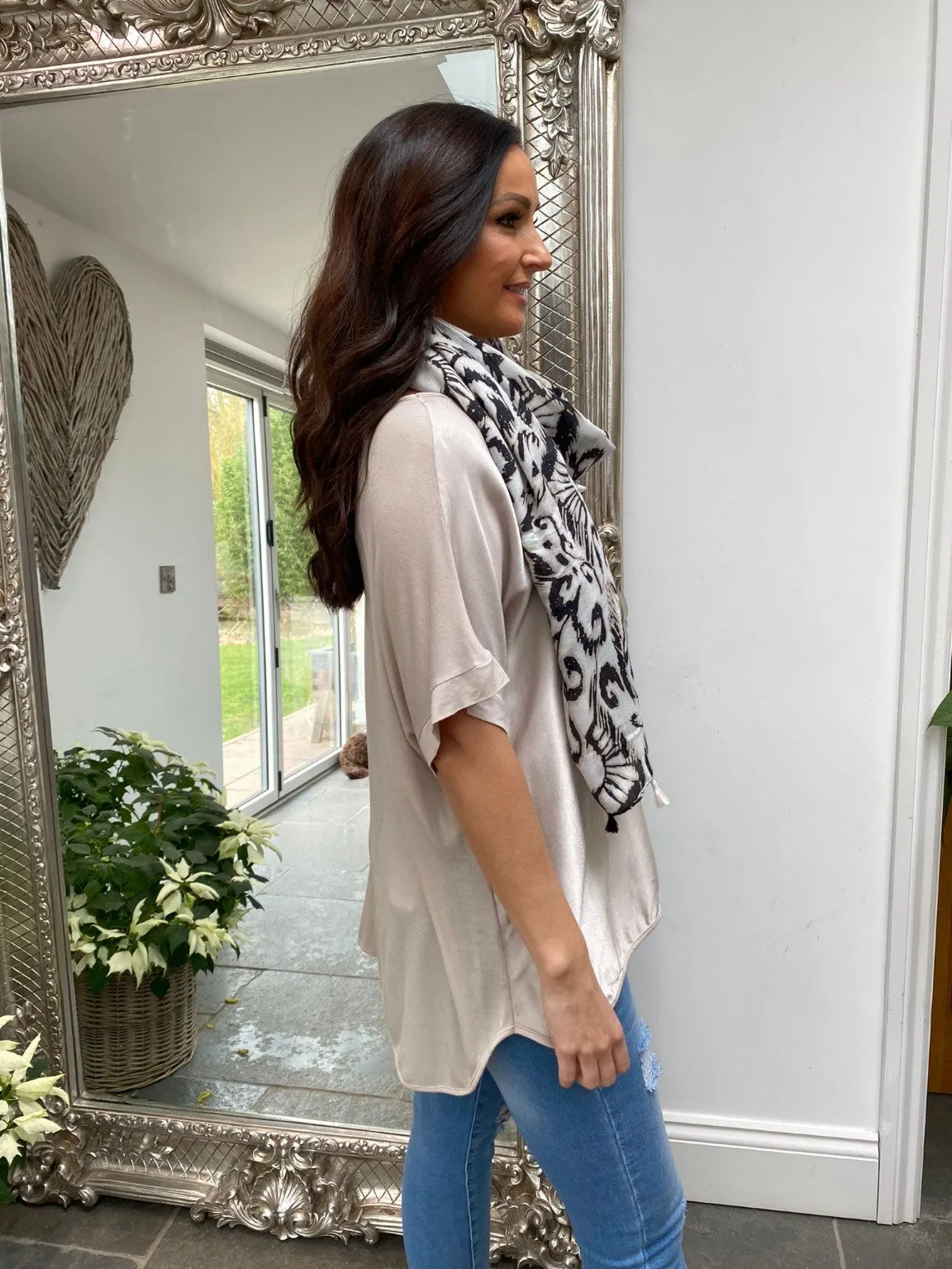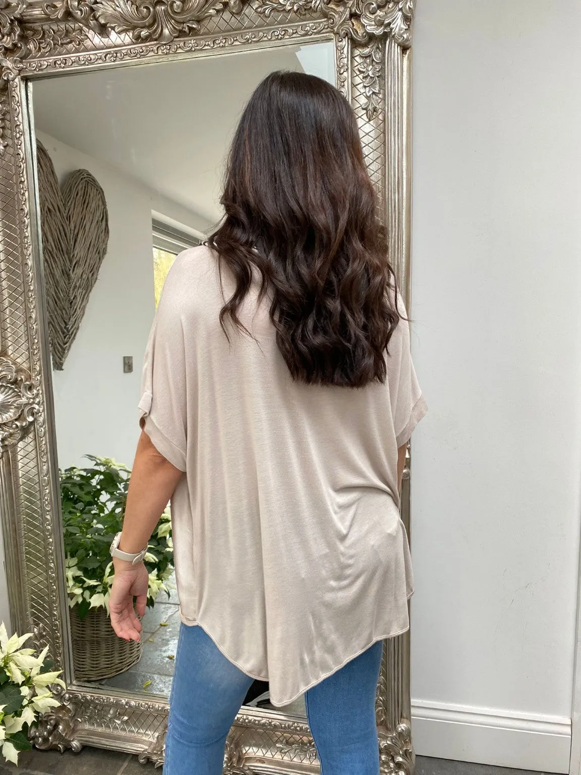The Basic Short Sleeve Top Carrie is a lovely casual piece to add to your wardrobe. It features a shine on the material which gives an all round lovely finish. Team with jeans or leggings and your favourite shoes for any occasion.