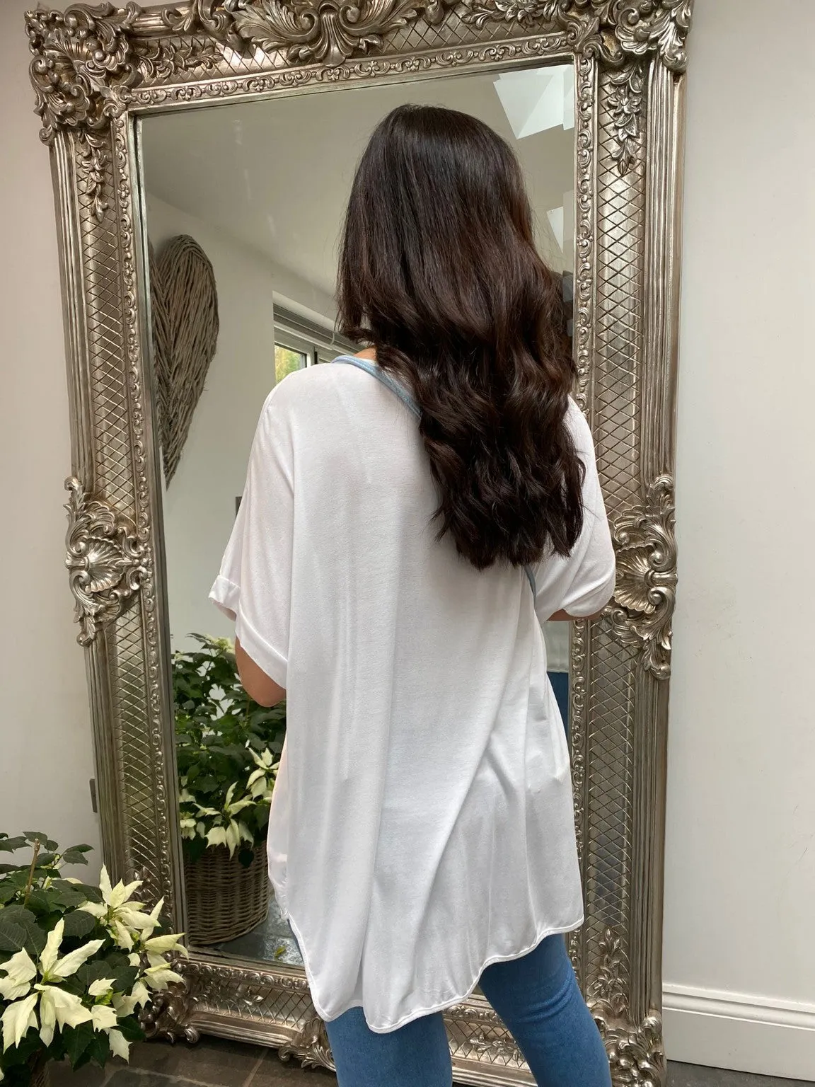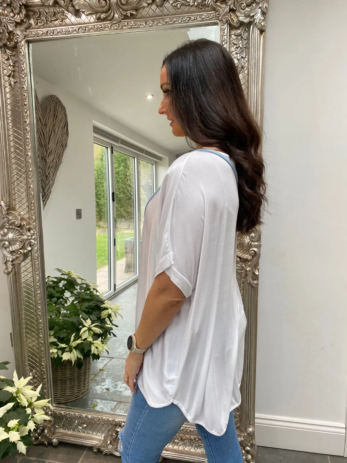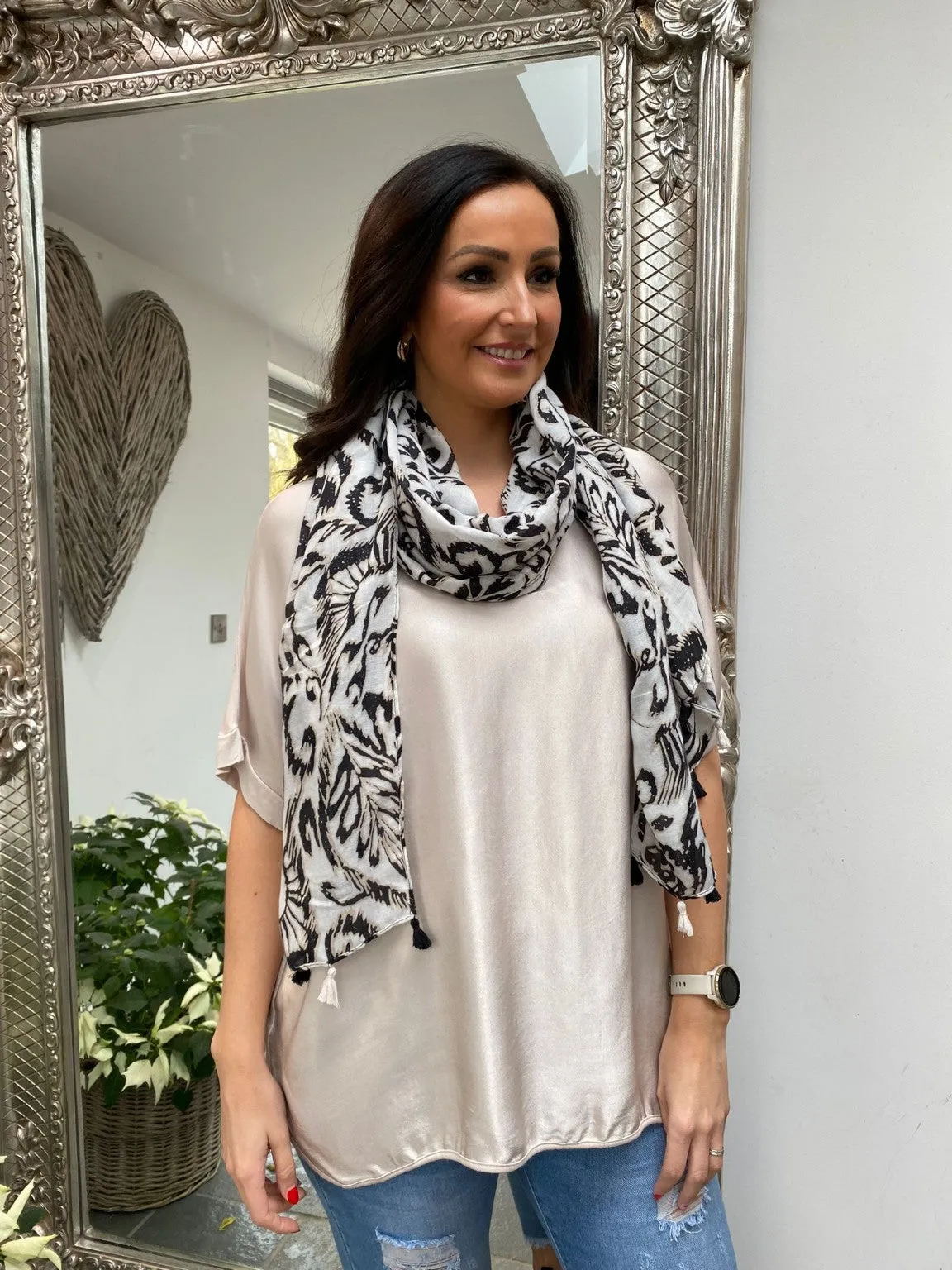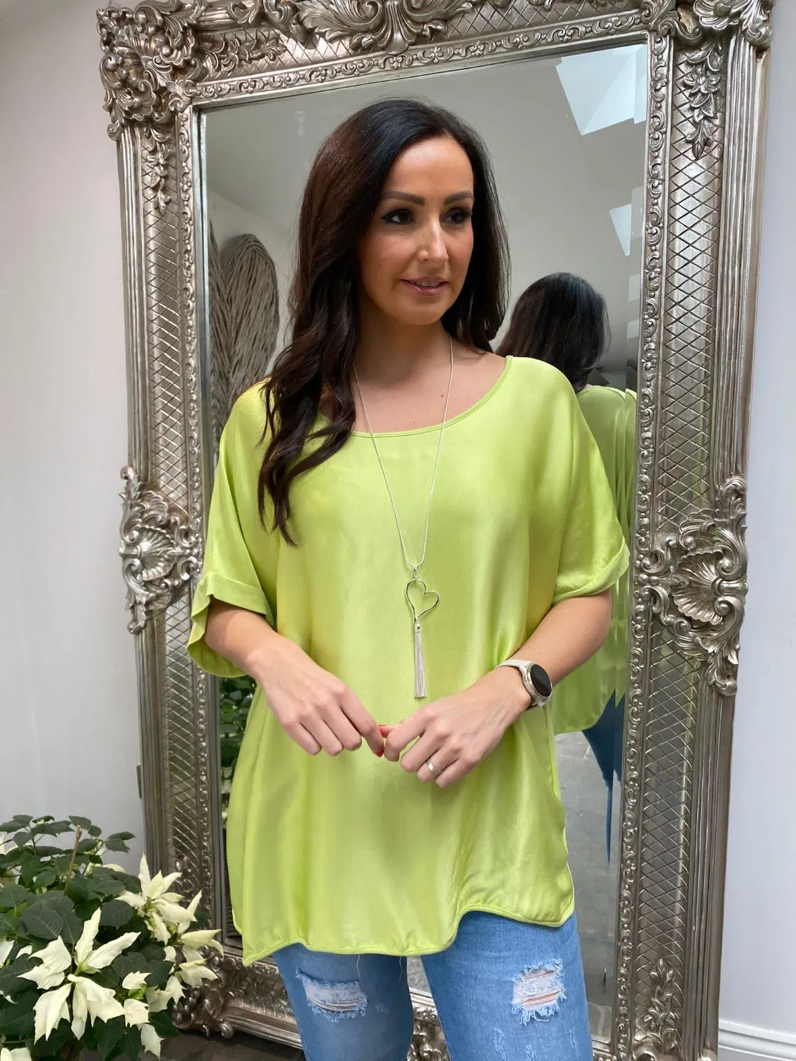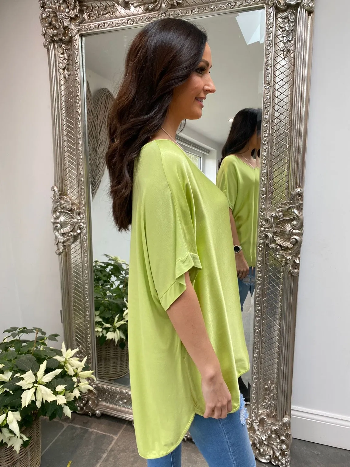 The Basic Short Sleeve Top Carrie is a lovely casual piece to add to your wardrobe. It features a shine on the material which gives an all round lovely finish. Team with jeans or leggings and your favourite shoes for any occasion.