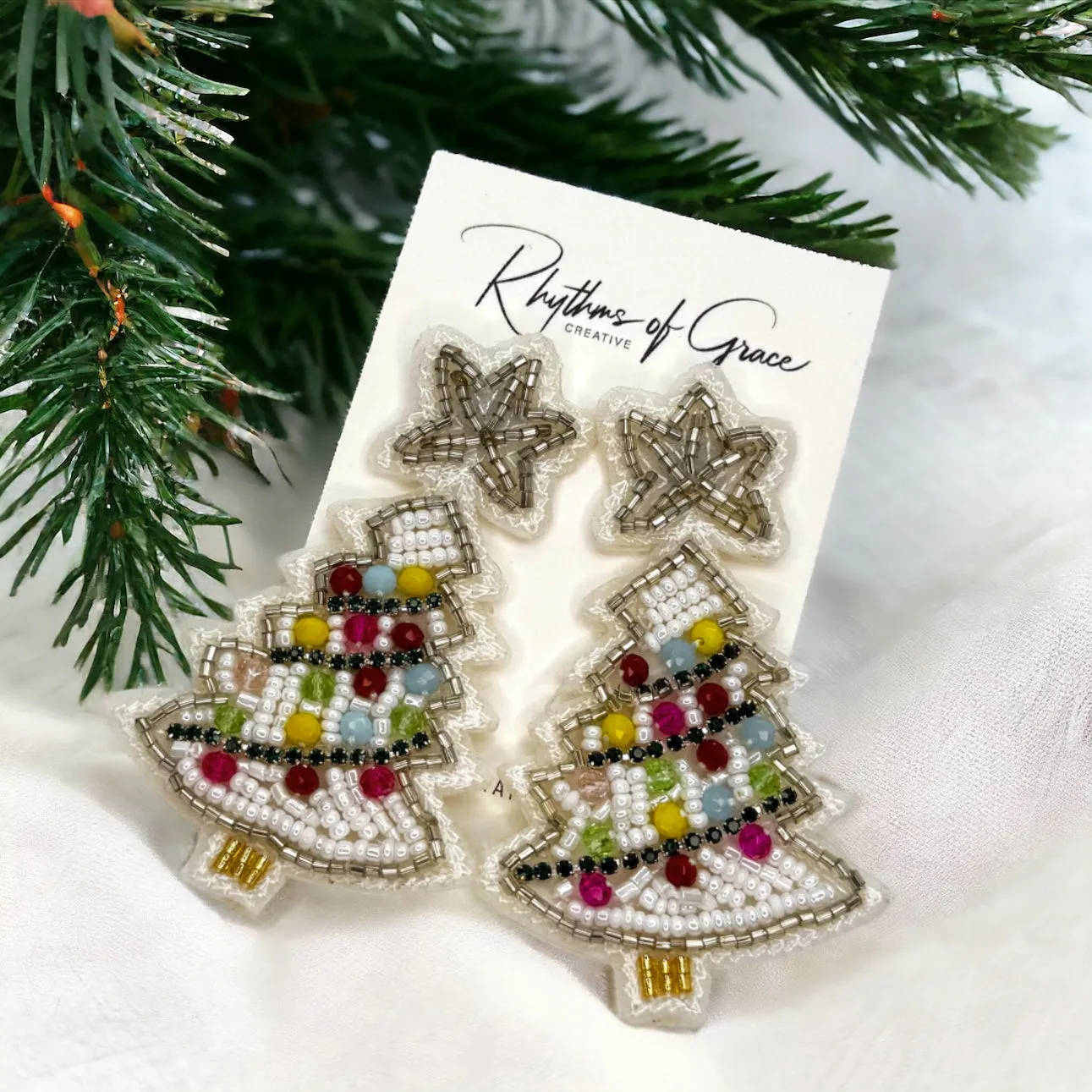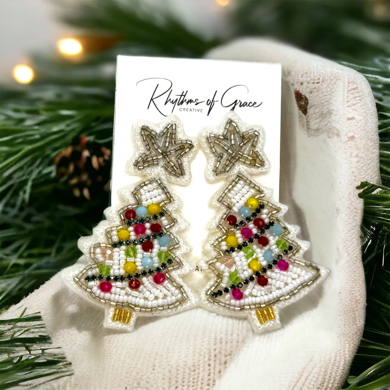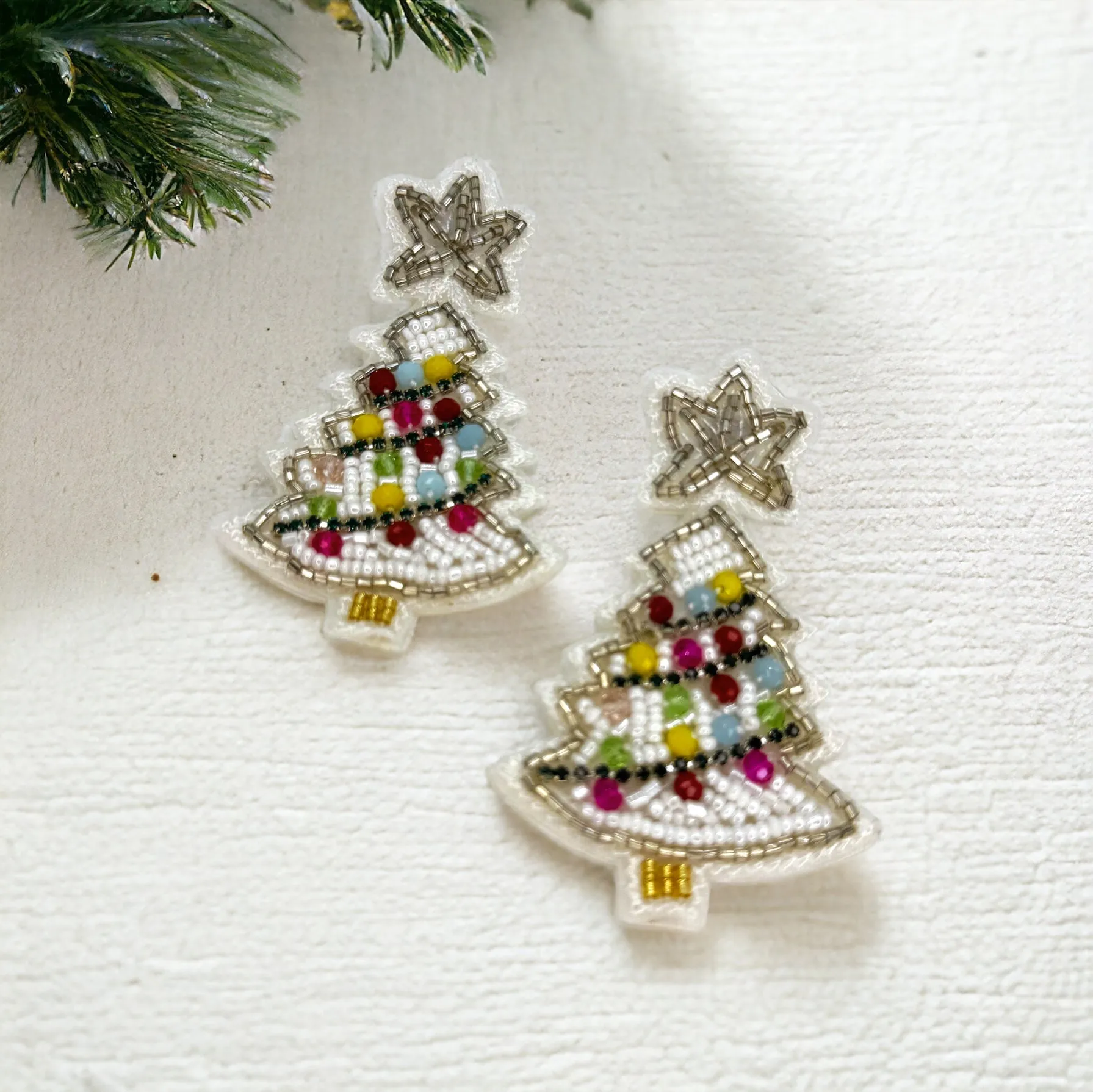 Add a touch of elegant charm to your holiday ensemble with these beaded white Christmas tree earrings. These enchanting earrings capture the timeless beauty of the season with their delicate design. Perfect for adding a touch of winter wonderland to any outfit, these earrings are a must-have accessory for the festive season. Embrace the magic of the holidays with these exquisite and festive earrings!