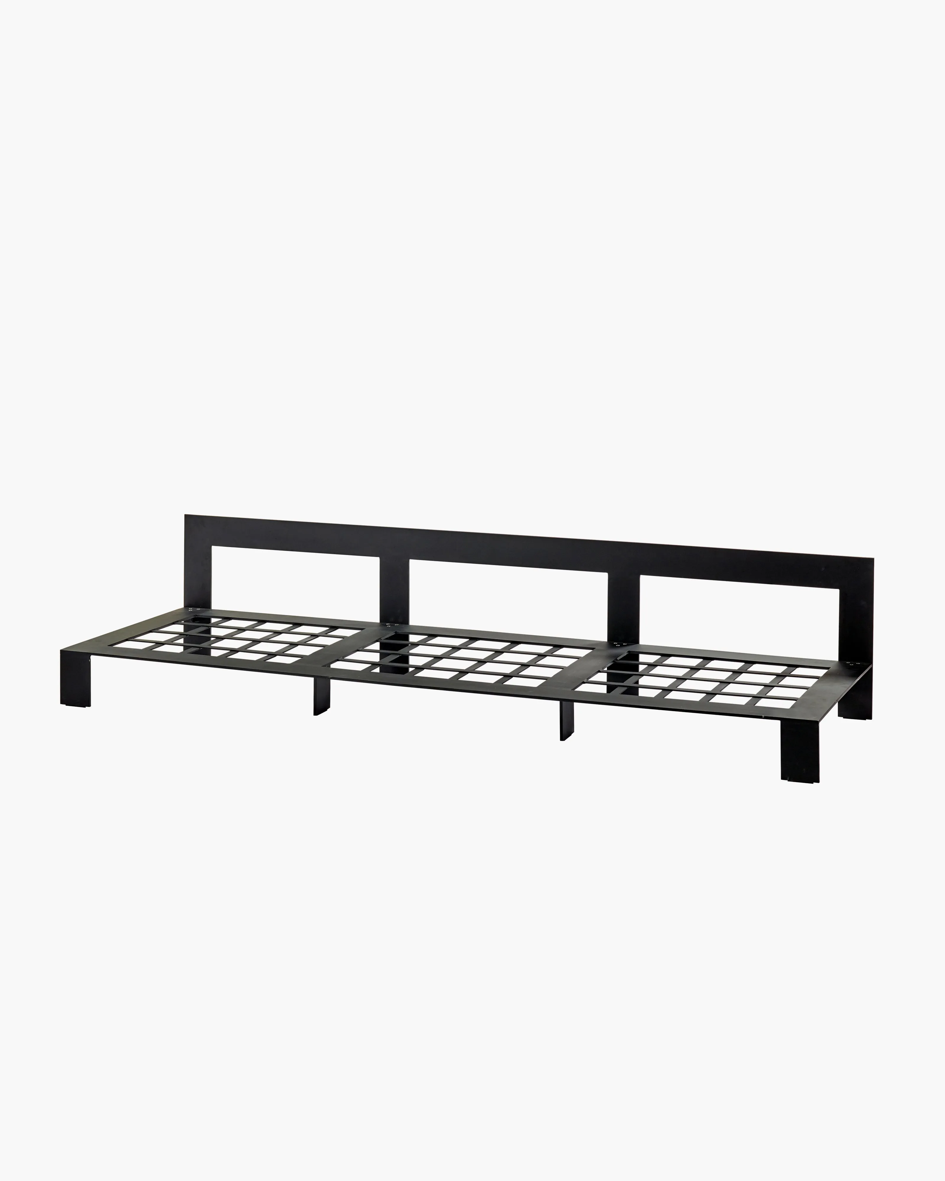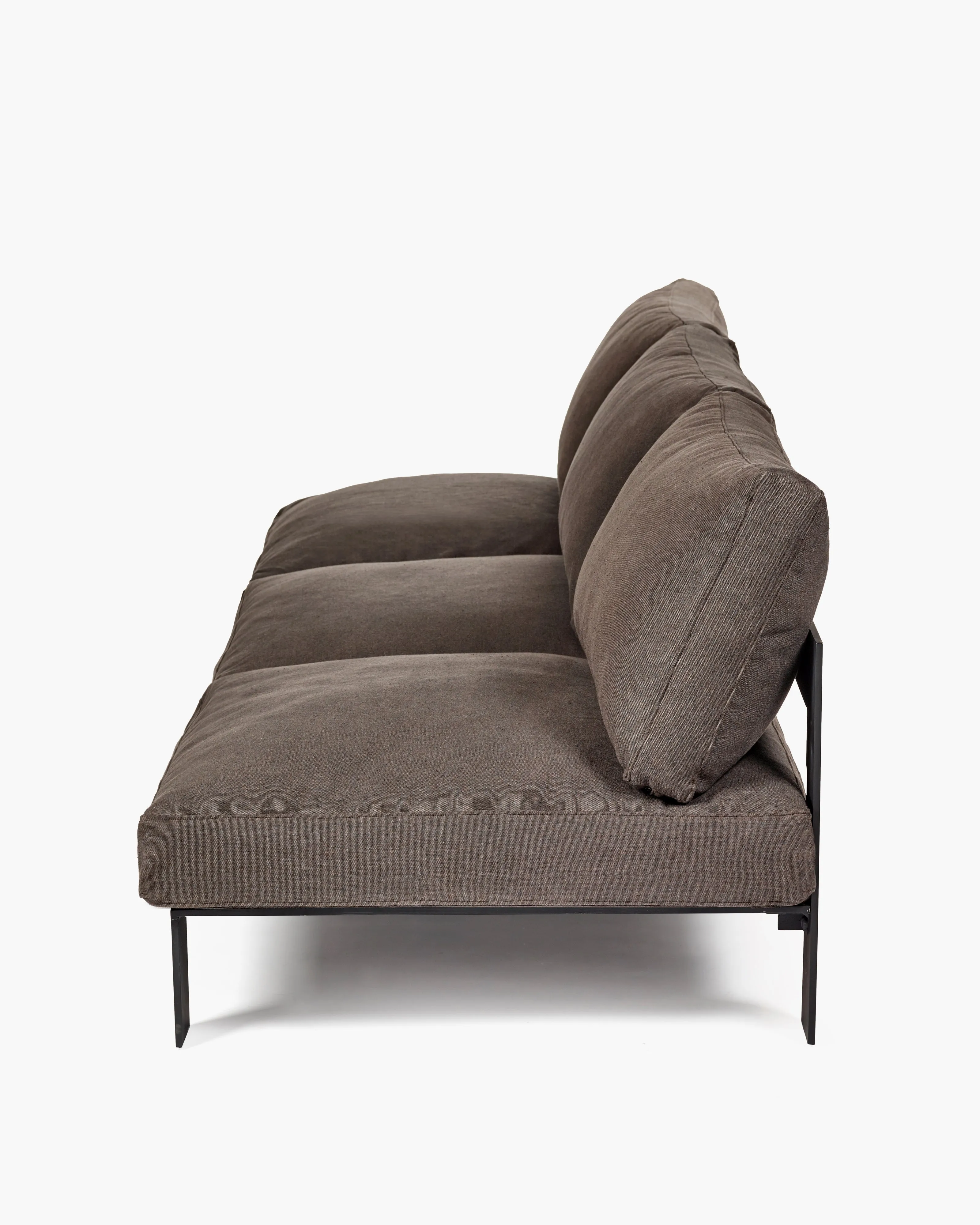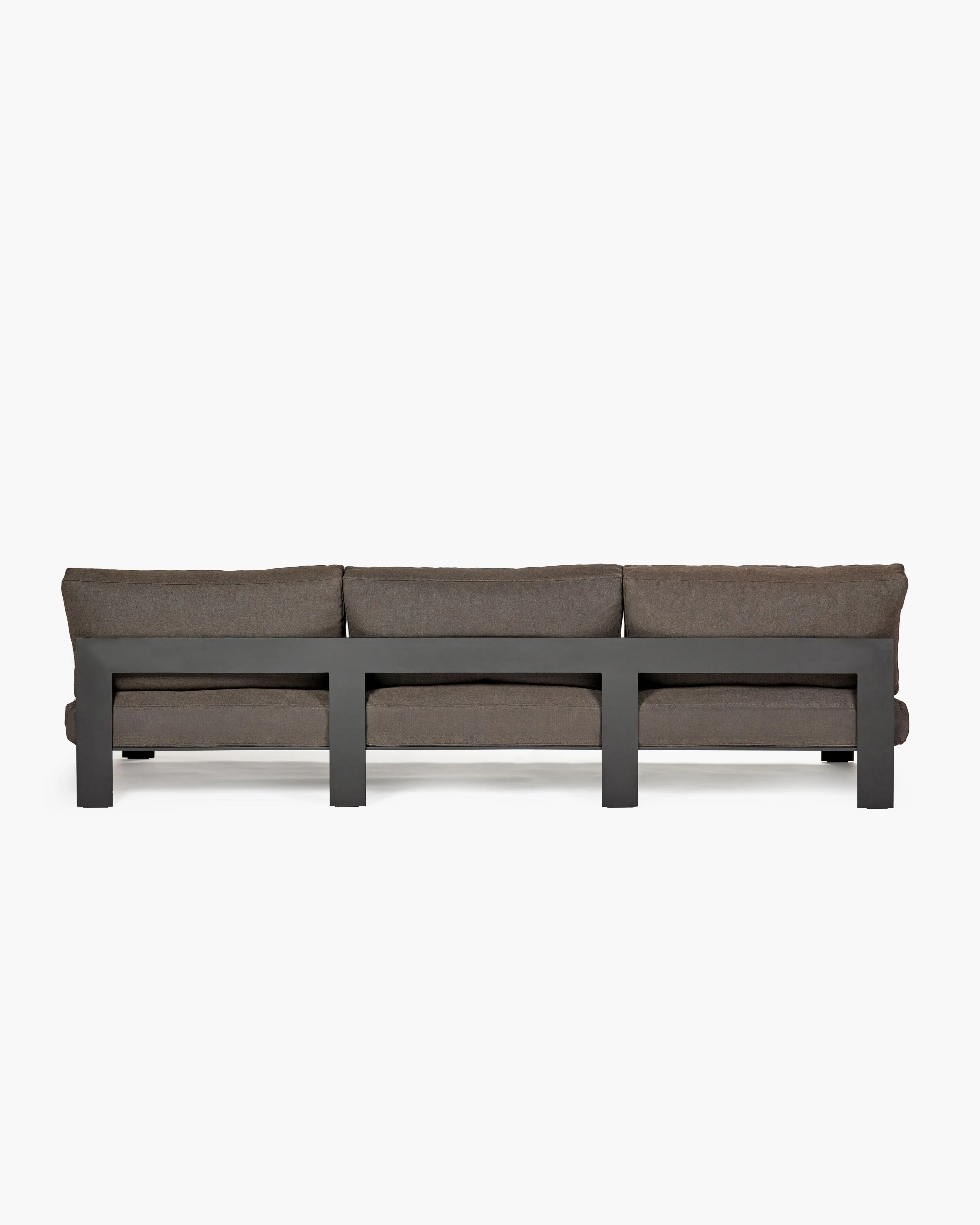 This outdoor three-seater is designed to look like a floating seating element. All Bea Mombaers outdoor sofa couches are produced in black aluminum and equipped with soft, neutral-colored cushions. The three-seater can be combined with the one- and two-seaters, as well as the corner sofa and the ottoman, for an organic and super comfortable sofa setup. Protective covers for outdoor furniture are also available and highly recommended for rainy days.