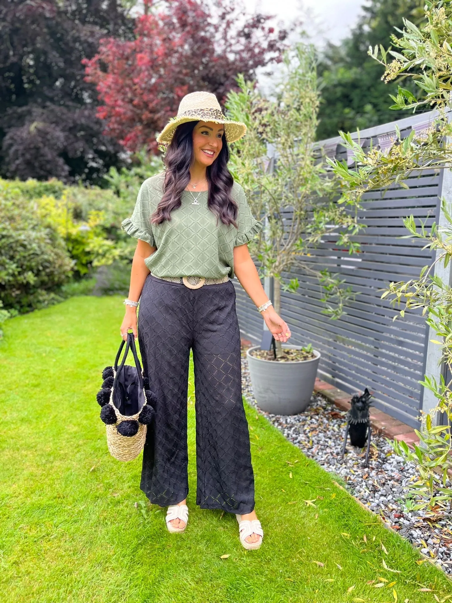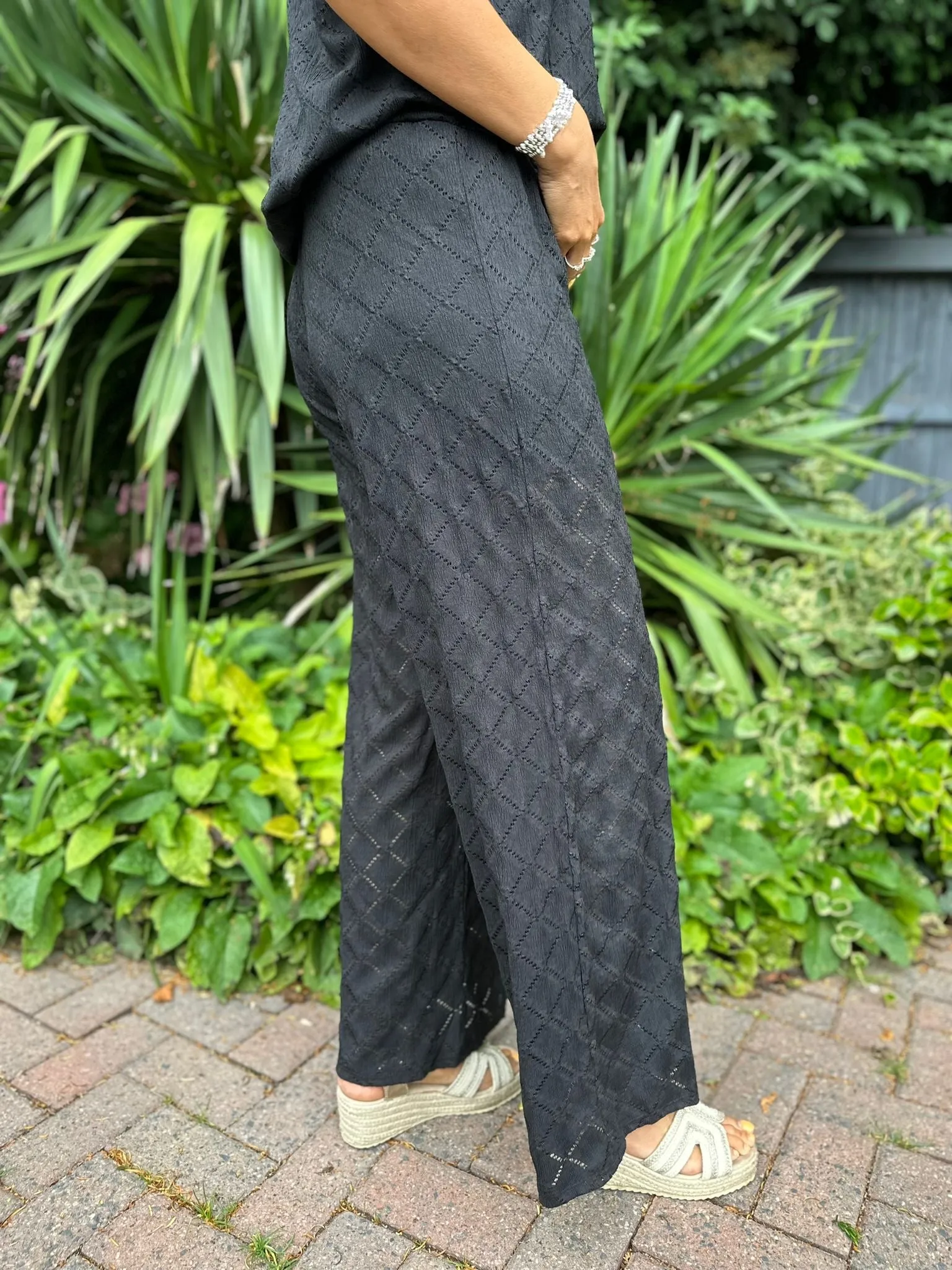 Expertly designed for summer, the Thalia Black Diamond Patterned Trousers are the ultimate lightweight and casual option. Crafted with precision and style, you'll stay comfortable and cool while looking effortlessly trendy. Perfect for any summer event, these trousers are a must-have addition to your wardrobe.