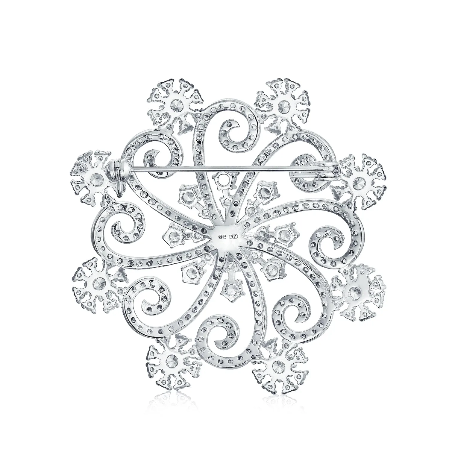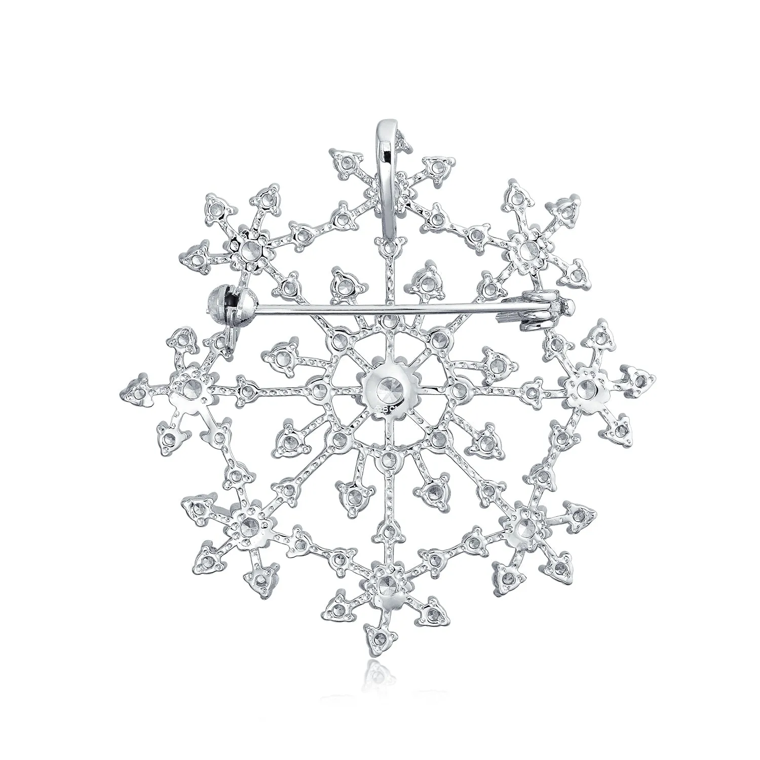 Blue Crystal or CZ Large Holiday Party Statement Snowflake Brooch Scarf Pin