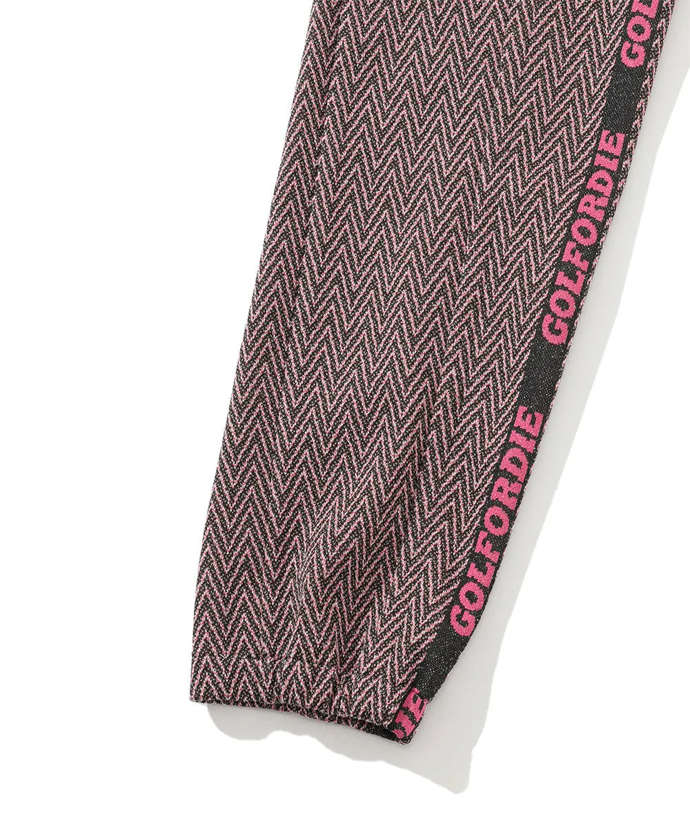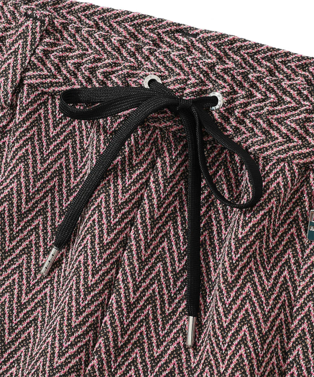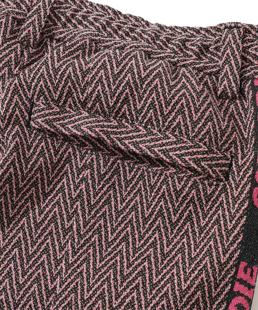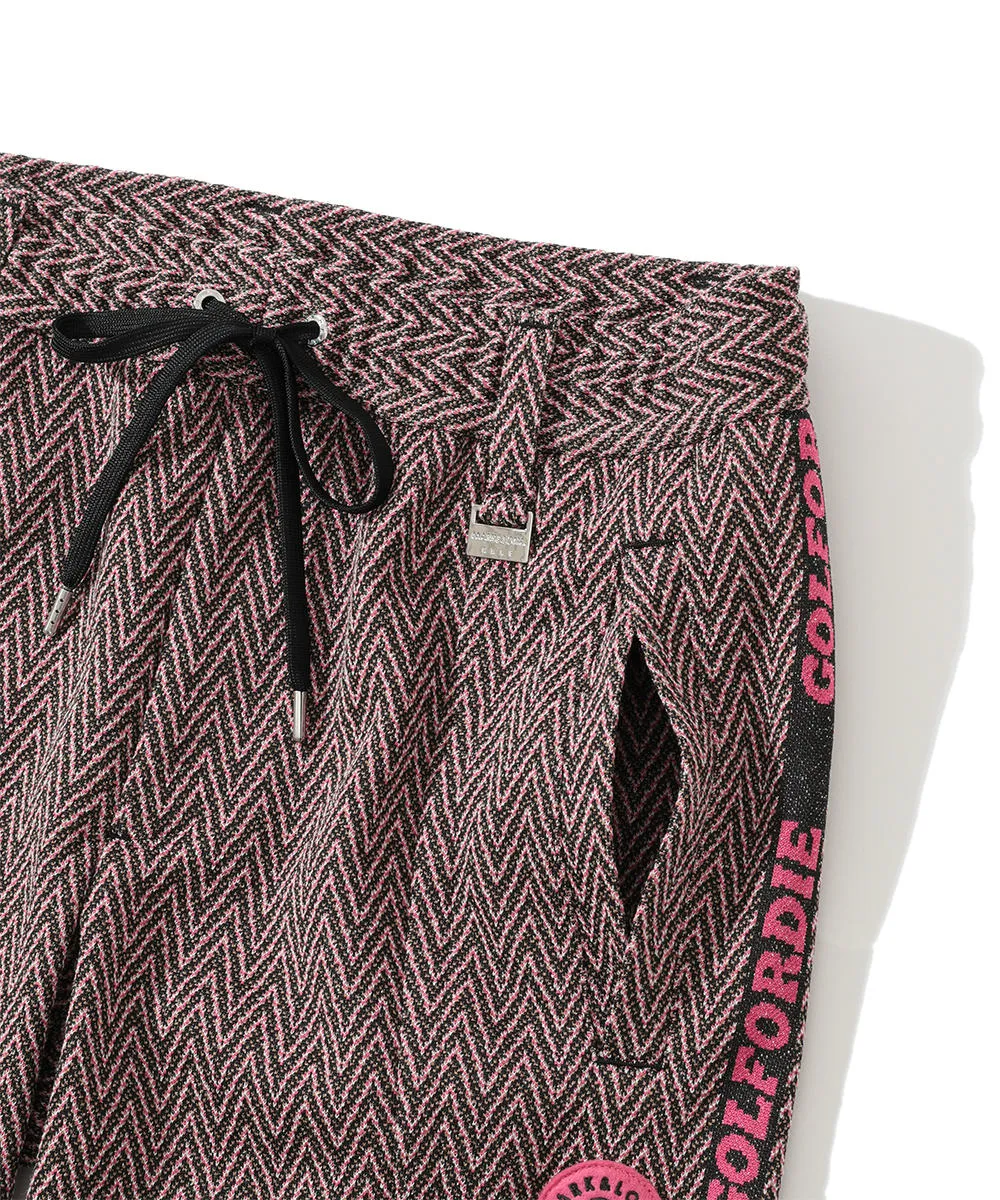 This dry-touch jersey material is made with a tweed-like herringbone pattern by daringly mixing ring yarns finished to an uneven thickness. It is characterized by its high stretchability, contrary to its classical look. The fabric is designed so that the neon color logo comes to the sides. The waist is circled with flat elastic, allowing you to concentrate on your play with a non-stressful fit while maintaining a sense of hold.