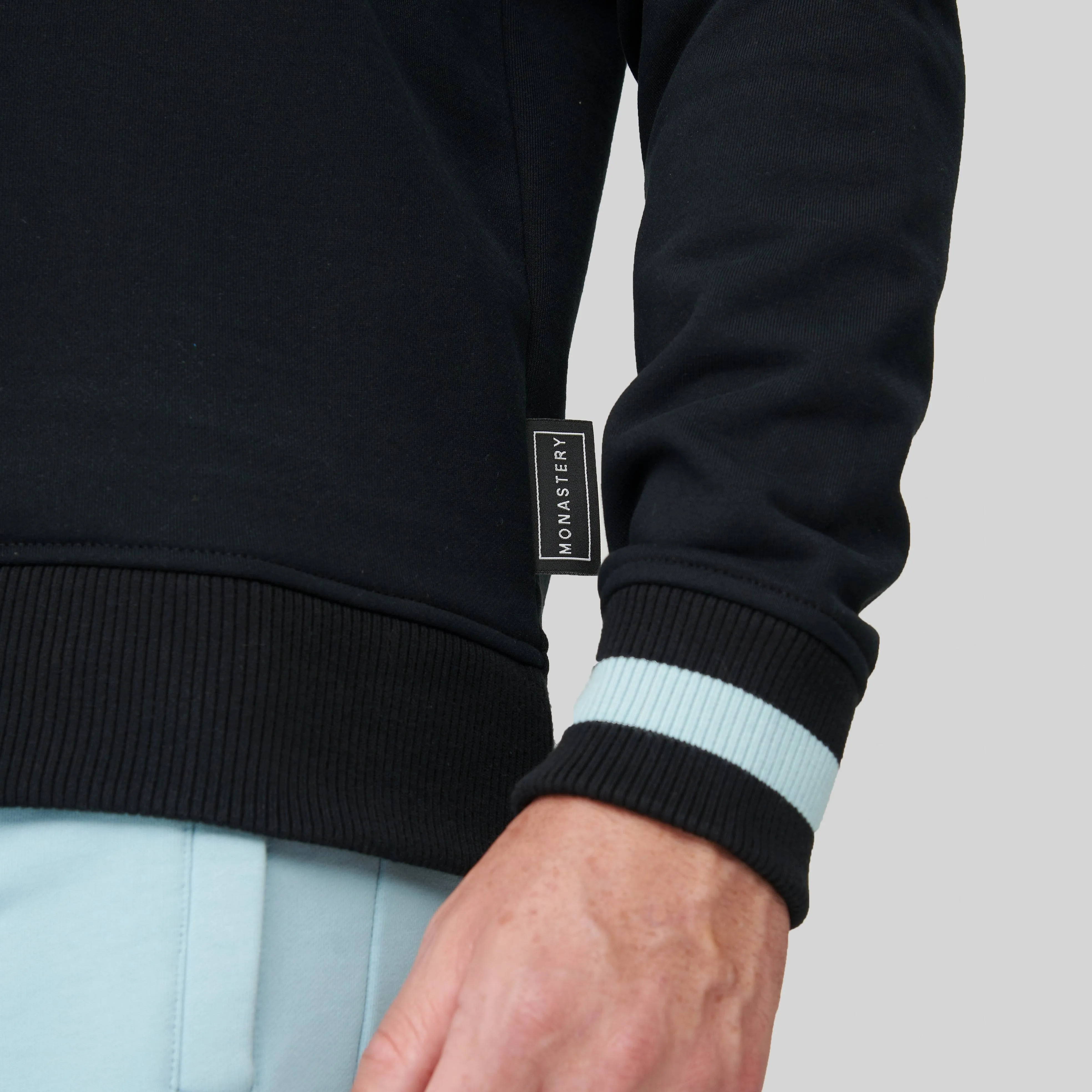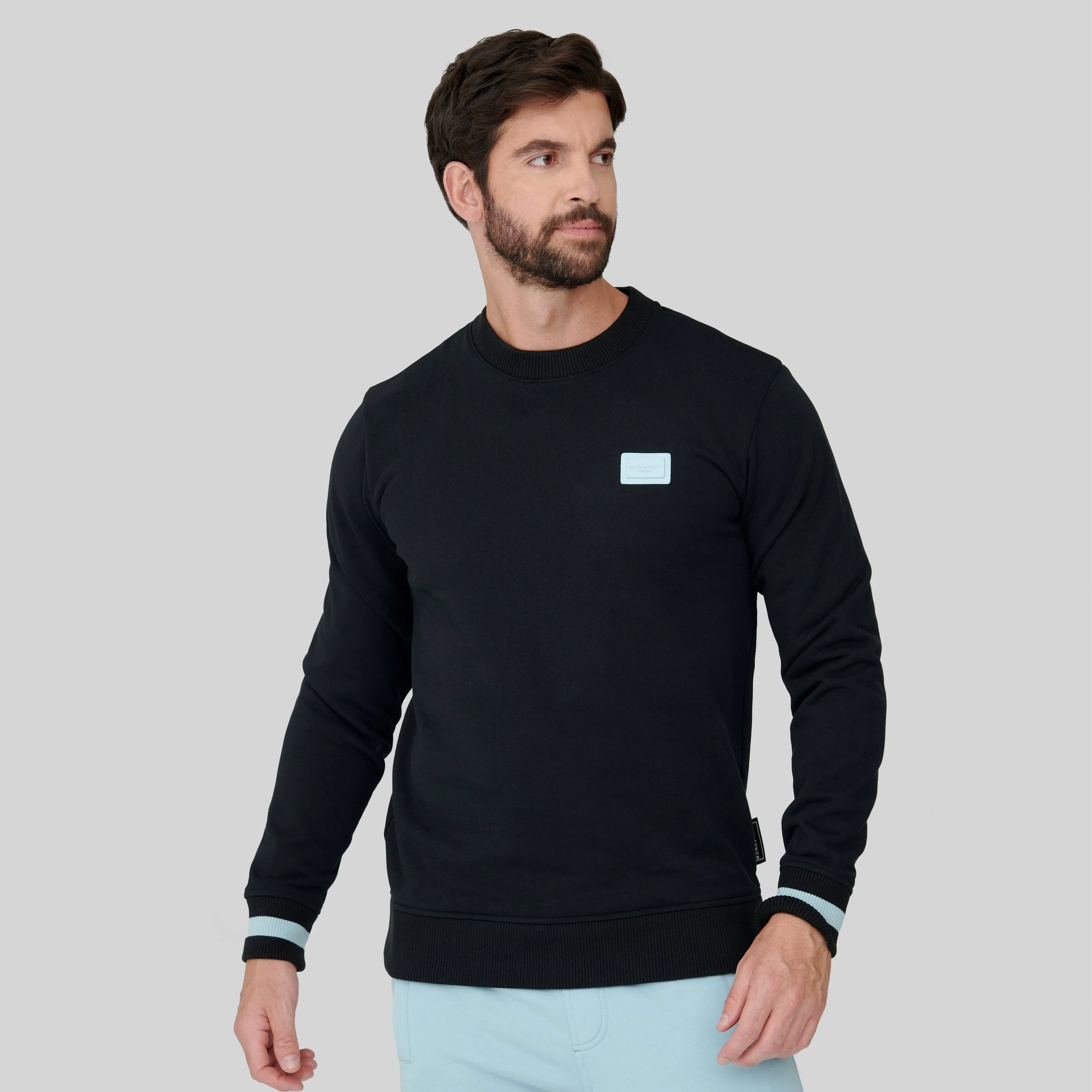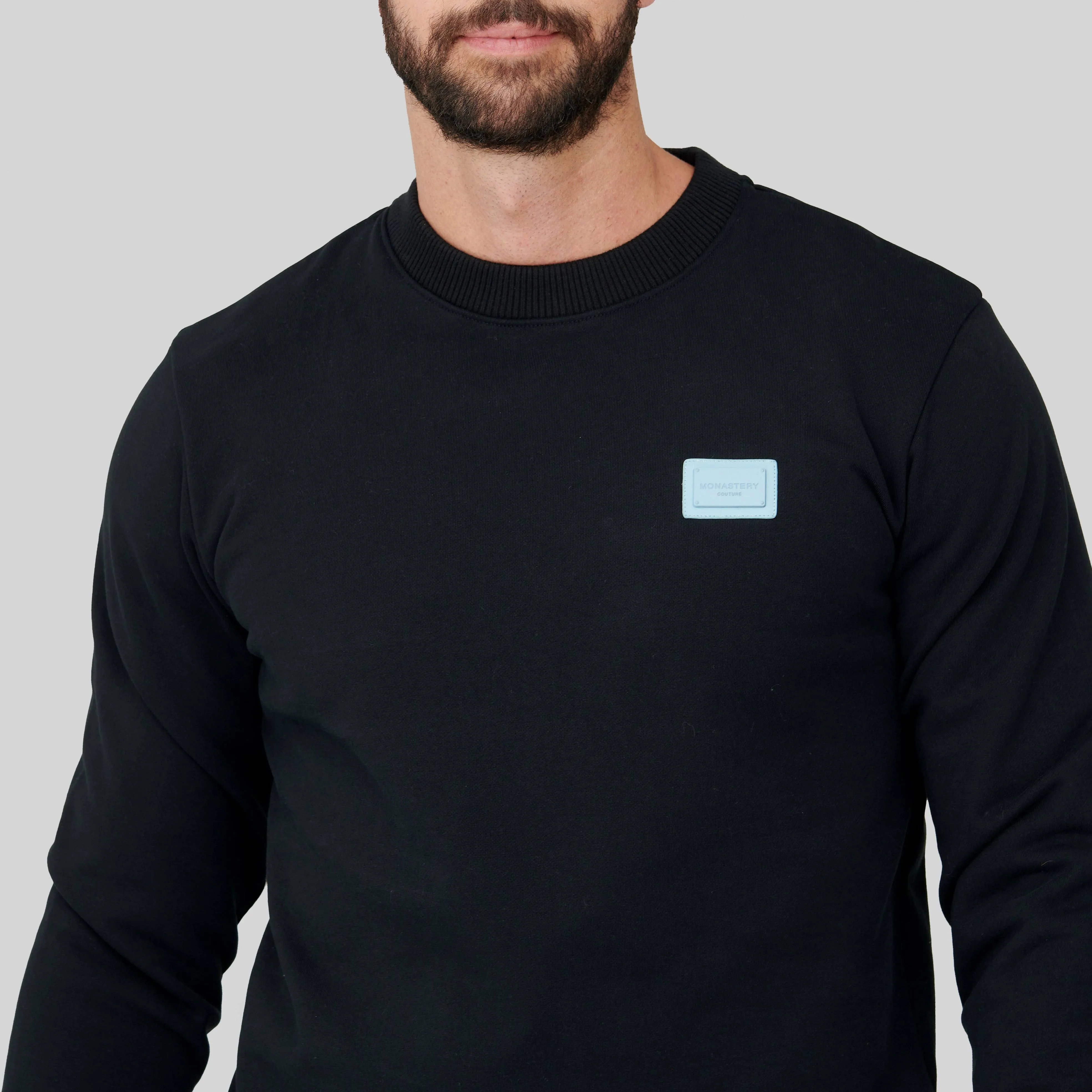 Our Sweatshirt Calcis, features a soft touch metal plate on leather in contrast in heart point, and fists with line in contrast. The textile base is made up of 100% by Peruvian cotton, in addition, it is made in a regular silhouette that enhances the male figure.
