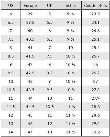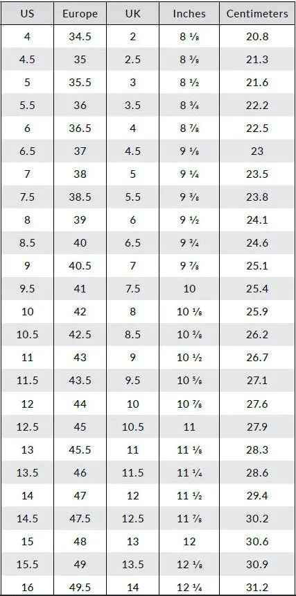 *** All shoes should be fitted in-store. Sizes vary between brands and styles.