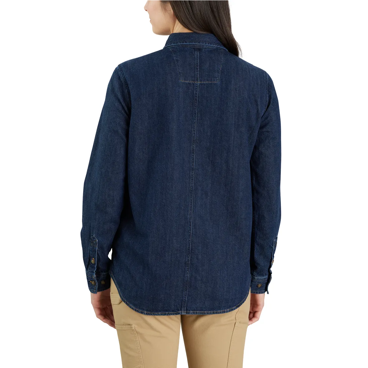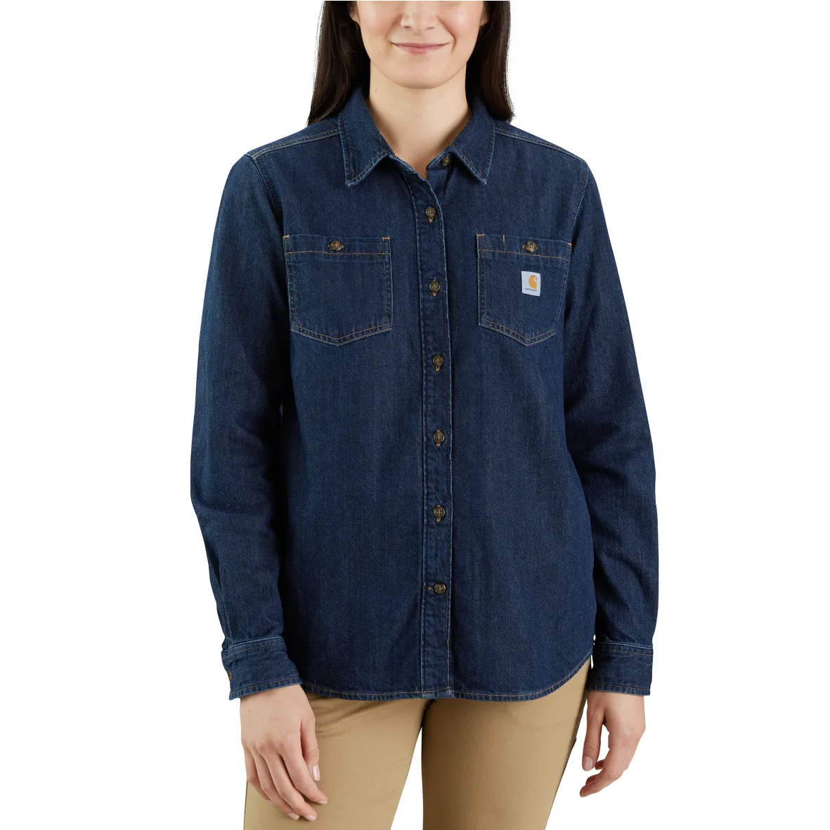 Wear this women′s denim shirt to work or save it for the weekend. Either way, the soft midweight cotton denim is comfortable as well as durable. It has a relaxed fit so you can layer it over a t-shirt when the sun goes down for little bit of extra warmth.