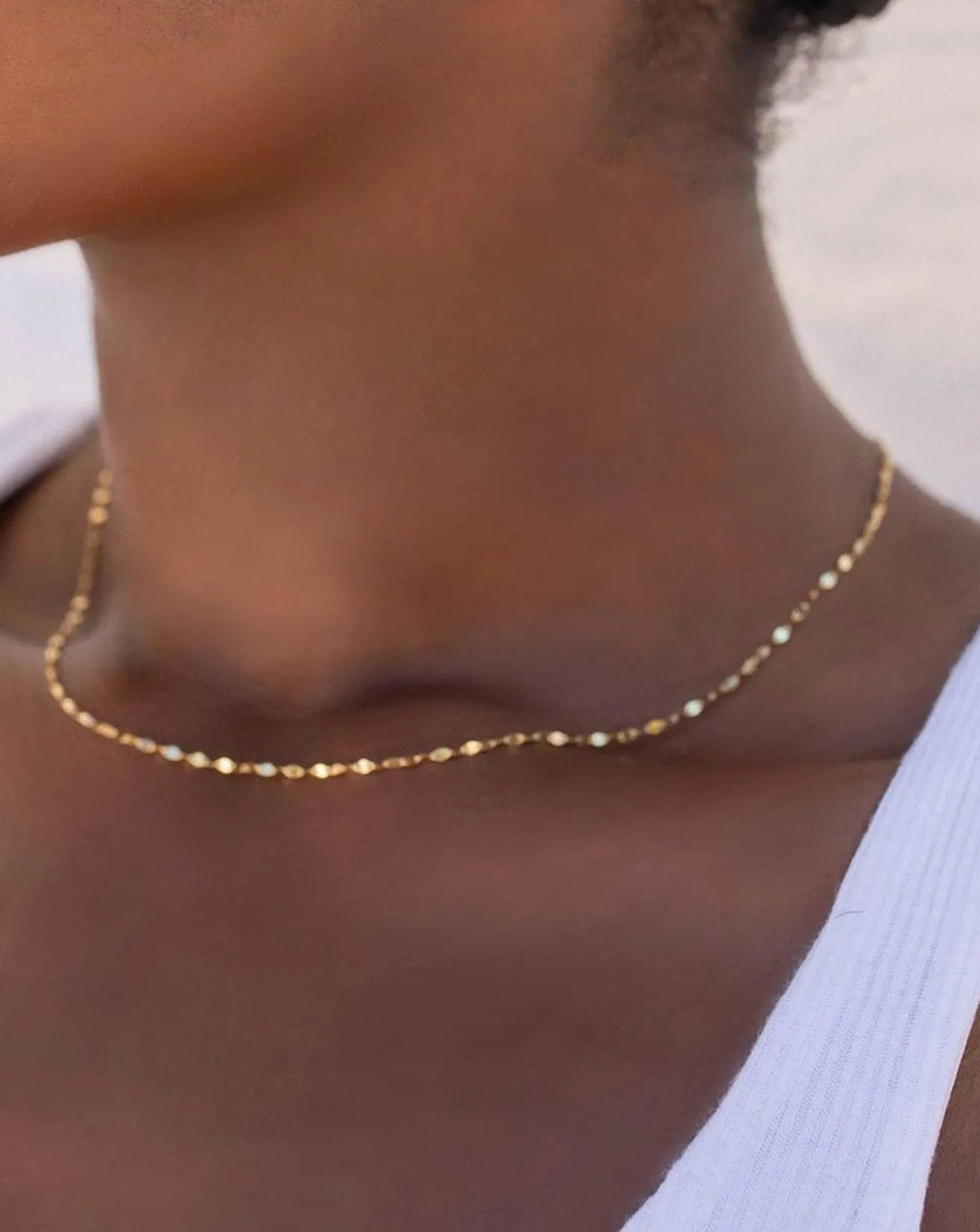 Let your inner beauty sparkle on the outside with this stunning Cecilia Sparkle Chain. Crafted from stainless steel, and plated with 18K gold, this beautiful chain is going to leave a mesmerizing impact on everyone. Pair it with any subtle earring set and any dress, and be certain to turn the heads around. If you have been looking for a showstopper accessory, then this is it. Order now, and make it a part of your jewelry collection.
