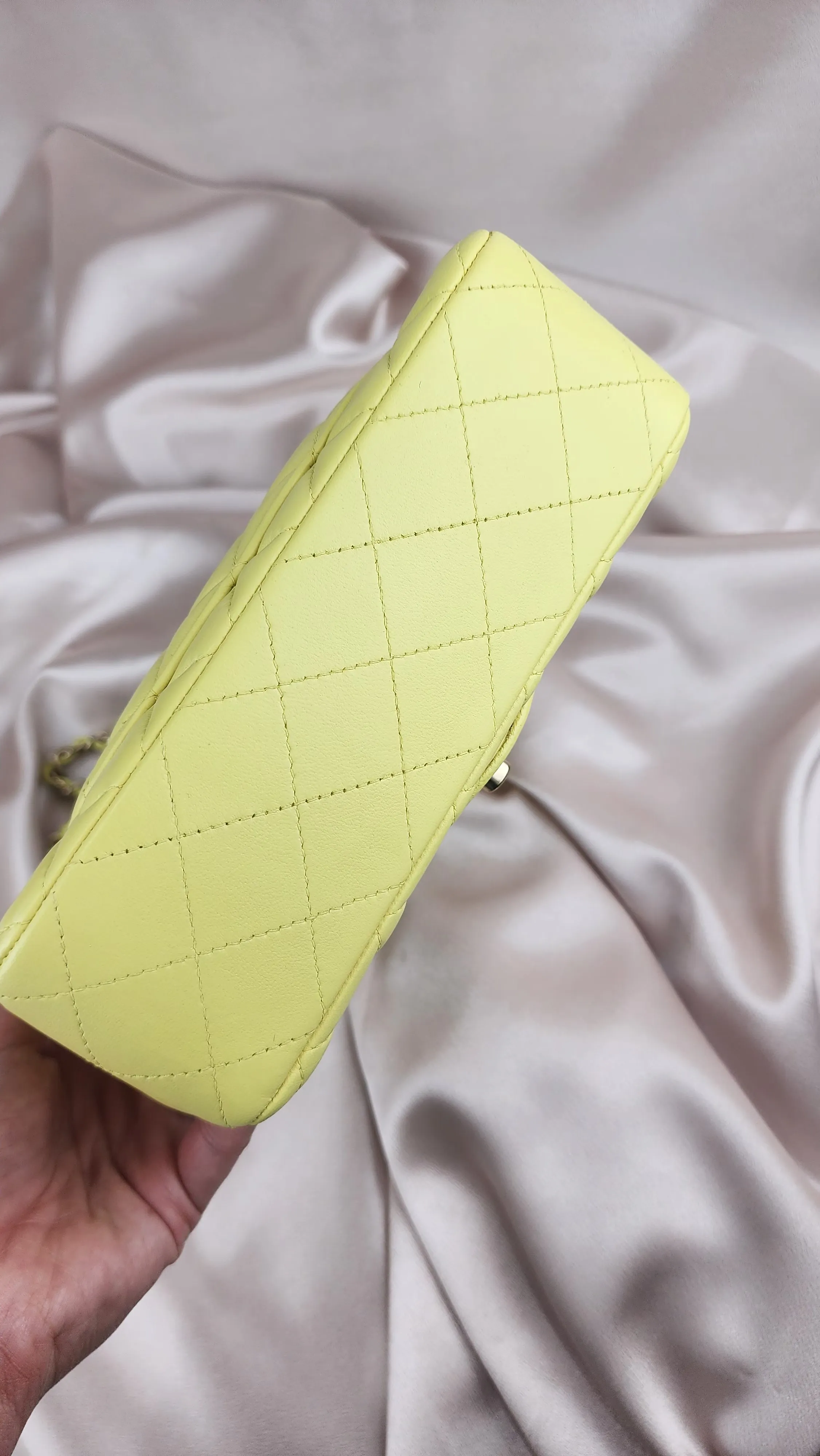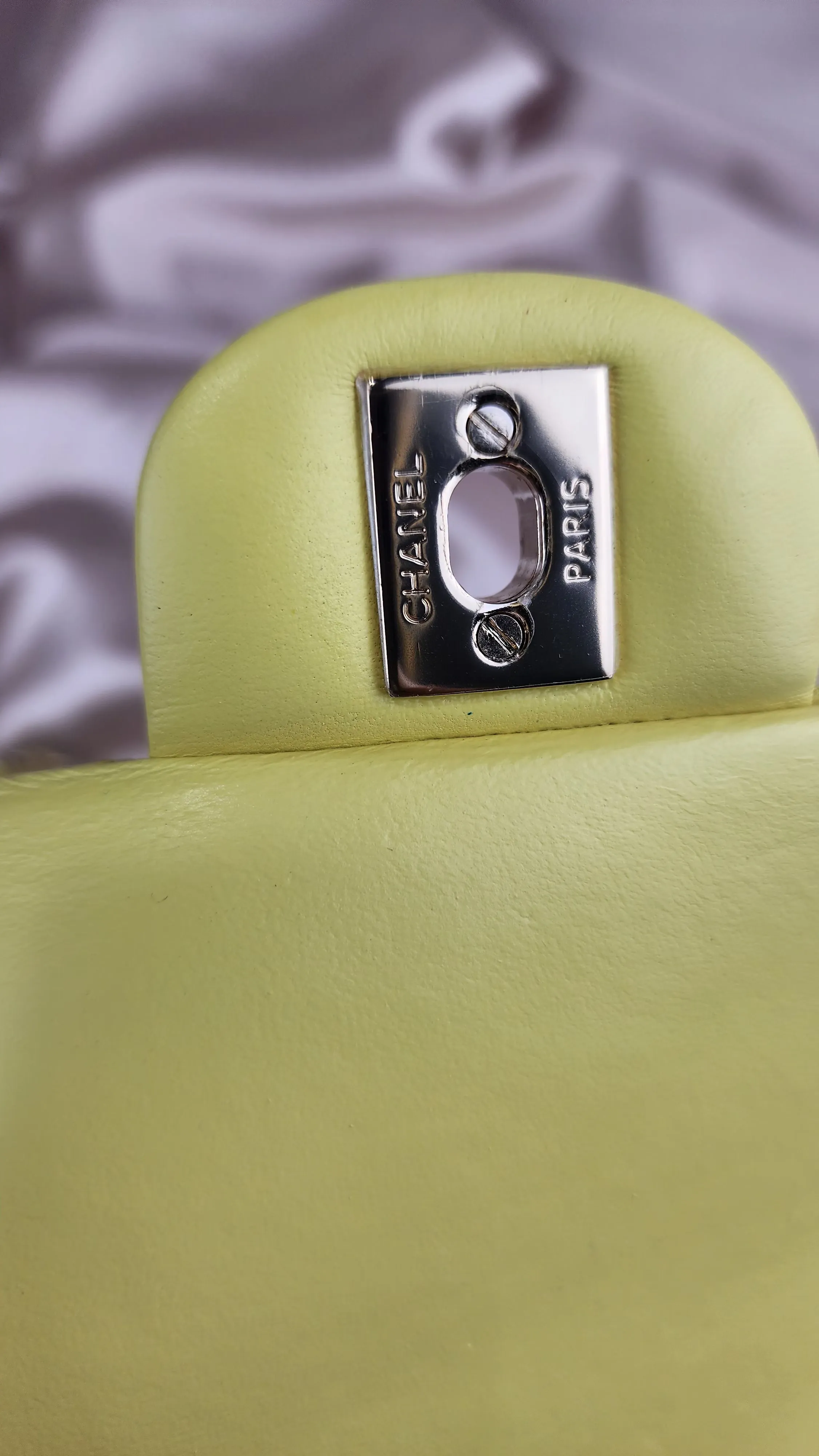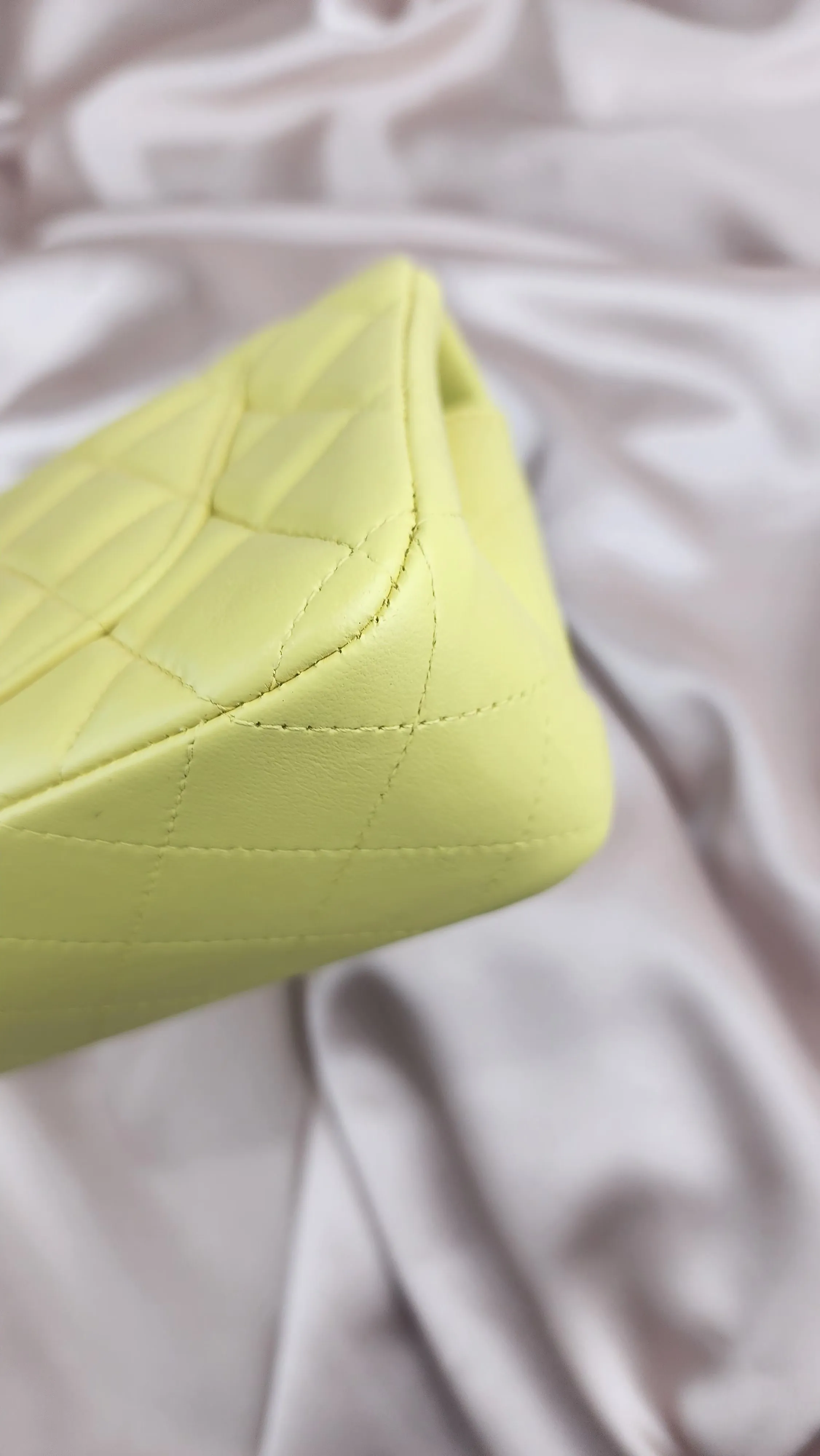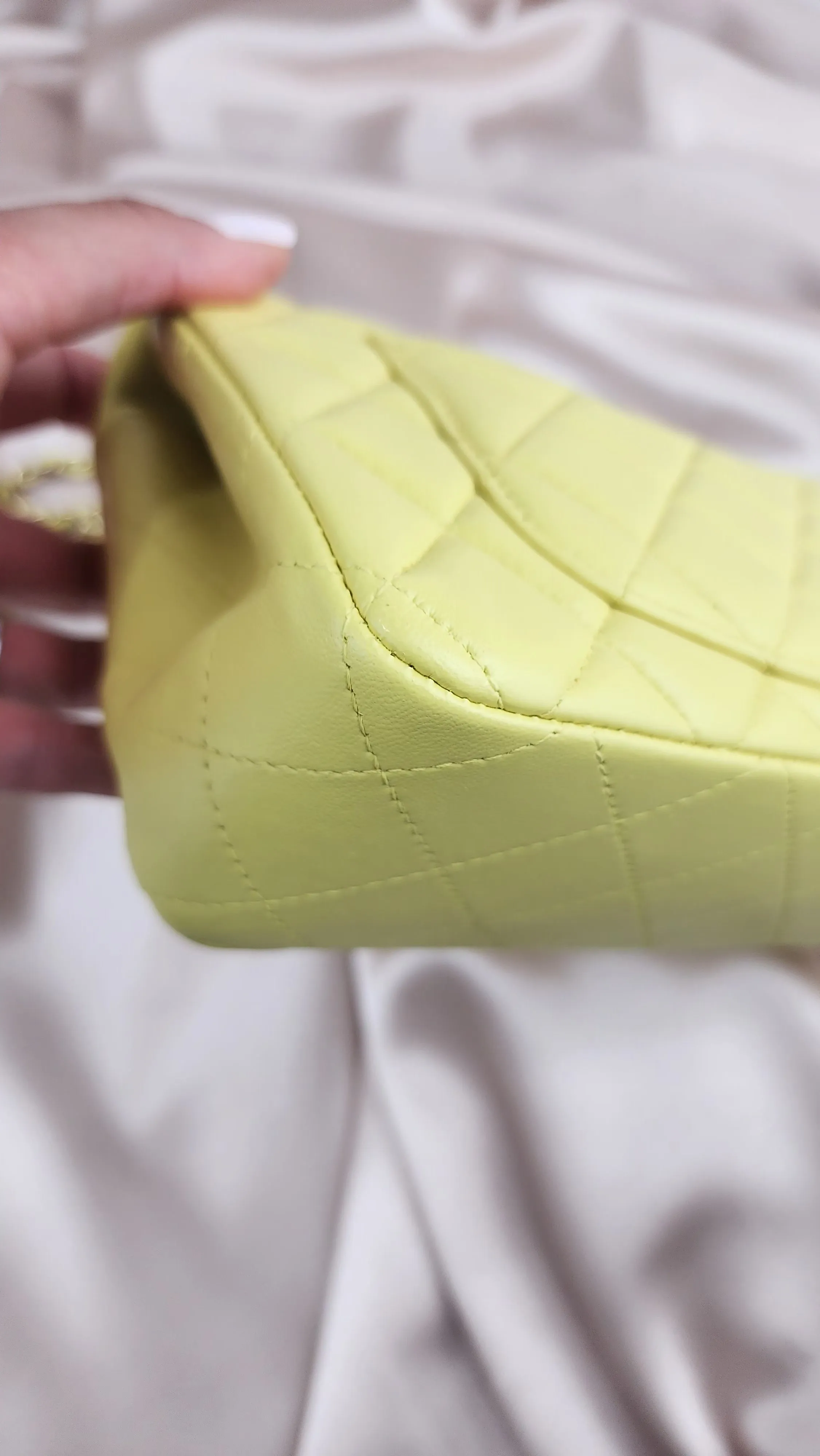 CHANEL Yellow Matelasse 20 Turn Lock Chain Bag Lamb Skin