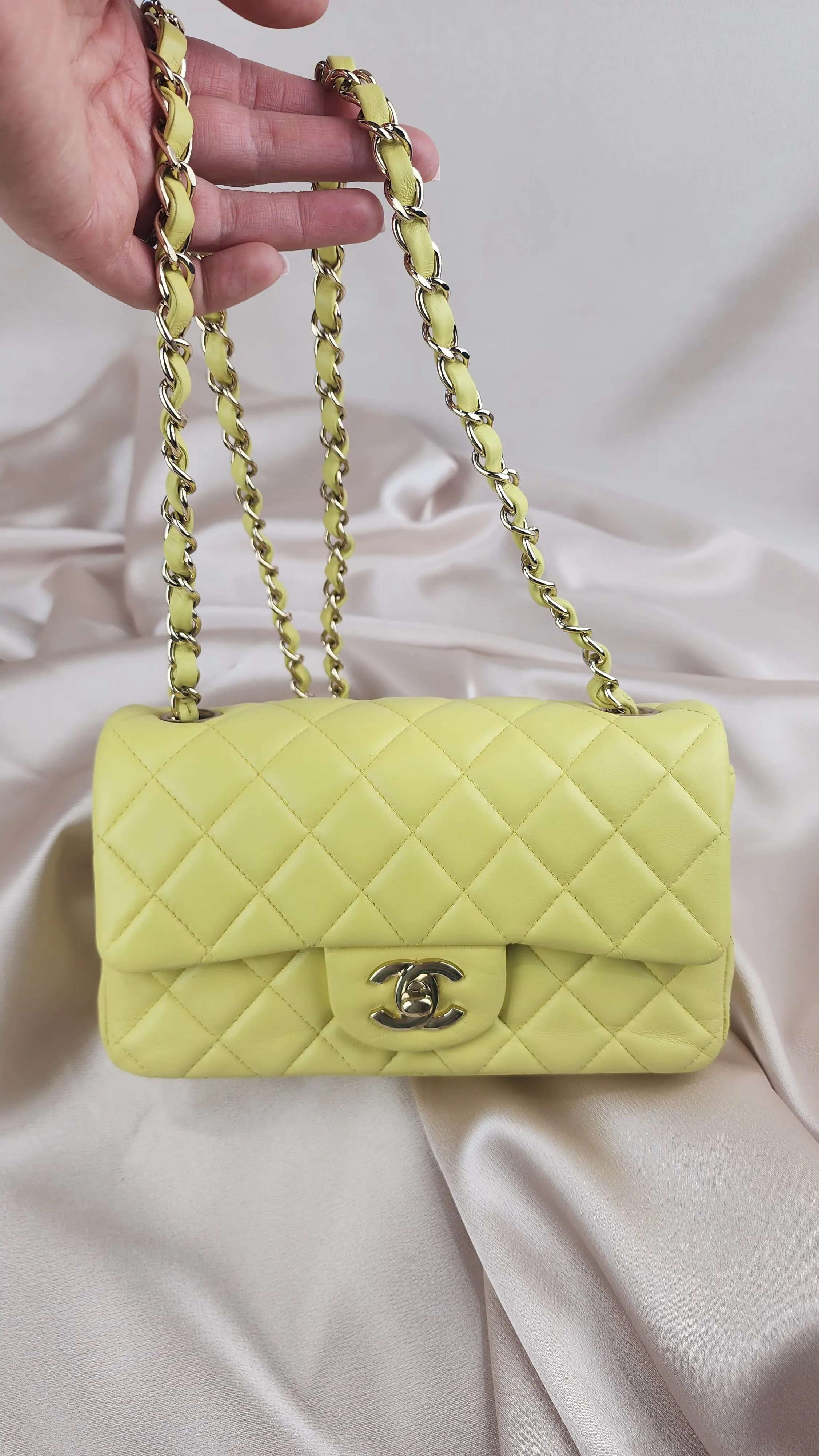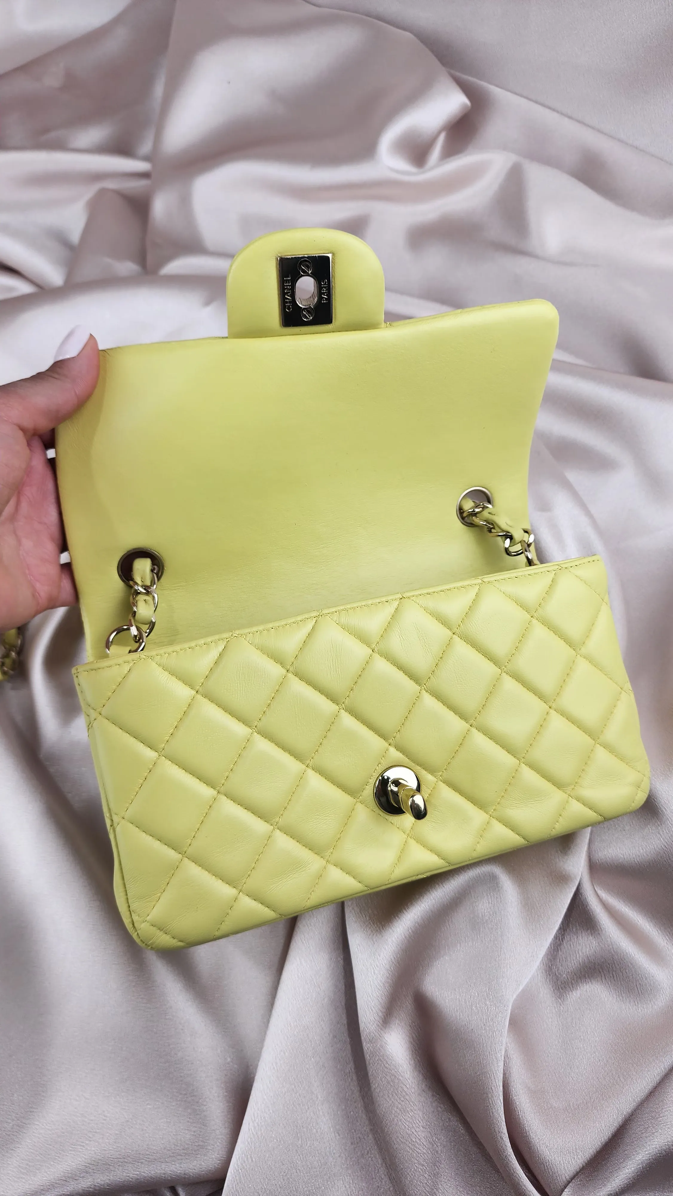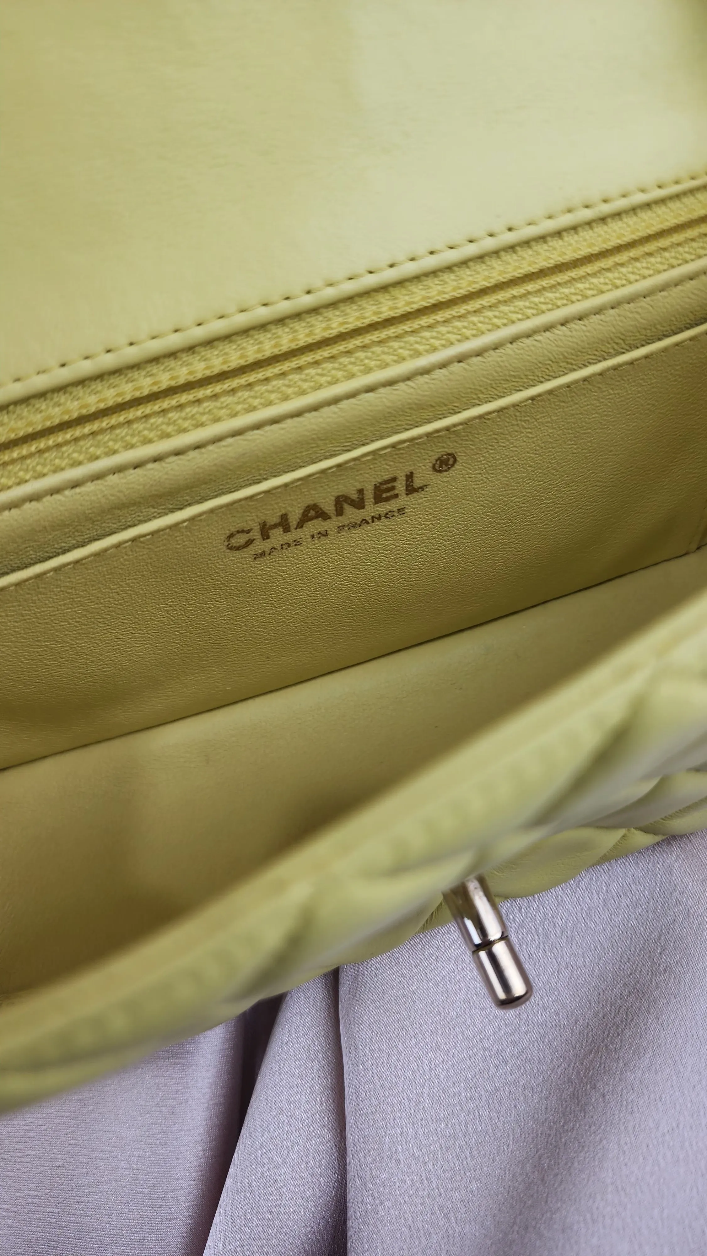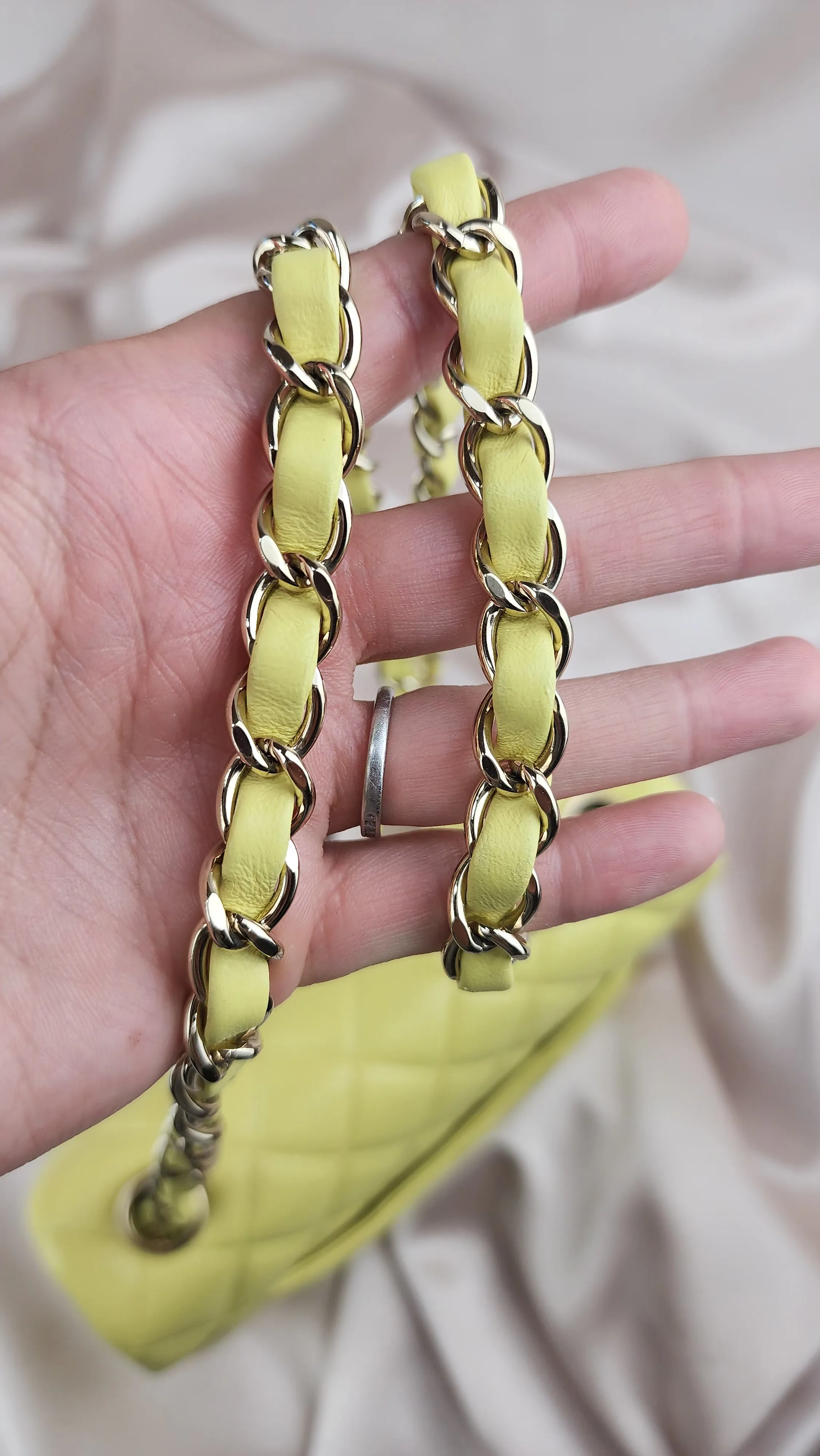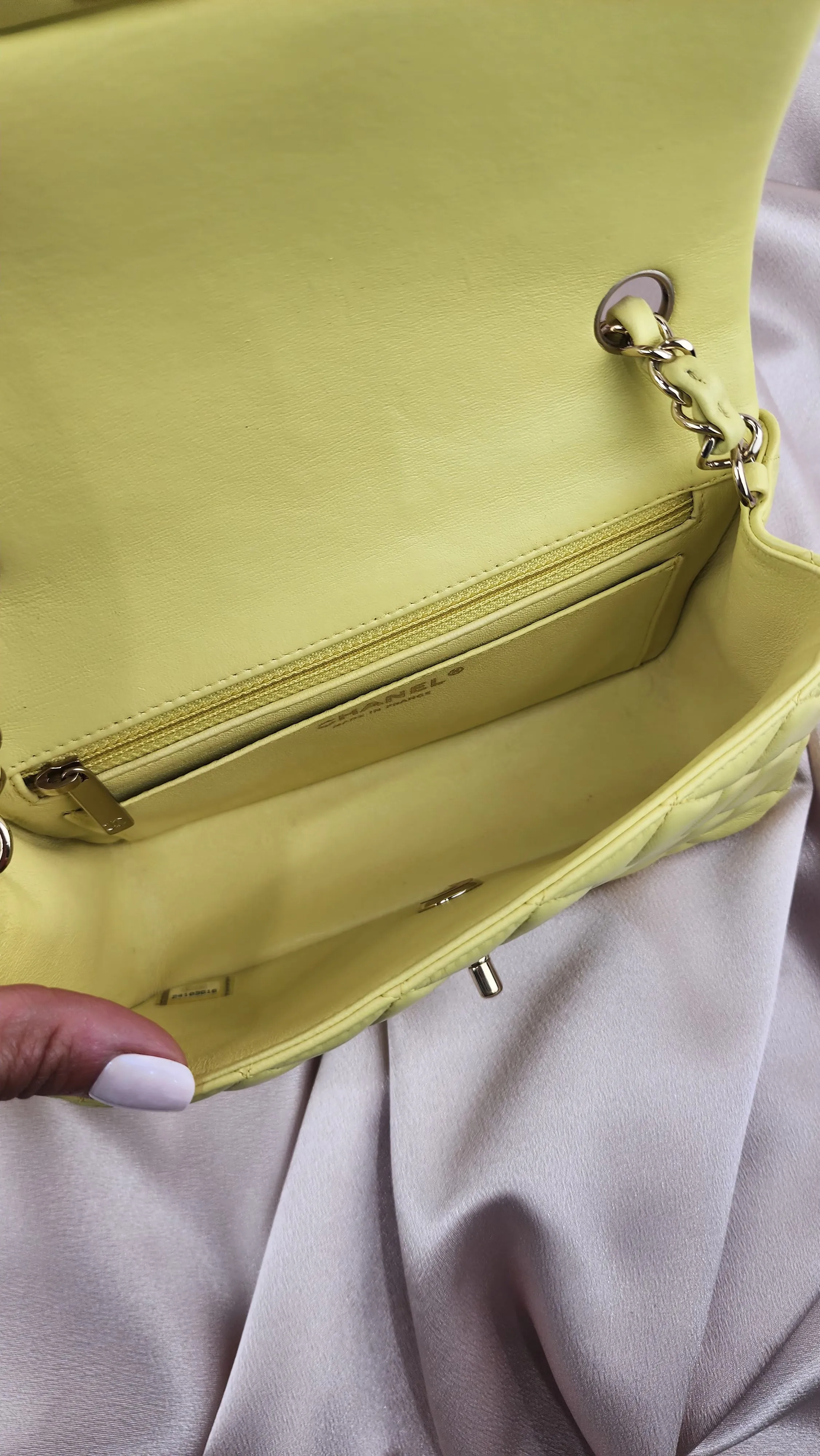 CHANEL Yellow Matelasse 20 Turn Lock Chain Bag Lamb Skin
