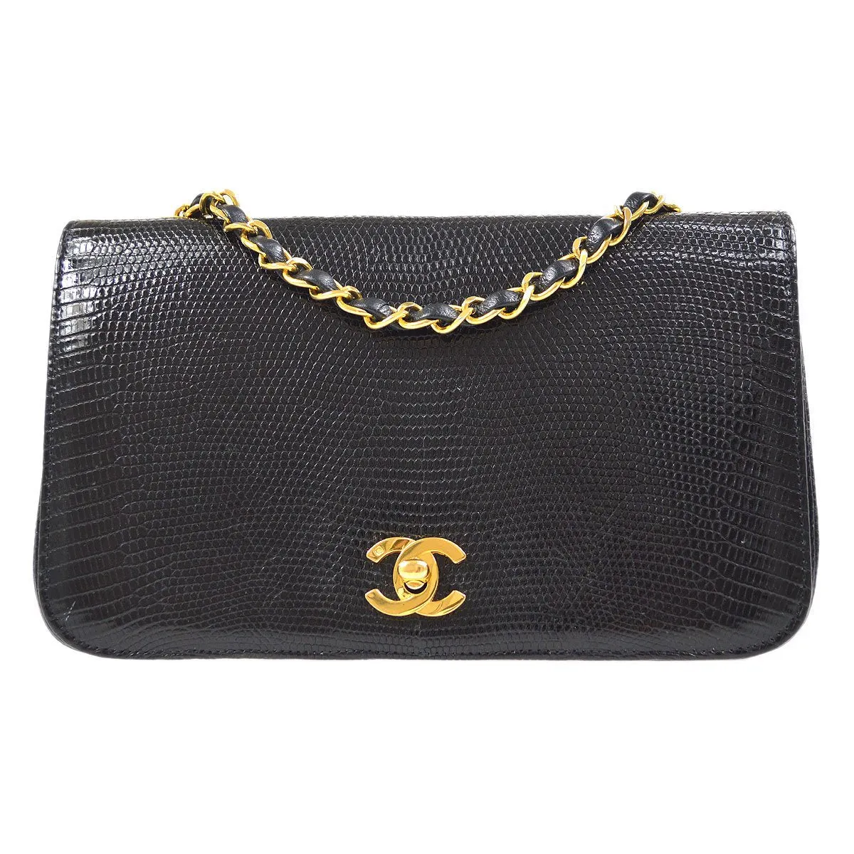 | CHANEL Full Flap Chain Shoulder Bag Black Lizard | |