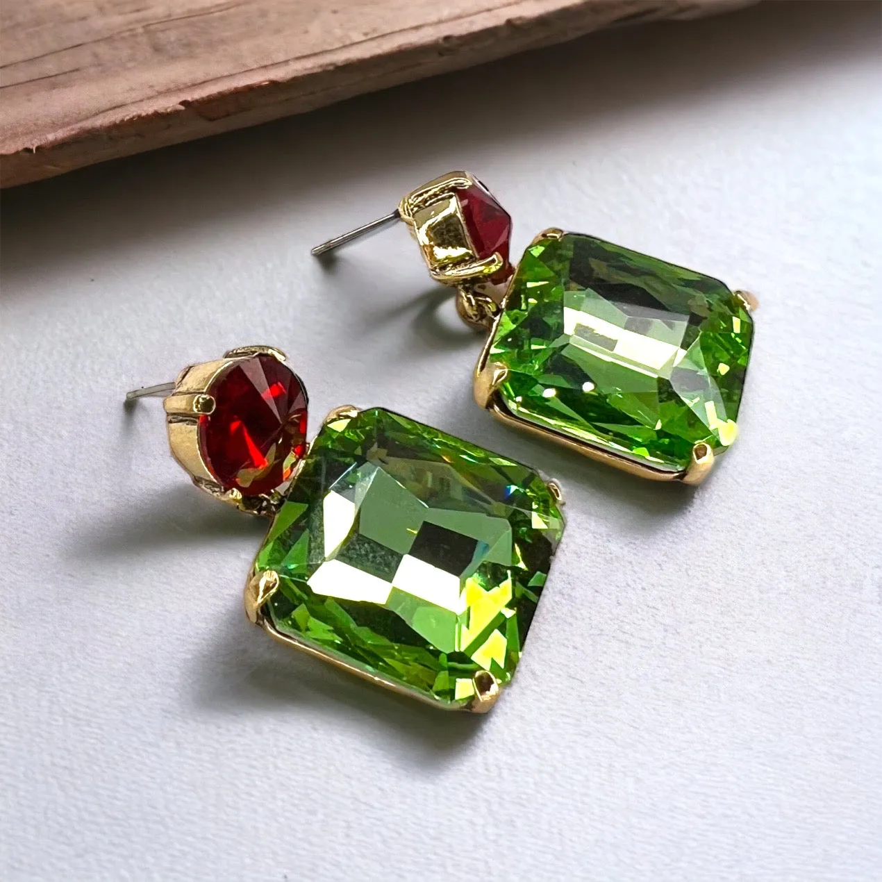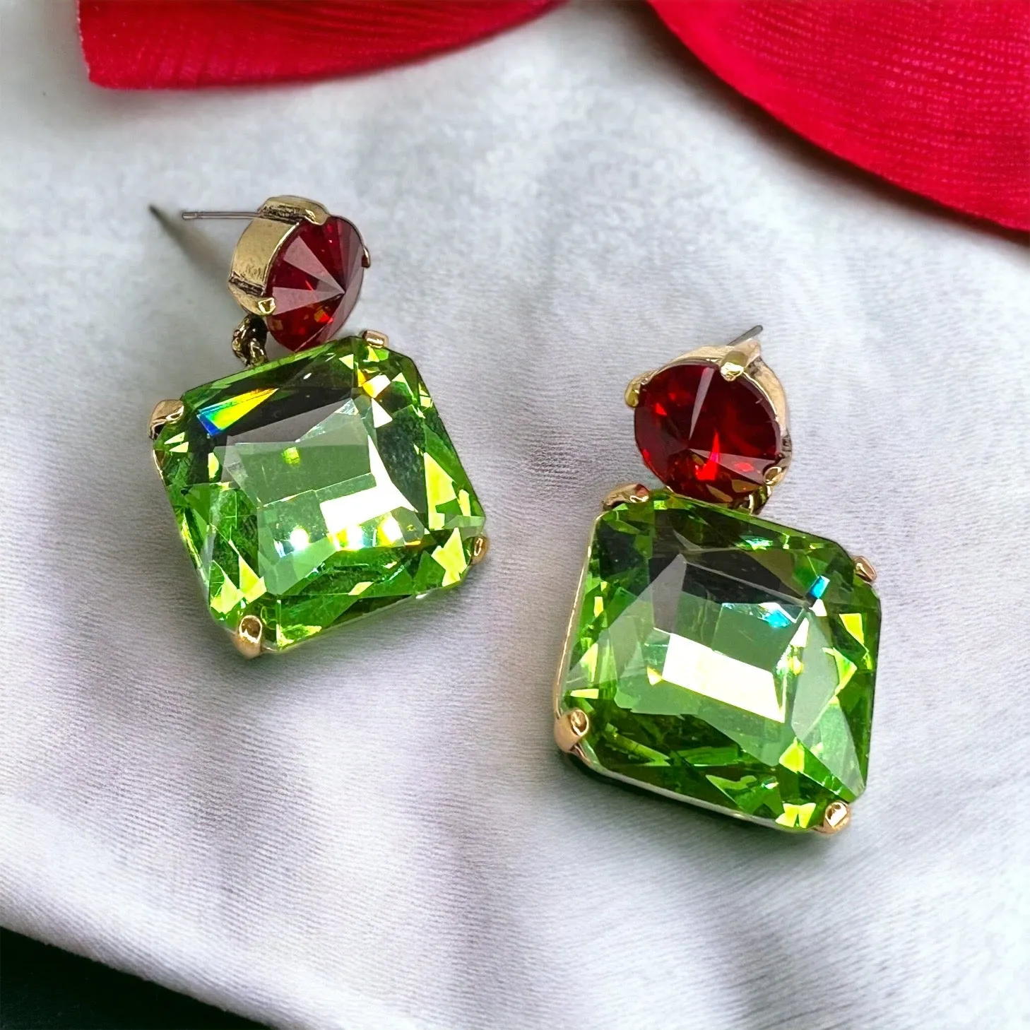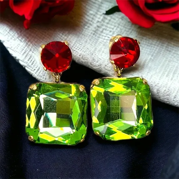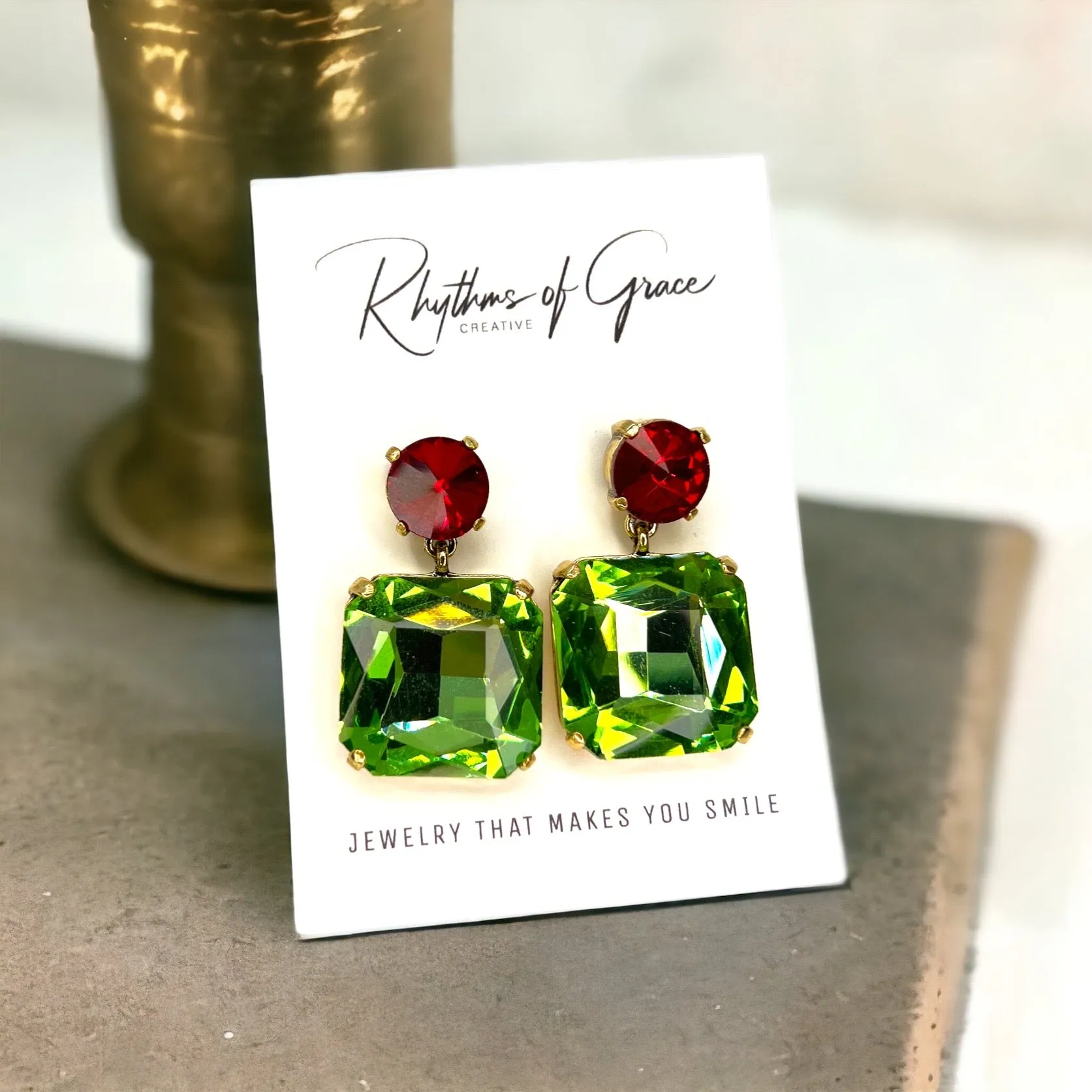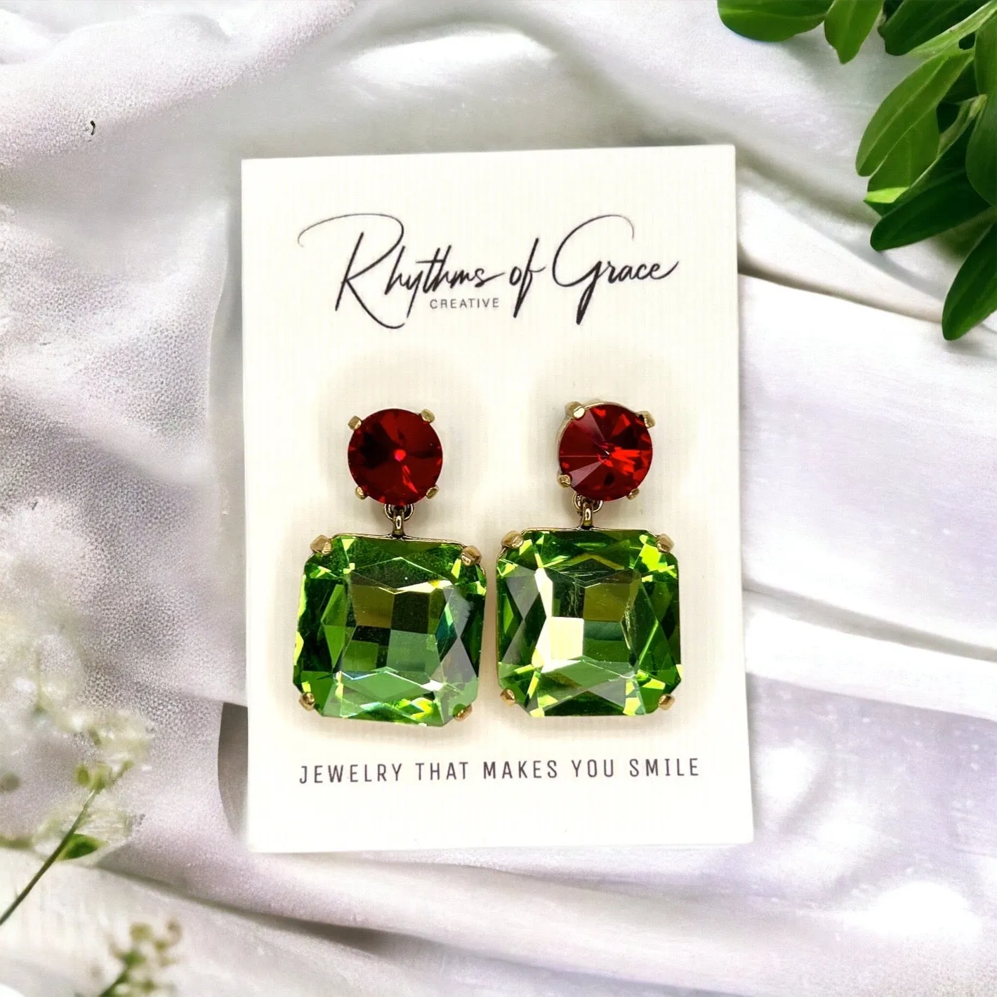 Enhance your festive flair with our captivating red and green rhinestone earrings, a perfect blend of holiday colors and sparkling elegance. Meticulously designed, each earring features an array of vibrant red and green rhinestones that catch the light with every movement. Make a statement at any celebration with these exquisite accessories, adding a touch of vibrancy and glamour to your ensemble.