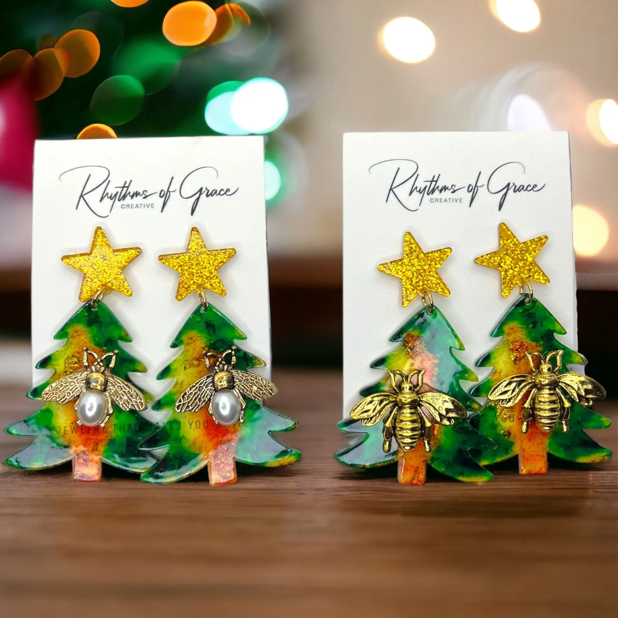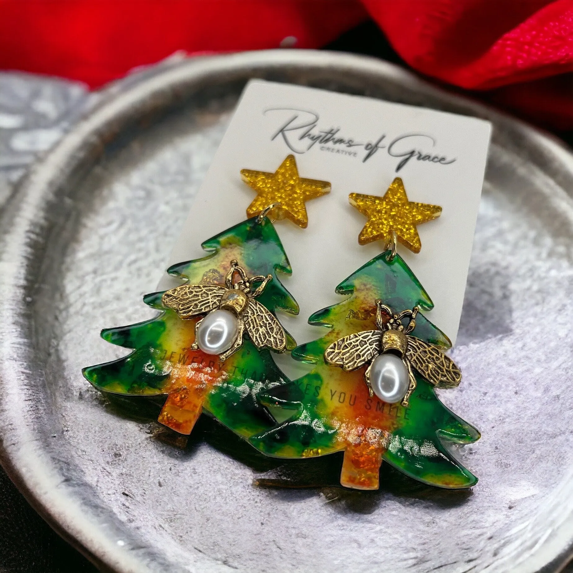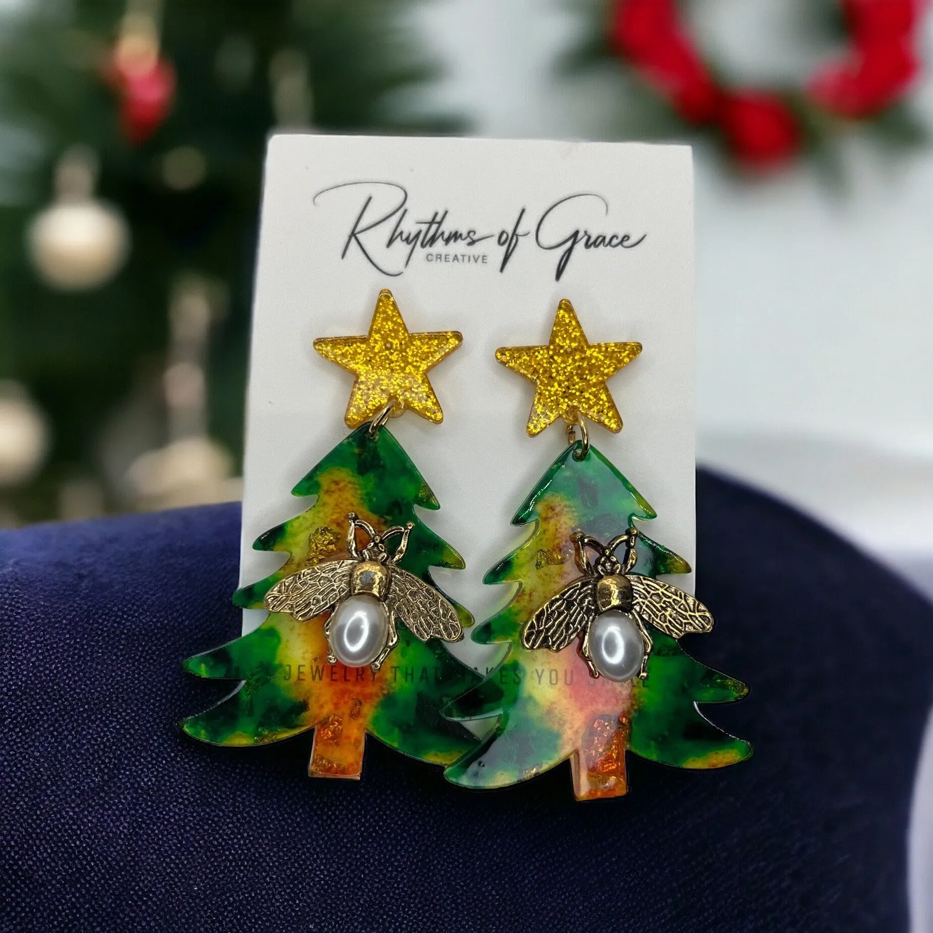 Elevate your holiday style with our stunning Christmas tree earrings, adorned with sparkling rhinestones and elegant faux pearls. Choose from two enchanting styles that capture the festive spirit with radiant sophistication. These eye-catching accessories are the perfect way to add a touch of elegance to your seasonal wardrobe or make a dazzling gift for someone special. Embrace the magic of the season with these exquisite earrings that are sure to shimmer and shine at every celebration.