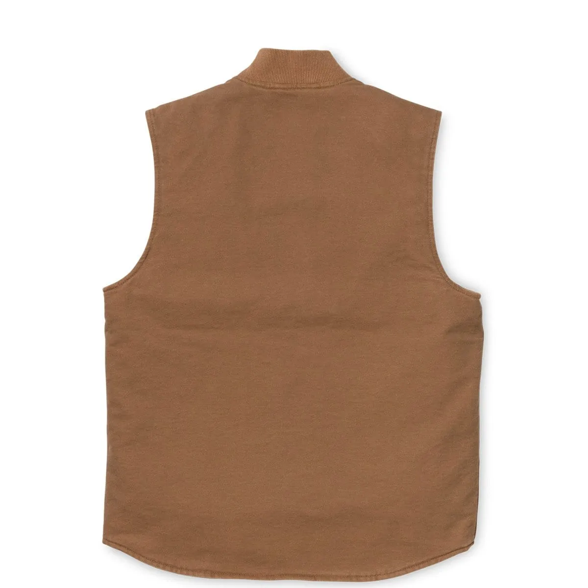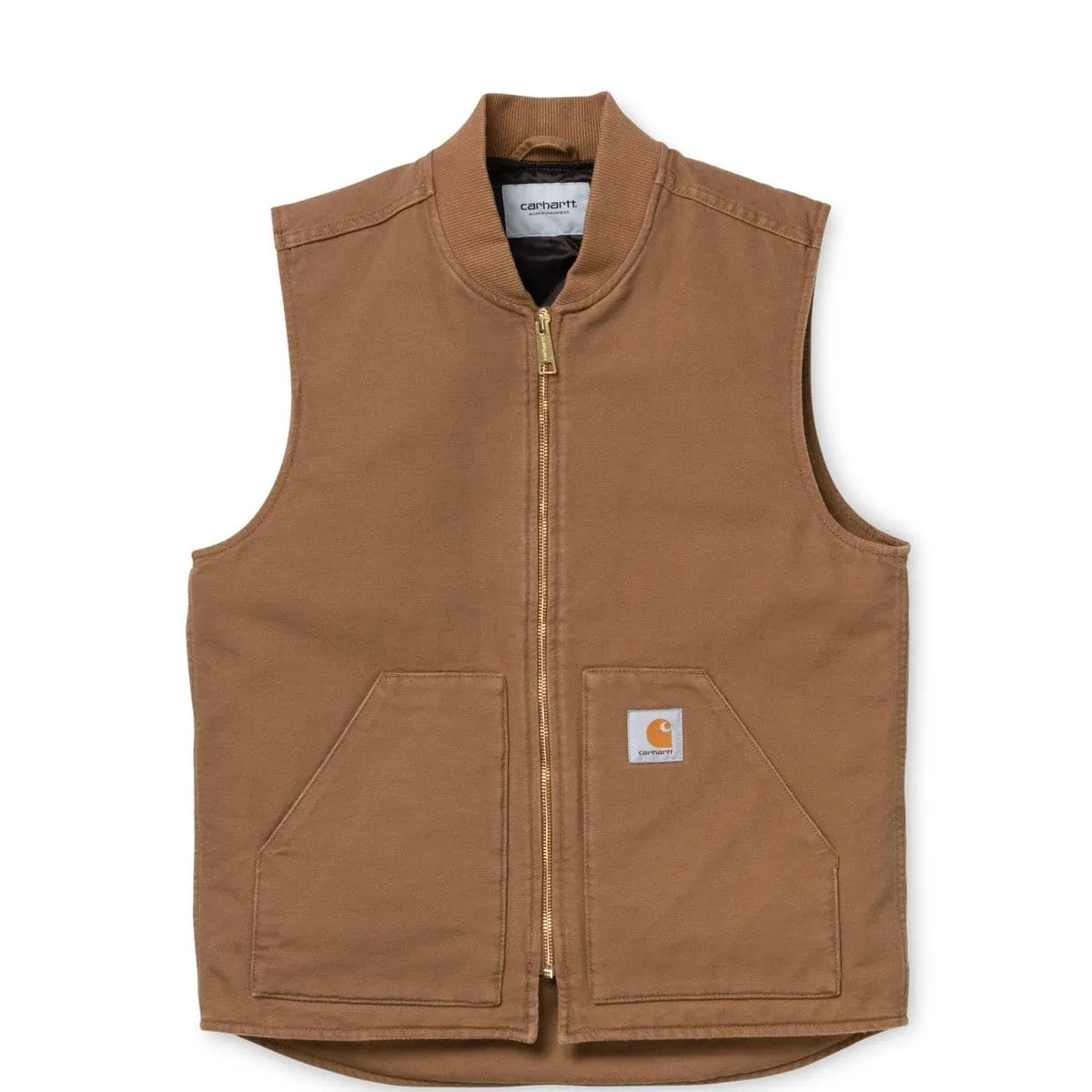 The Spring Vest is constructed in our classic, hard-wearing ‘Dearborn Canvas’. This fabric is now created from organic cotton – but is just as robust as previous iterations. Features two front pockets and woven Carhartt WIP label. Standard sizing.