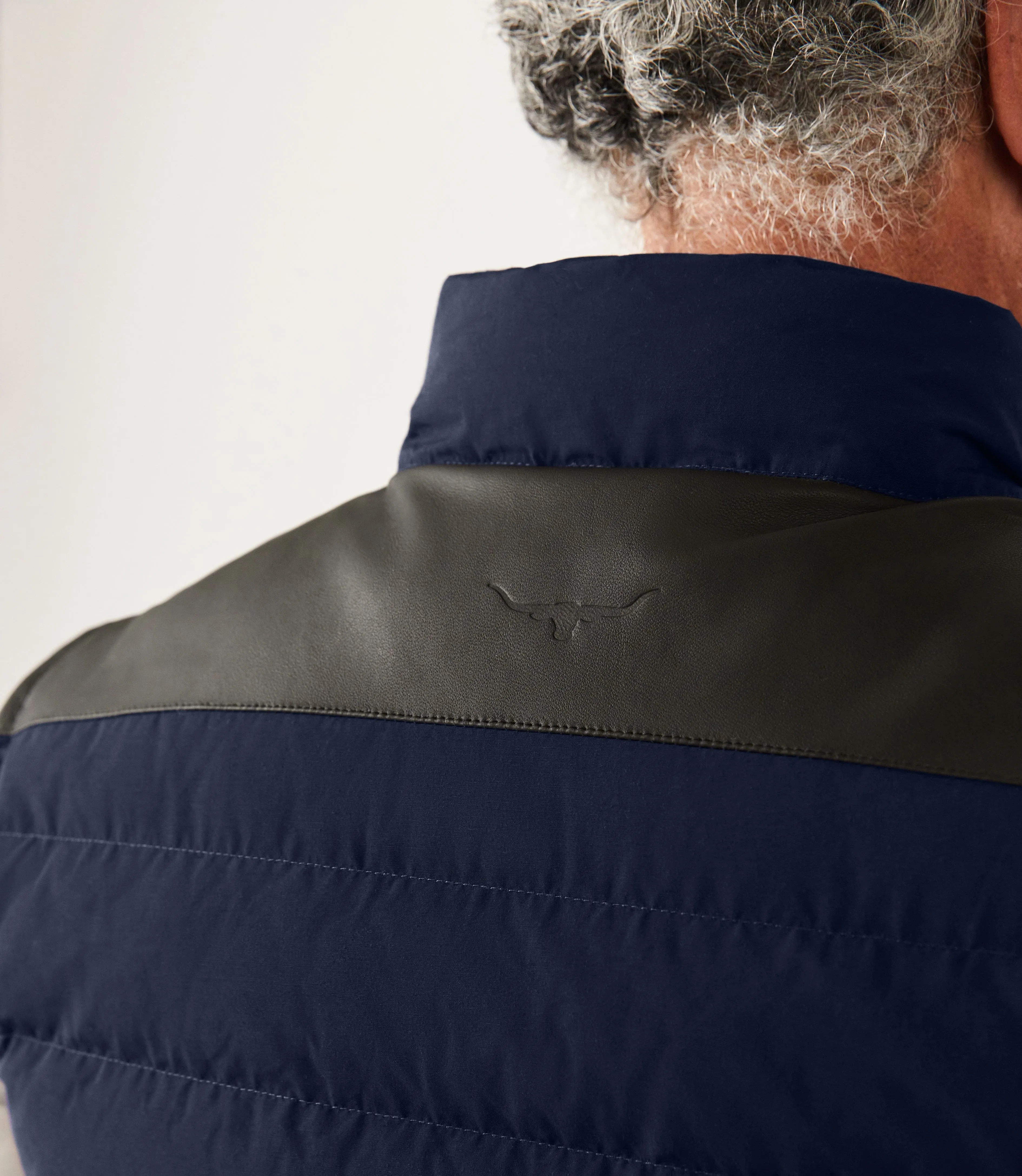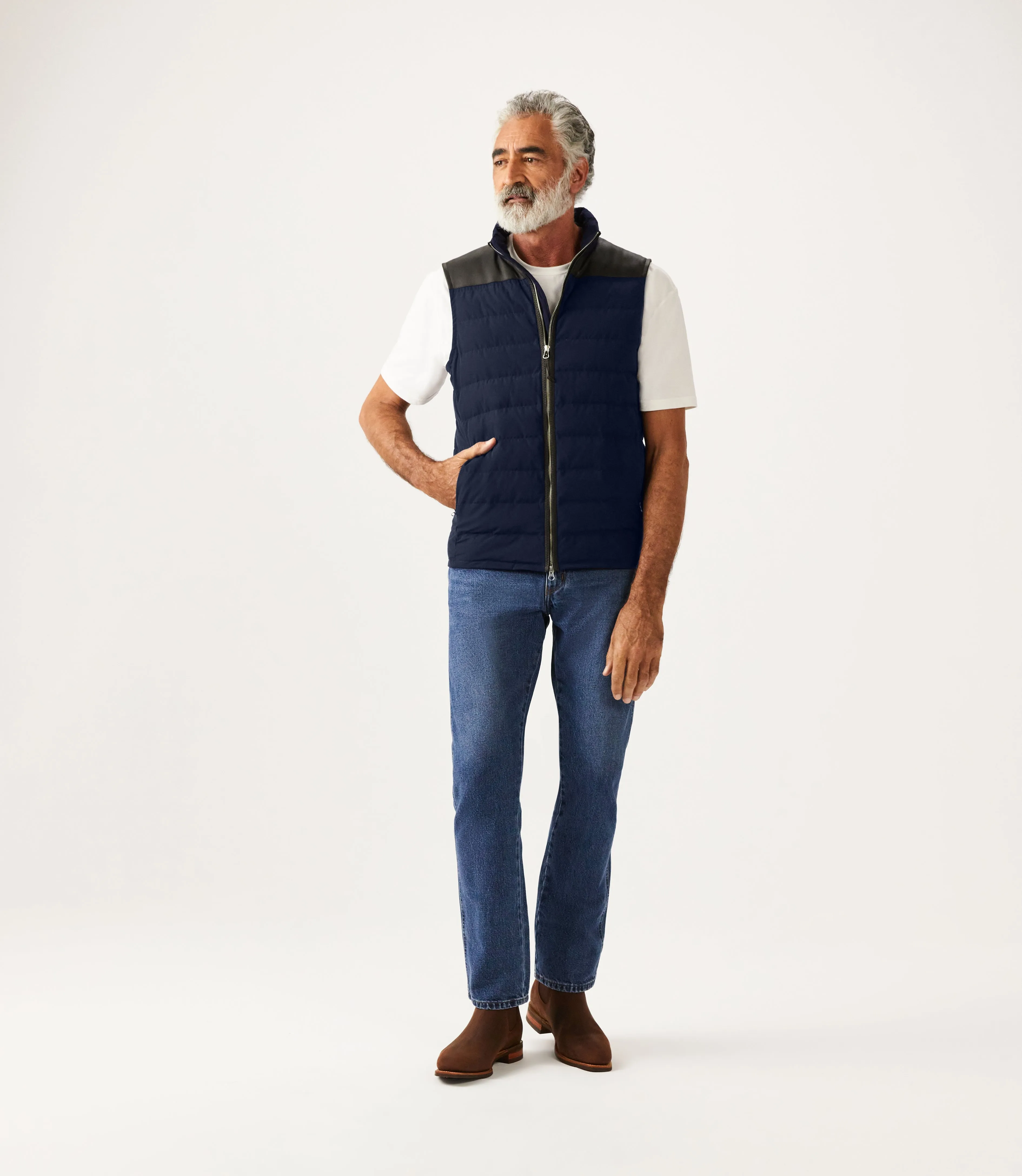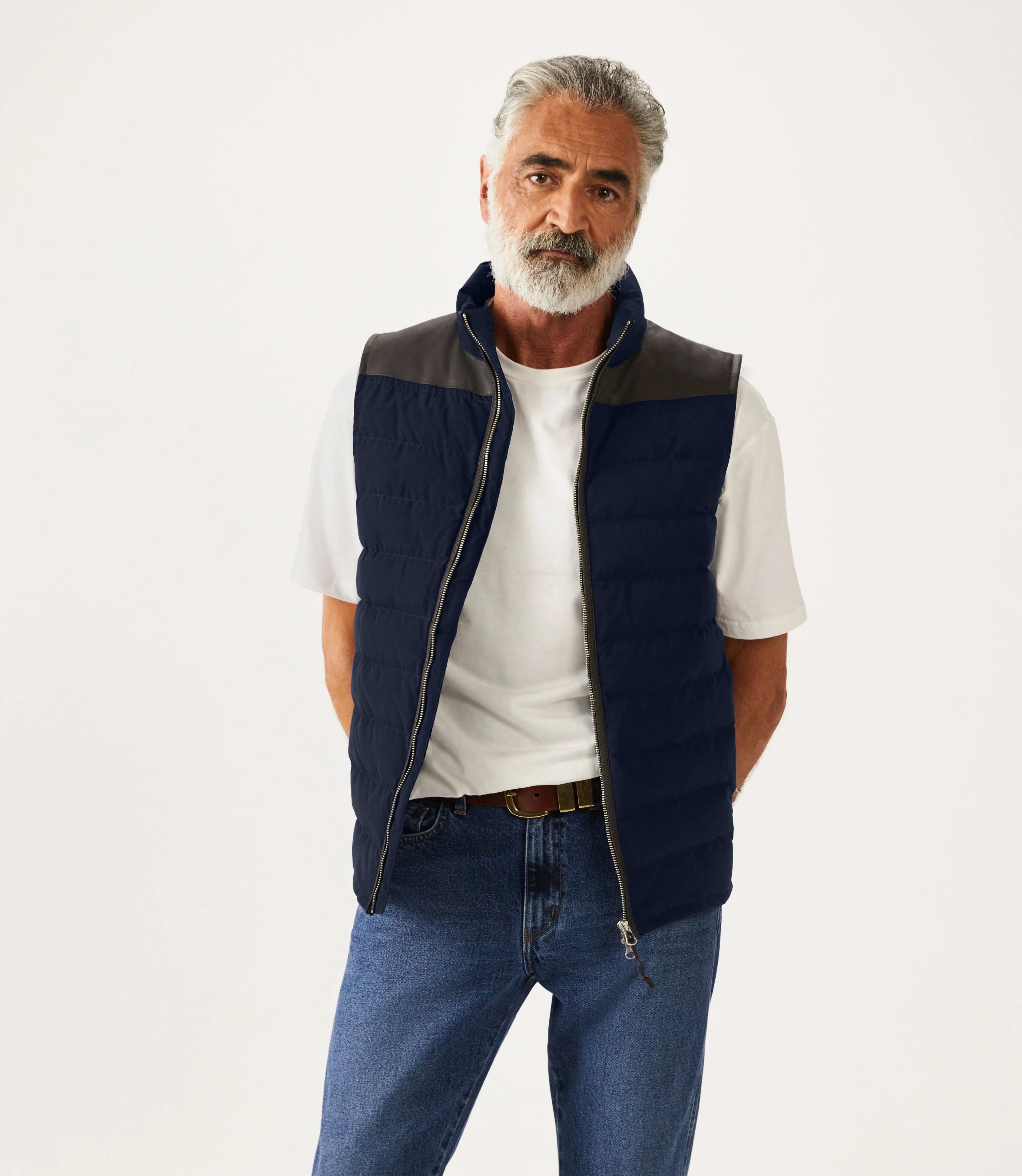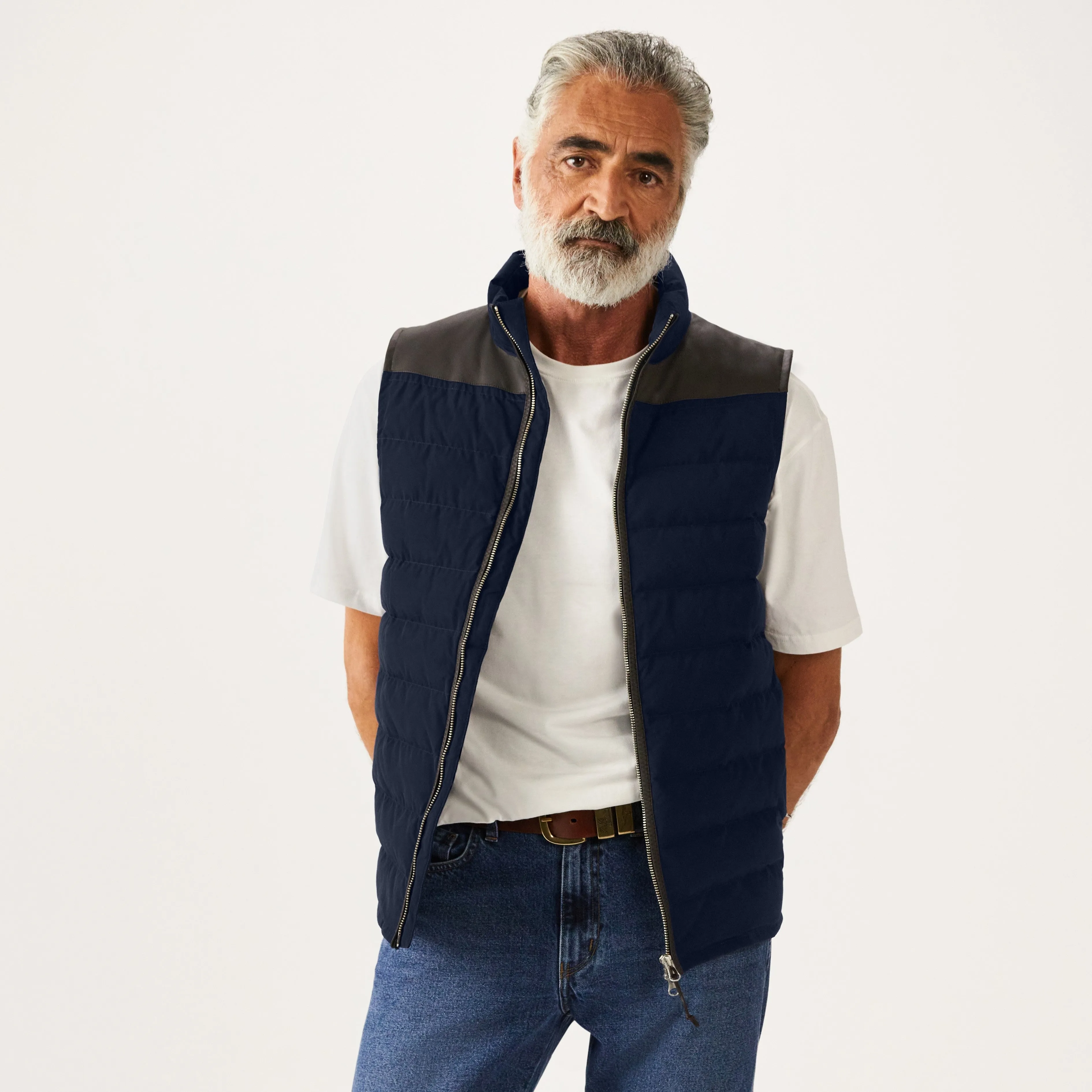 Face the elements head-on in our Coorong Vest, a comforting quilted layer, cut in a regular fit. This style is crafted from a recycled polyester cotton blend with a washable leather yoke, a stand collar and two handy pockets. It offers all day comfort and many ways to wear, thanks to the easy zip-up closure and the classic fit, which allows the vest to layer effortlessly over tees, shirts and sweatshirts.
