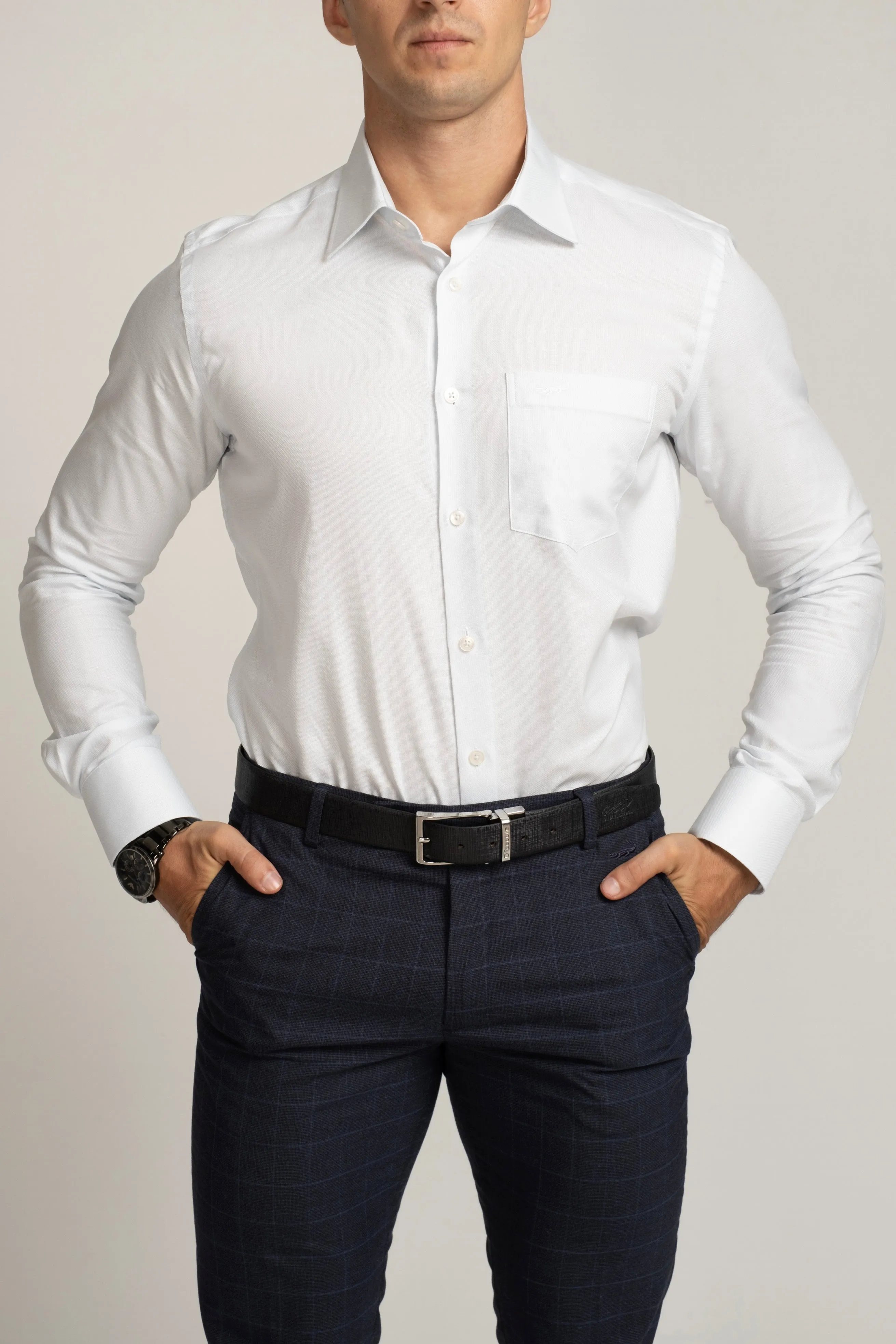 Refresh your formal wardrobe with the Crocodile Slim Fit FS Formal Shirt in Aqua Glass. Designed with a tailored slim fit, this shirt offers a modern silhouette without compromising on comfort. The vibrant Aqua Glass green adds a unique and refreshing touch, making it perfect for business meetings, weddings, or special occasions. Make a sophisticated statement with this versatile wardrobe essential.