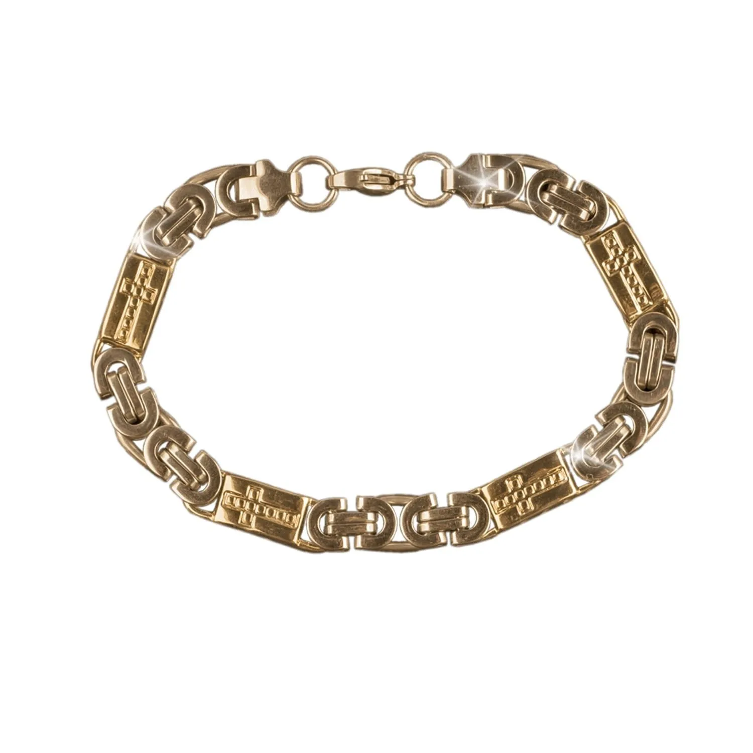 Crafted from premium grade stainless steel this multi-link bracelet has been generously plated with luxurious 18k yellow gold. A perfectly balanced piece of quality and craftsmanship. A truly subtle symbolic statement.