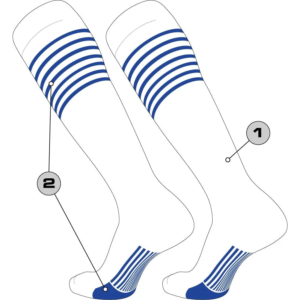 Custom Diamond Builder Baseball Socks. Customize with your own team colors and logo to make the perfect Baseball Socks or Softball Socks. High performance athletic socks for all team sports and elite athletes. Shoe Size: Small - Youth 12-5 Womens 4-7, Medium - Womens 7-10 Mens 6-9, Large - Womens 10-13 Mens 9-12, X-Large Womens 13 Mens 12 .