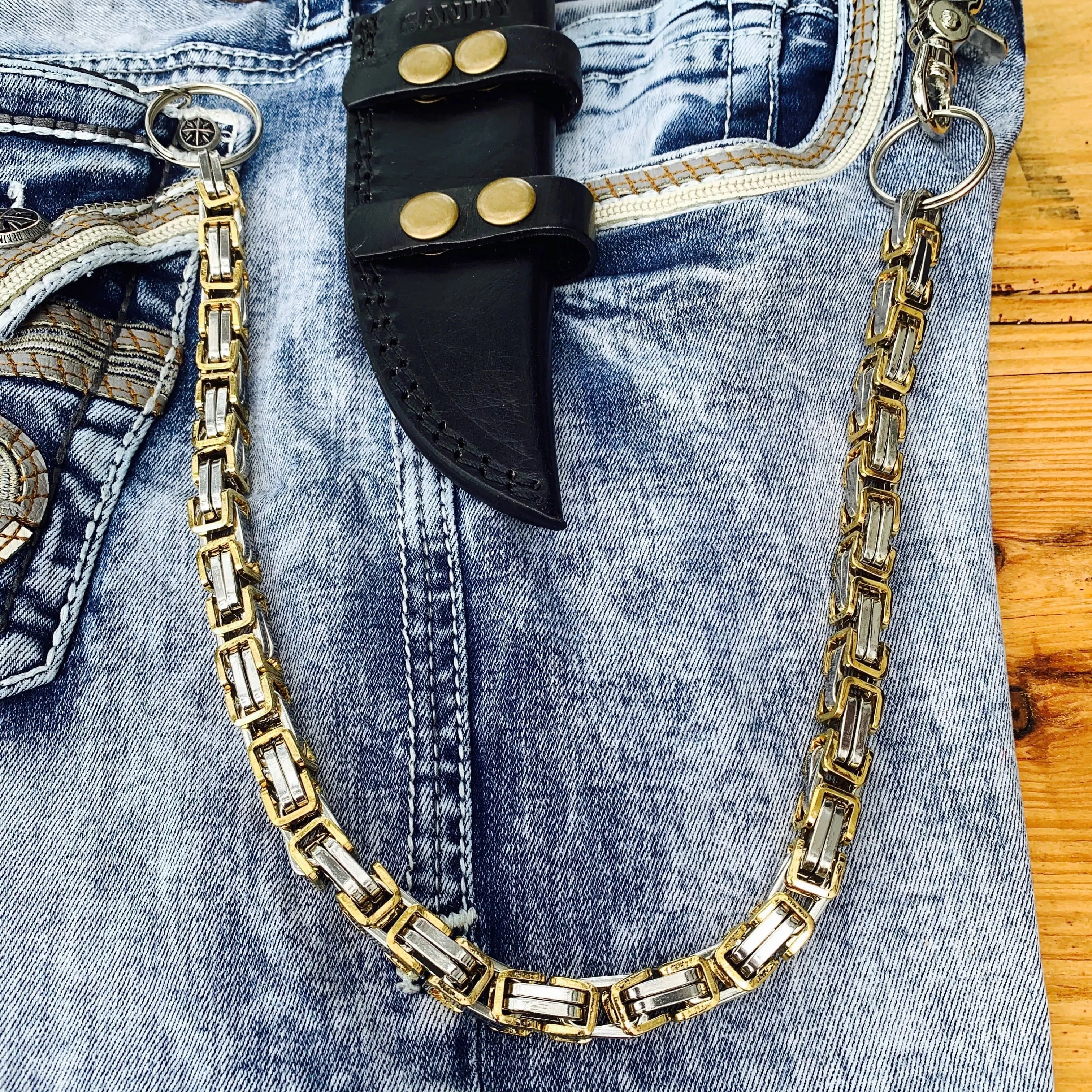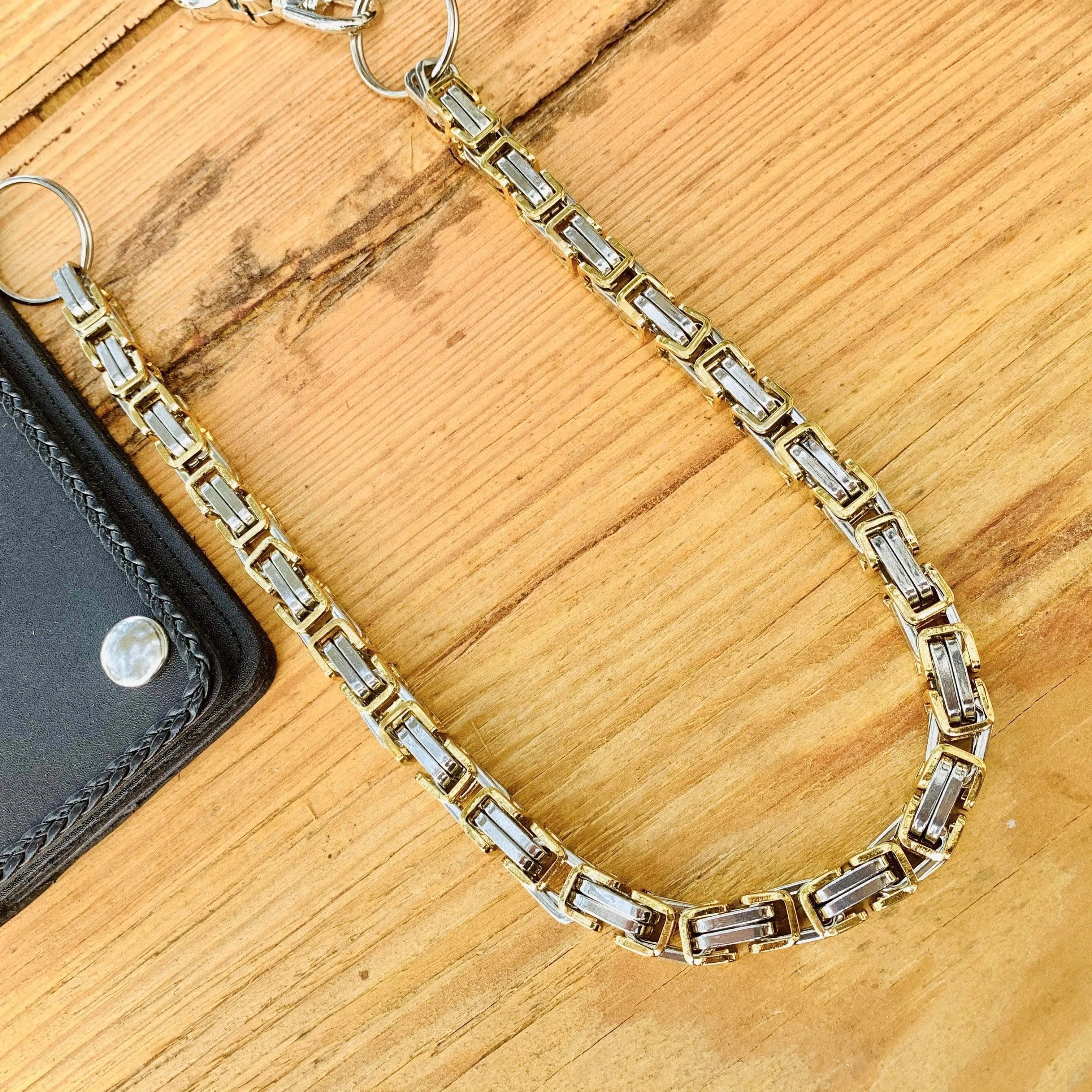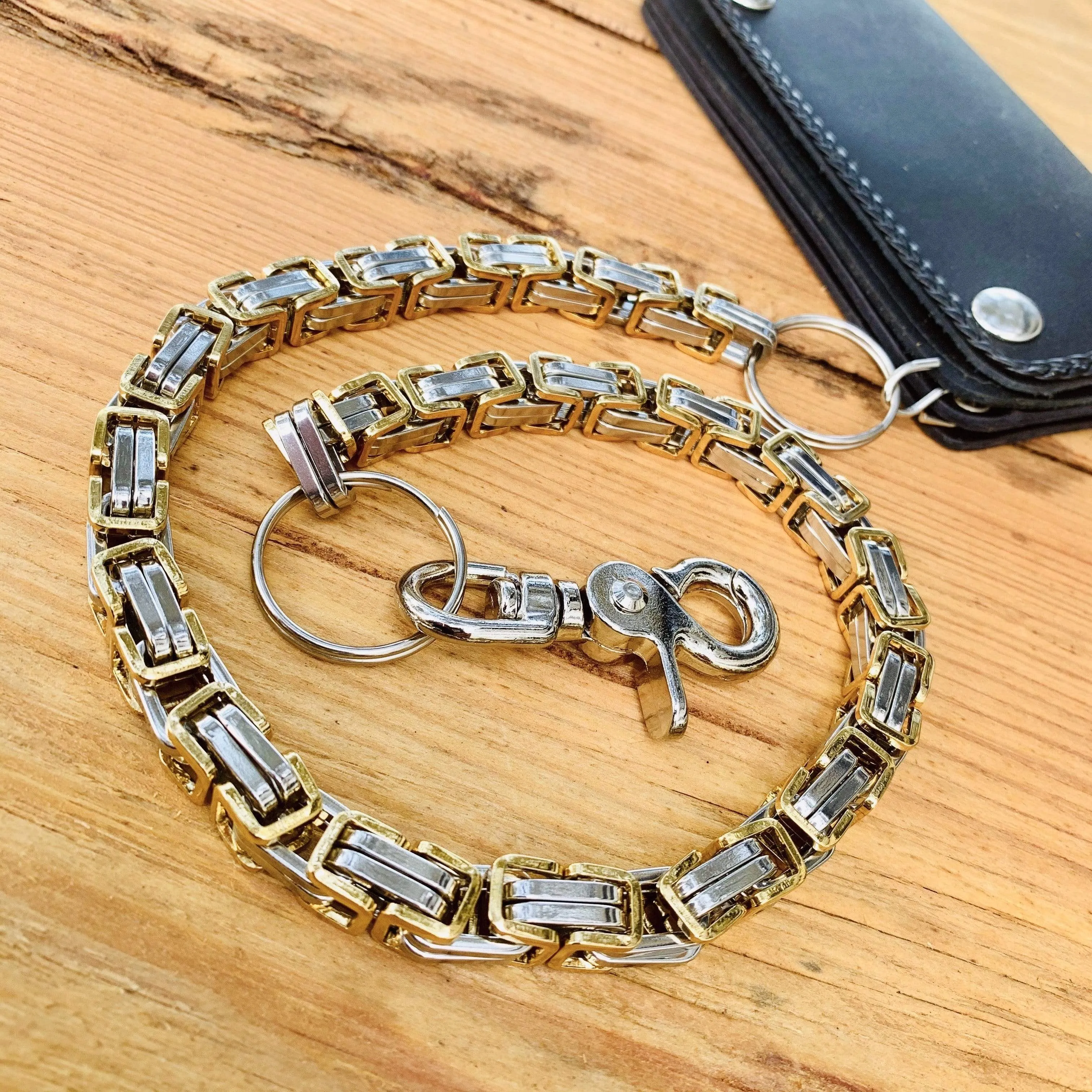 We make 4 widths and different color options of our Signature Daytona Wallet Chains. Solid Stainless Steel. Will never "kink up" like your current chain. Super strong! Call 321-271-5134 if you need a custom length Wallet chain made.