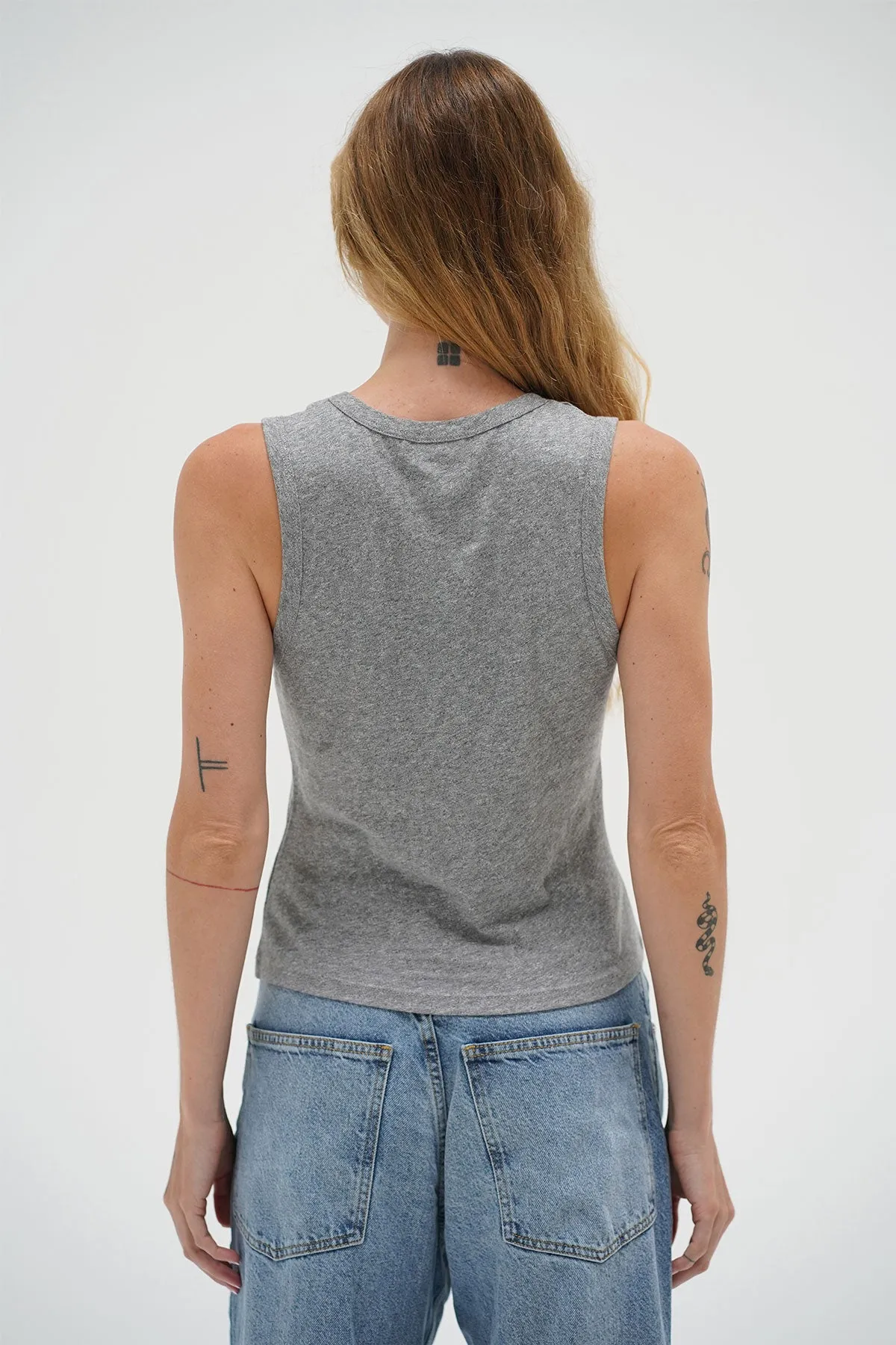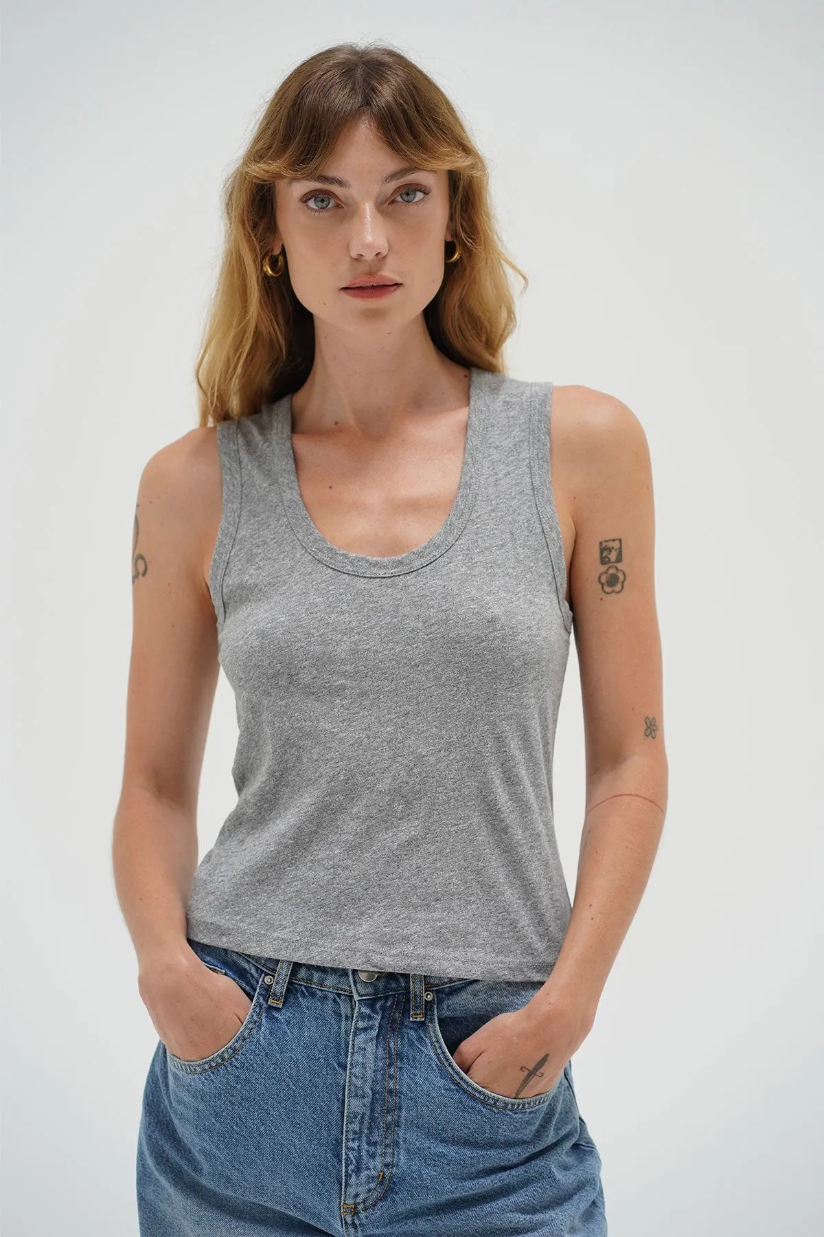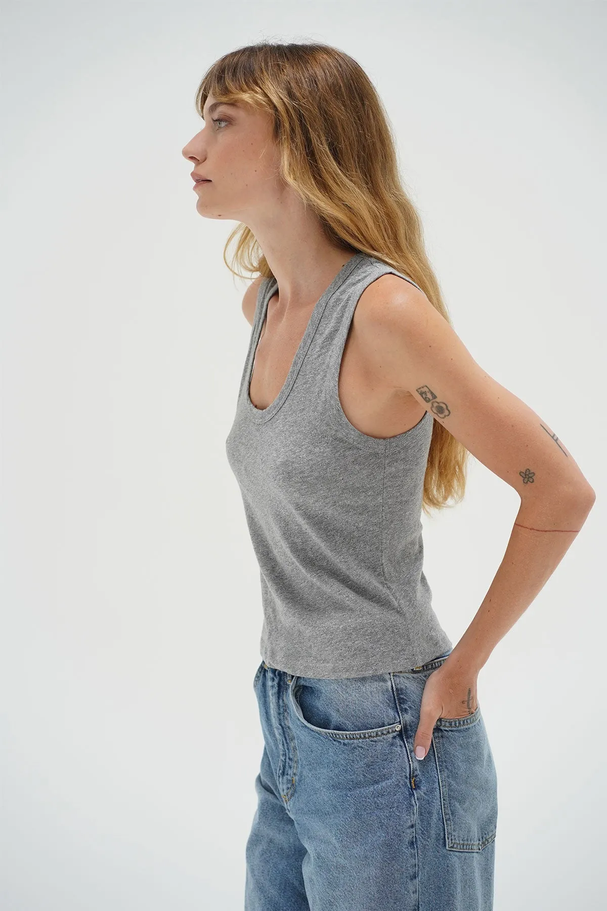 A deep u neckline with bra friendly straps make this tank ultra flattering. Meant to hit top of pant, depending on the rise, this tank gives the most classic vibe.
