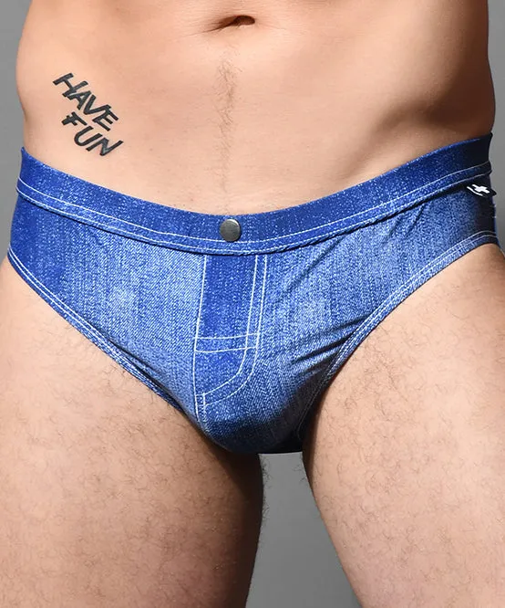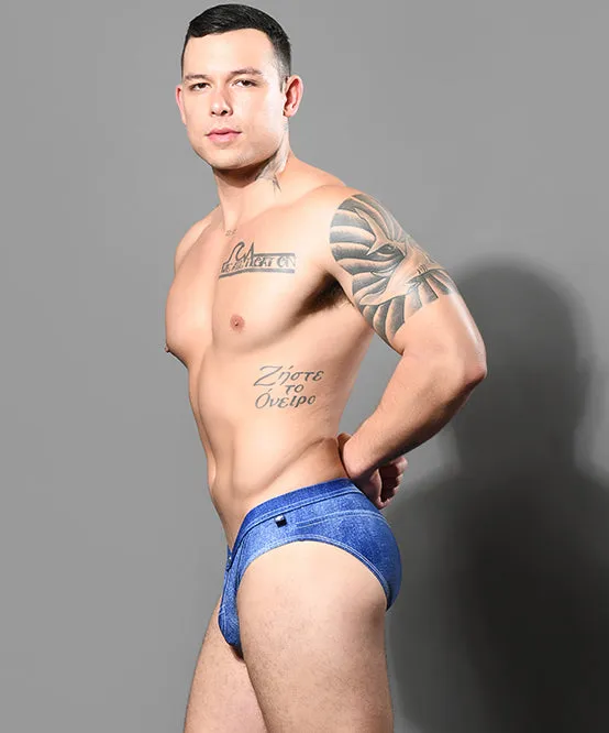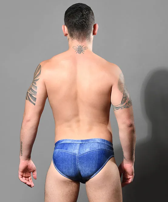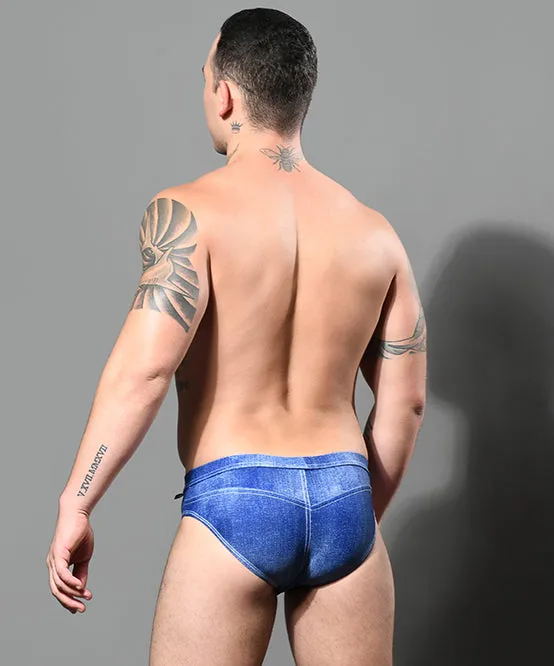 Jeans at the beach? With our sexy new Denim Bikini swimwear, anything is possible! This skimpy little style is guaranteed to turn heads. Each one comes with stunning contrast details and a slimming, form-fitting cut, so this will quickly become your favorite swimwear. With this style, we’ve virtually eliminated sticking, squashing, re-adjusting, sweating, and chafing. With its stylish look and slimming cut with form-fitting design and cute faux fly, you'll be the best-looking guy at the beach.
