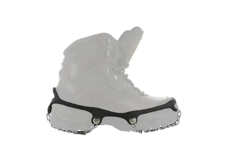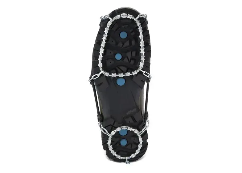 Constructed of case-hardened steel alloy and strung on steel aircraft cable, the Yaktrax Diamond Grip provides aggressive traction in winter walking conditions. Patented Diamond Beats grip in all directions and remain elastic in sub-zero temperatures.