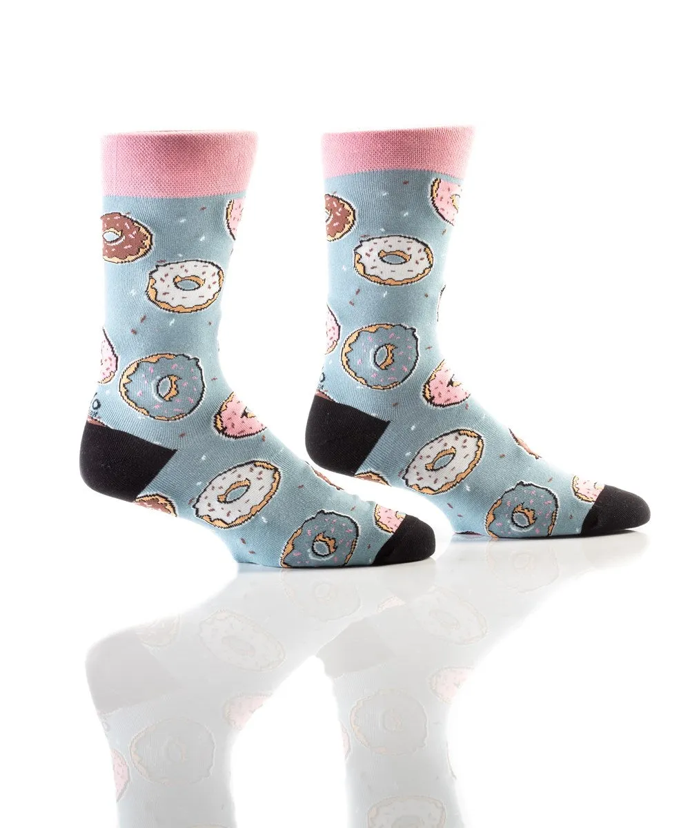 Men's cotton crew socks with donut pattern. YO Sox is made with tightly wound double spun cotton means your socks will stay the same size without stretching.