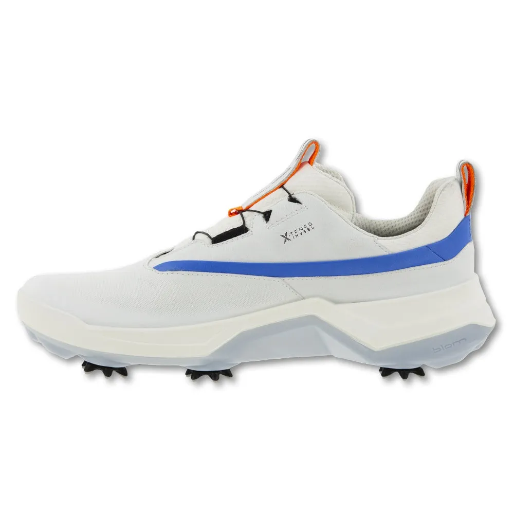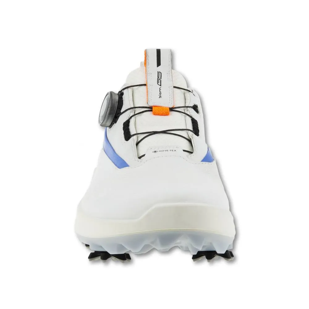 Advanced, athletic performance is mixed with sporty, progressive design with the new ECCO M GOLF BIOM G5. The next generation of the BIOM G3 is equipped with ZARMA-TOUR spikes, which are combined with innovative hybrid sections of the outsole for outstanding traction and stability. You will move more naturally thanks to the updated BIOM last, which also provides support, stability and a snug fit, while the ECCO FLUIDFORM Direct Comfort Technology ensures a modern balance of cushioning and rebound and the GORE-TEX technology offers 100 per cent waterproof protection. Embossed ECCO Performance Leather and a sporty mesh elevate the modern, athletic design. The BOA Fit System supplies a micro-adjustable, precision fit for dialled in performance.