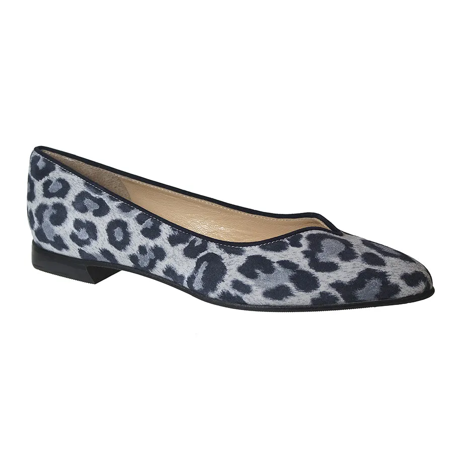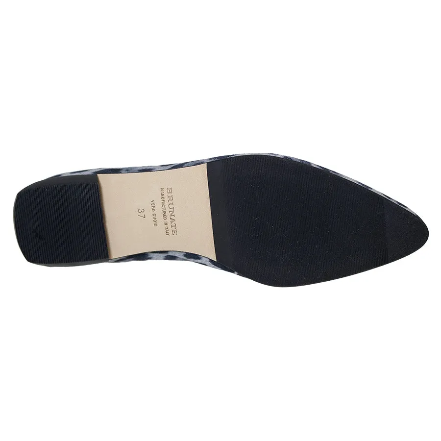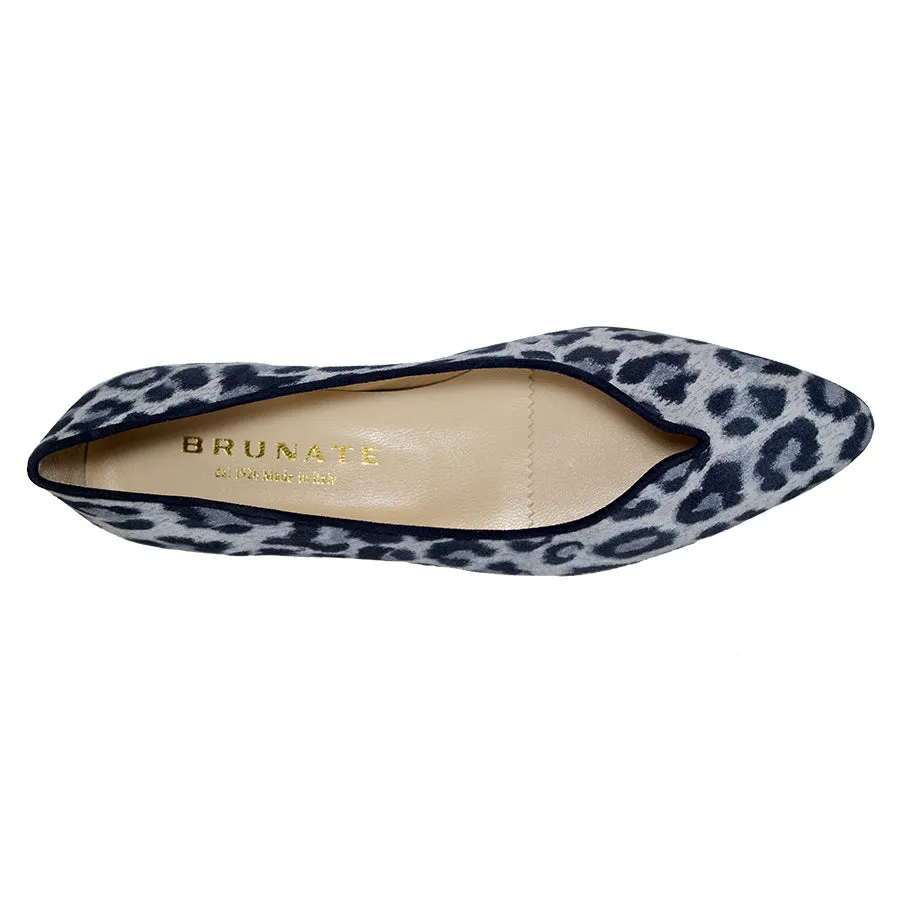 The ballerina, according to Brunate: one-piece upper, small buttonhole, simple yet super chic. This time in soft suede with a leopard print pattern. Manufactured in Italy.