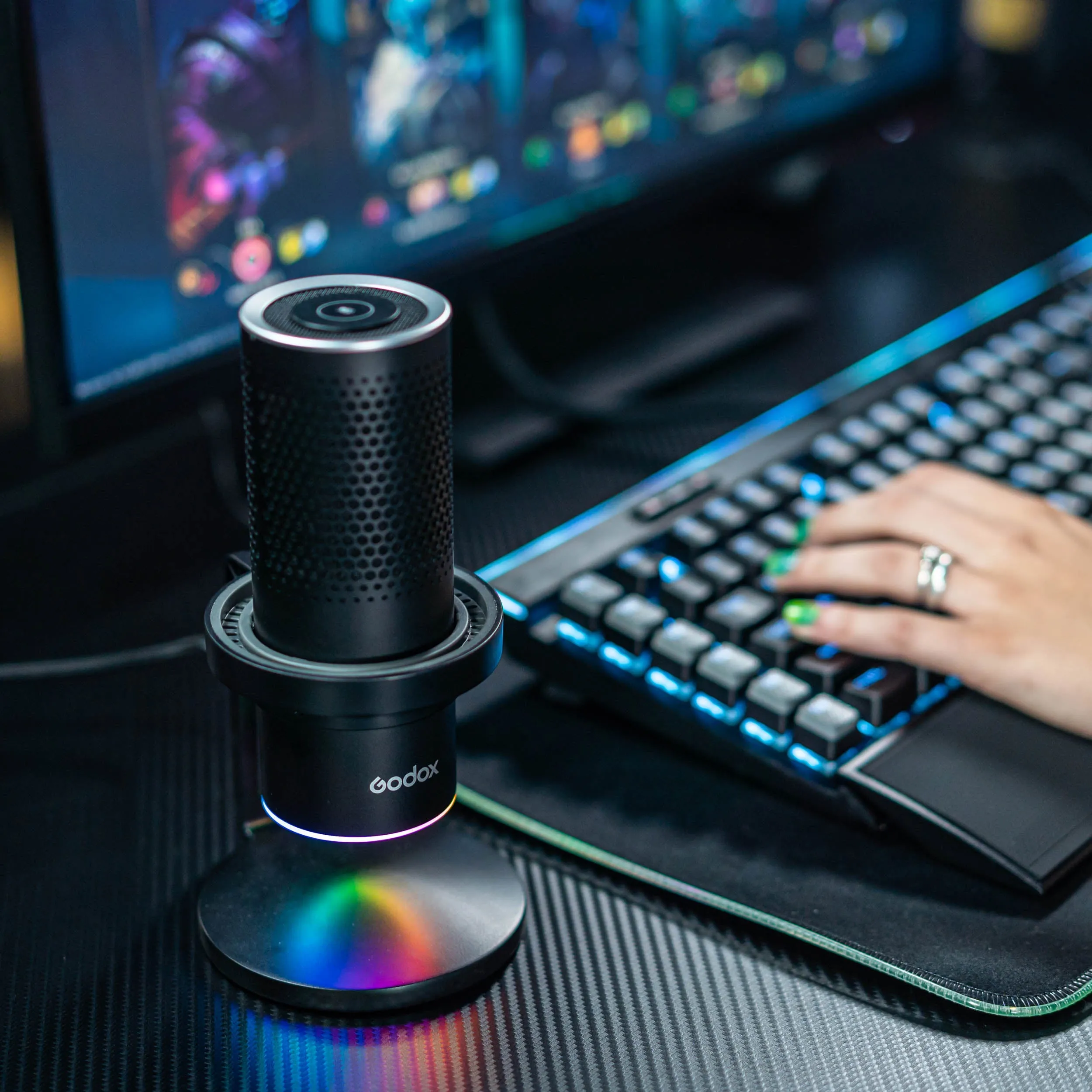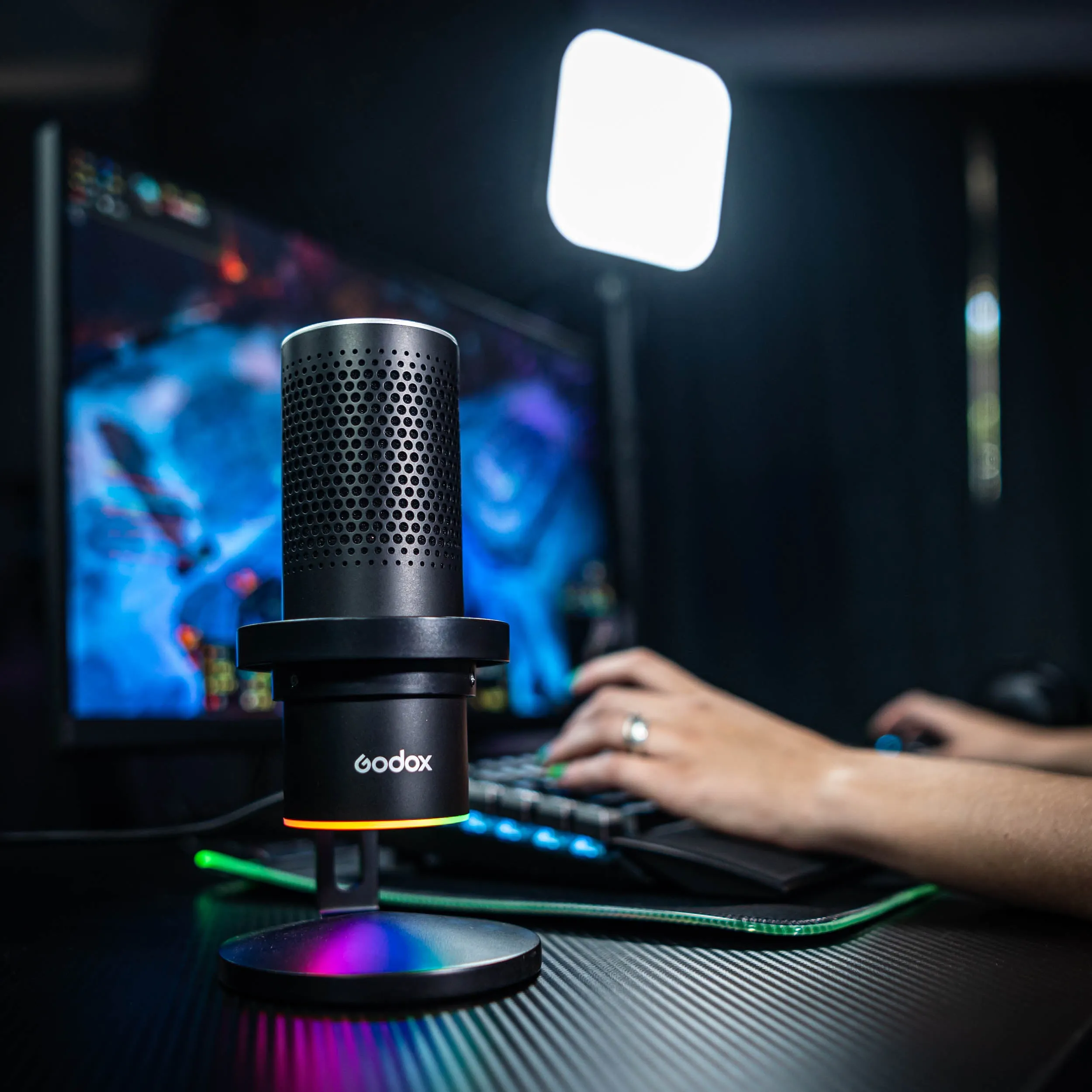 The EM68W Desktop USB Condenser Microphone has been built to meet the demands of E-Sports and Video game streamers everywhere. Featuring an RGB smart lamp, a touch-sensitive mute button, and a motion detector for switching the mic on and off. The EM68X is compatible with the Godox Mic App, which gives you access to many different options, such as selecting any of its four polar pick-up patterns (Cardioid, Bi-directional, Omni-directional, and stereo), Gain controls as well as controlling the RGB lighting enabling you to get the right mood and ambiance, making you the envy of all the other streamers out there. It features a Plug-and-Play USB interface compatible with Windows PCs, and Macs, as well as the PlayStation 5 and PlayStation 4, making it an essential accessory for serious game streamers.