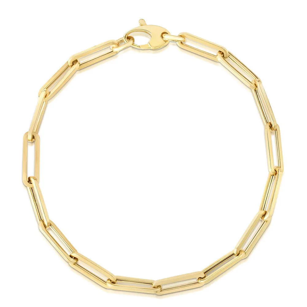 Chain game is serious business in jewelry! This easy going paper clip chain is an every day essential that is super clean and modern. Wear it solo, or add some charms for a fun twist!