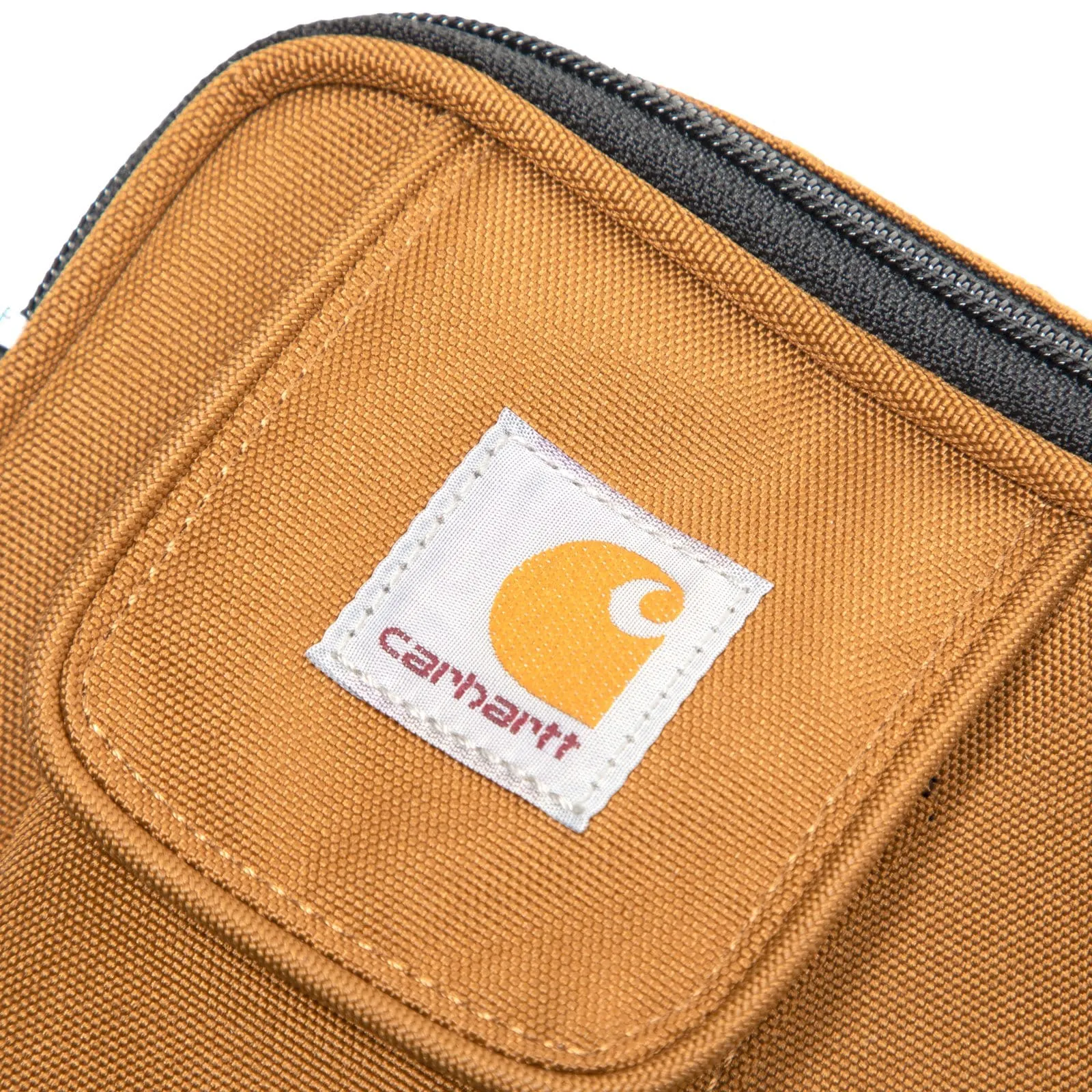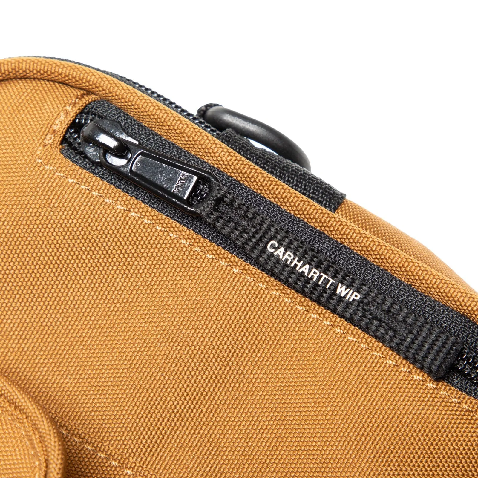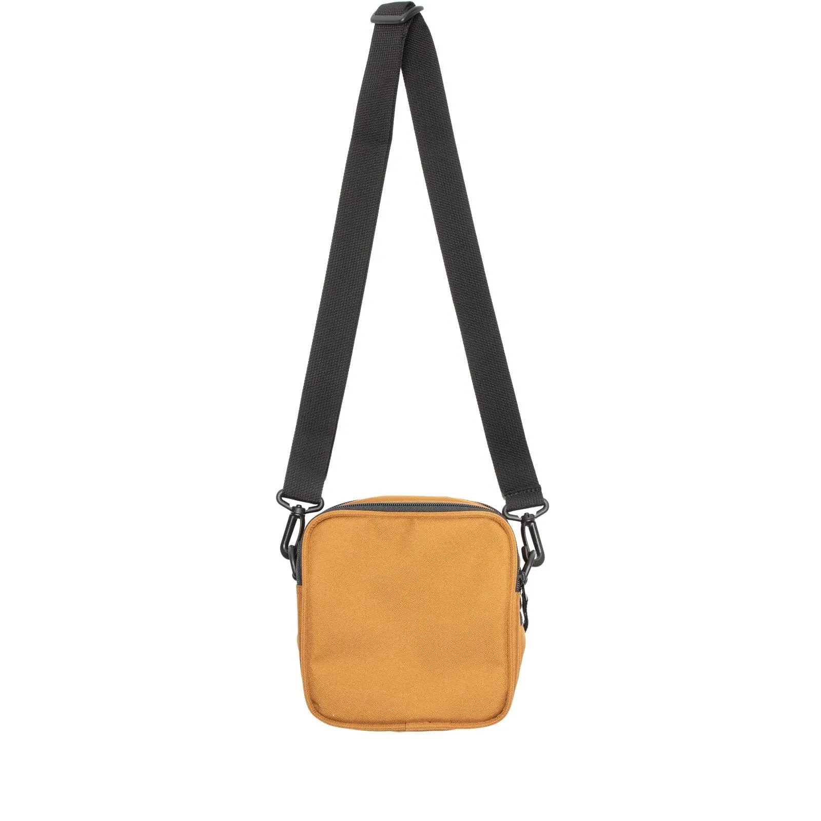 The Essentials Bag Small is a lightweight, portable hip-bag constructed from a durable 11 oz polyester duck canvas. It features an adjustable strap and multiple pockets with zip and velcro closure. Woven Carhartt WIP label on the front pocket.